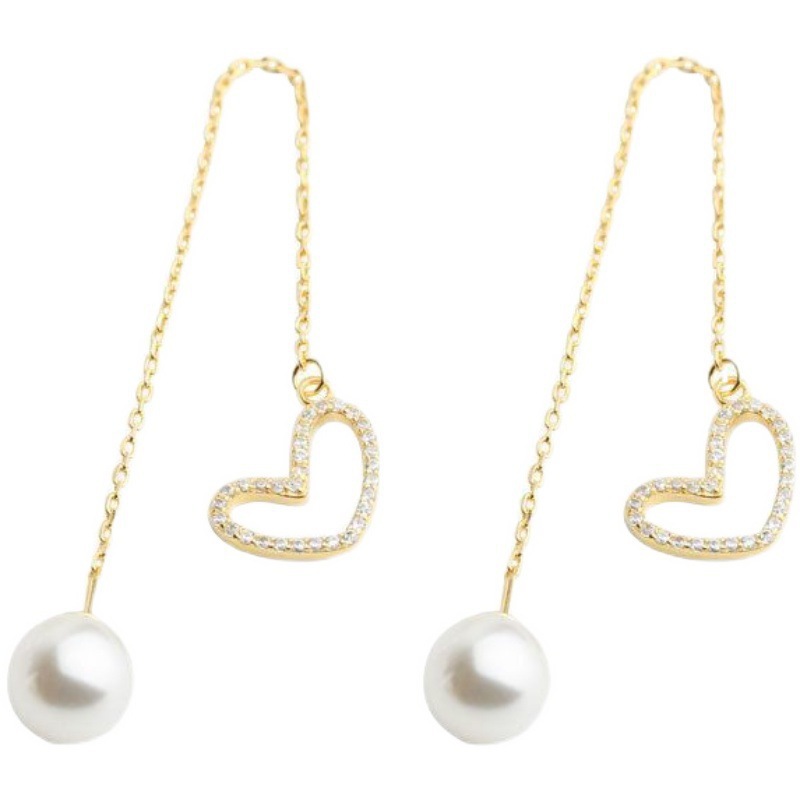 5A804 珍珠耳環輕奢流蘇設計感氣質大氣愛心型耳線耳釘感
