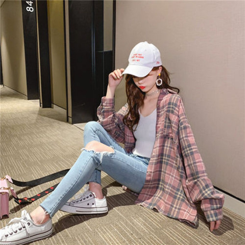TY-1132 秋季格子襯衫女設計感小眾長袖韓版復古港味冷淡風襯衣 上衣