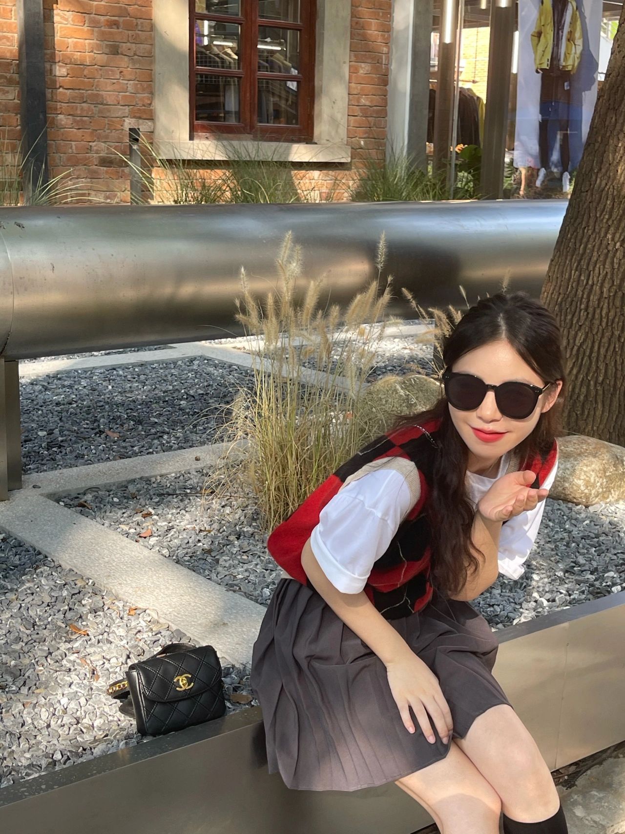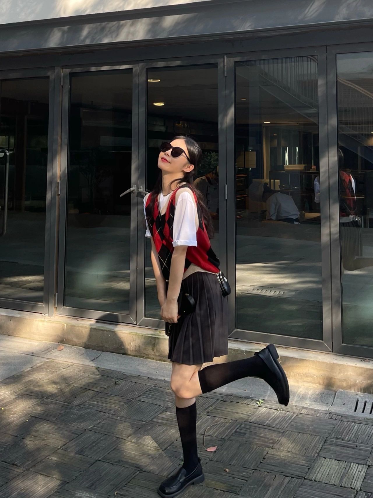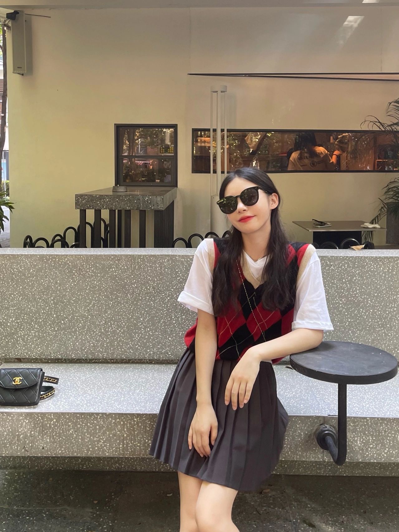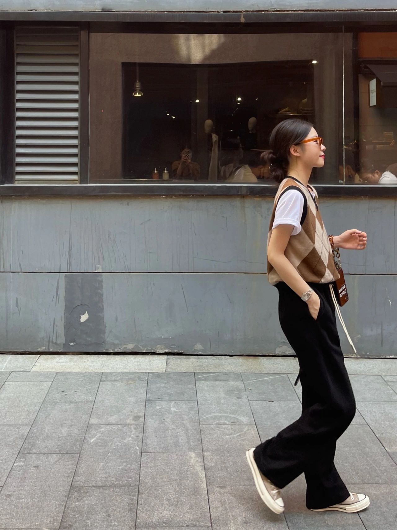 JMA-392 实拍 2023秋冬季新款韩版复古菱格针织学院V领格子毛衣马甲背心女