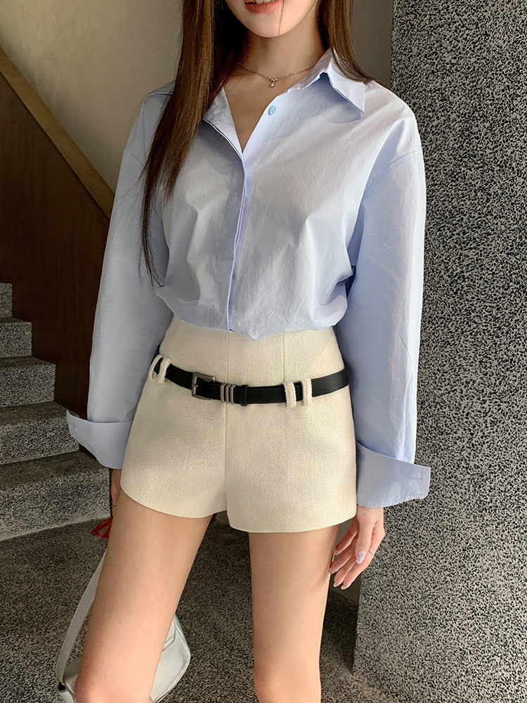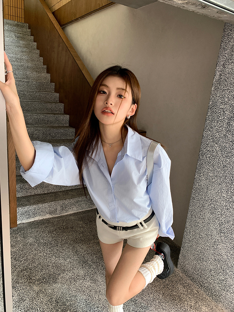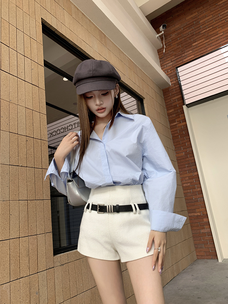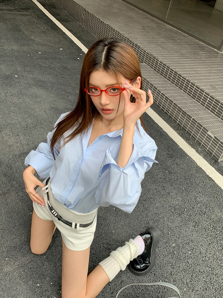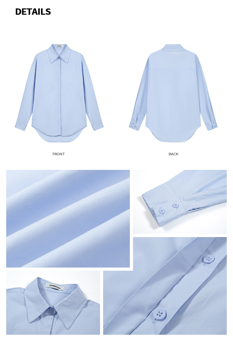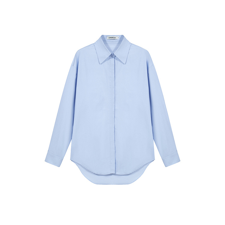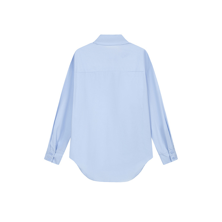 JMA-395 实拍2023秋装新款蓝色长袖衬衫女港味宽松休闲男友风衬衣开衫上衣