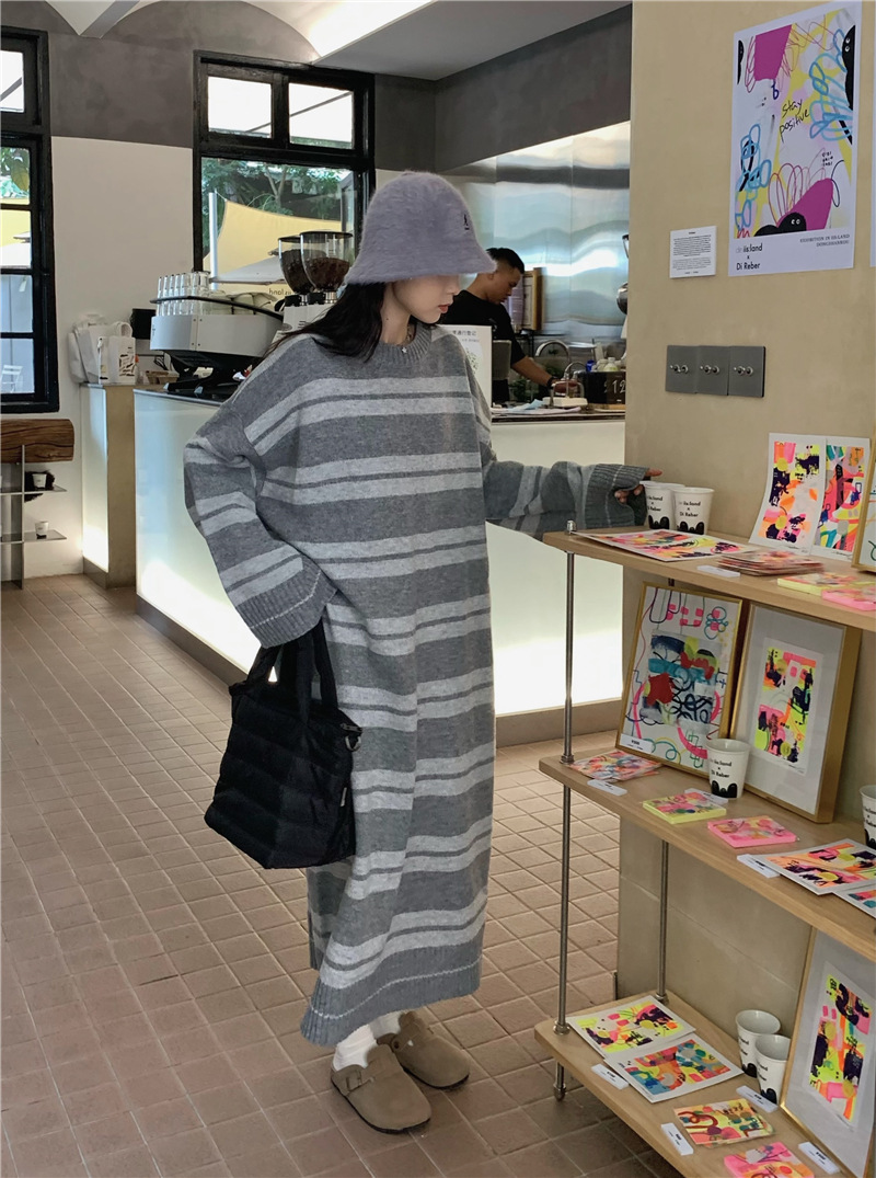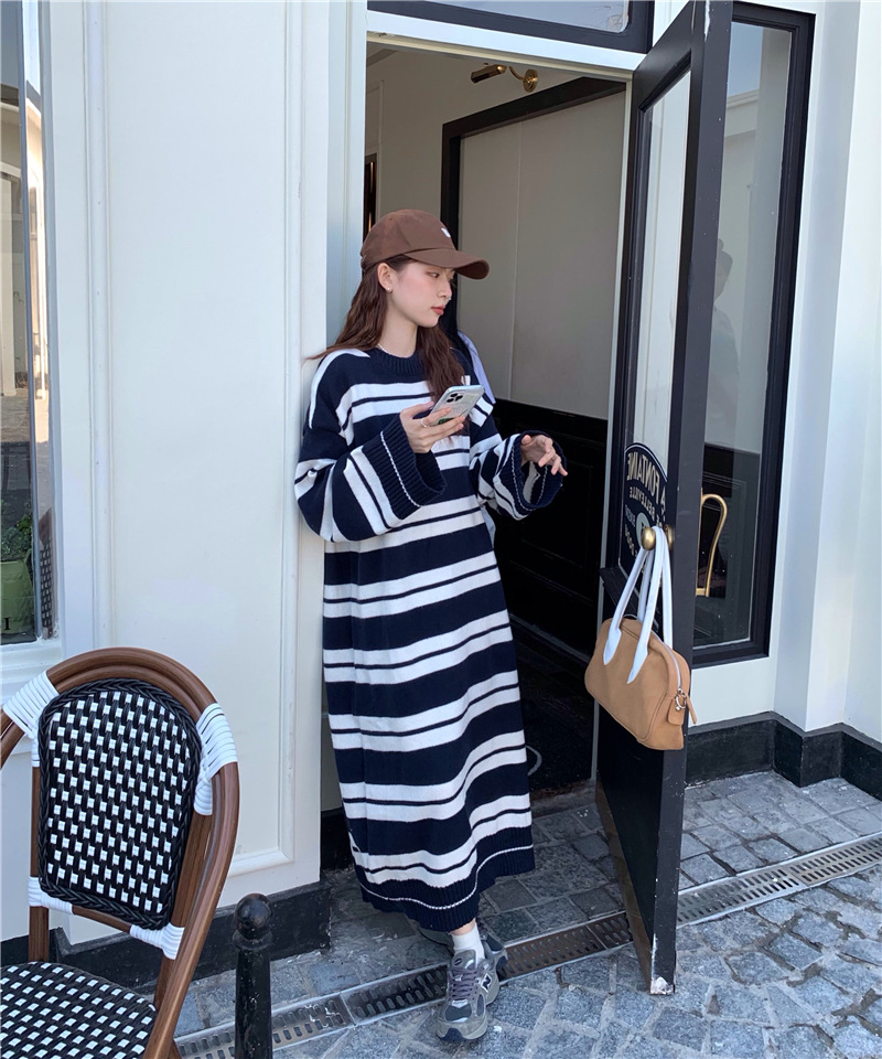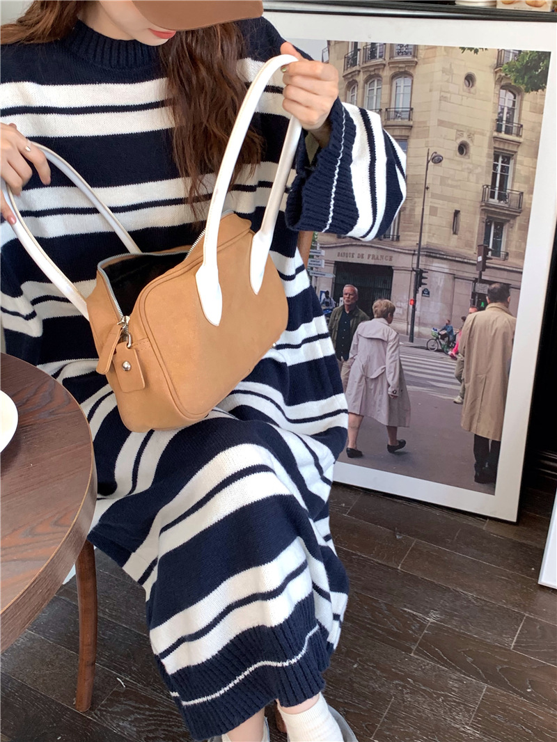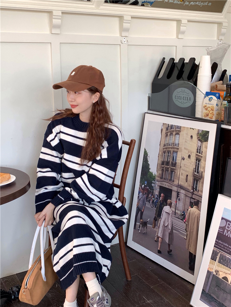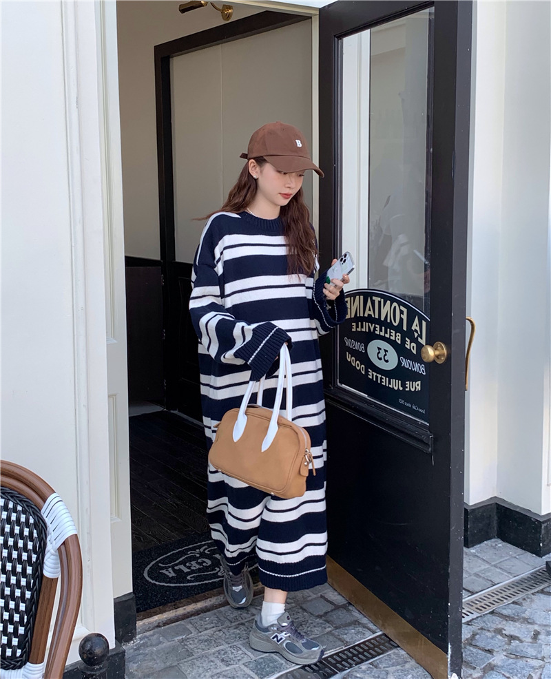 JMA-398 实拍 2023秋季韩国chic百搭简约厚实中长款外穿毛衣裙针织连衣裙