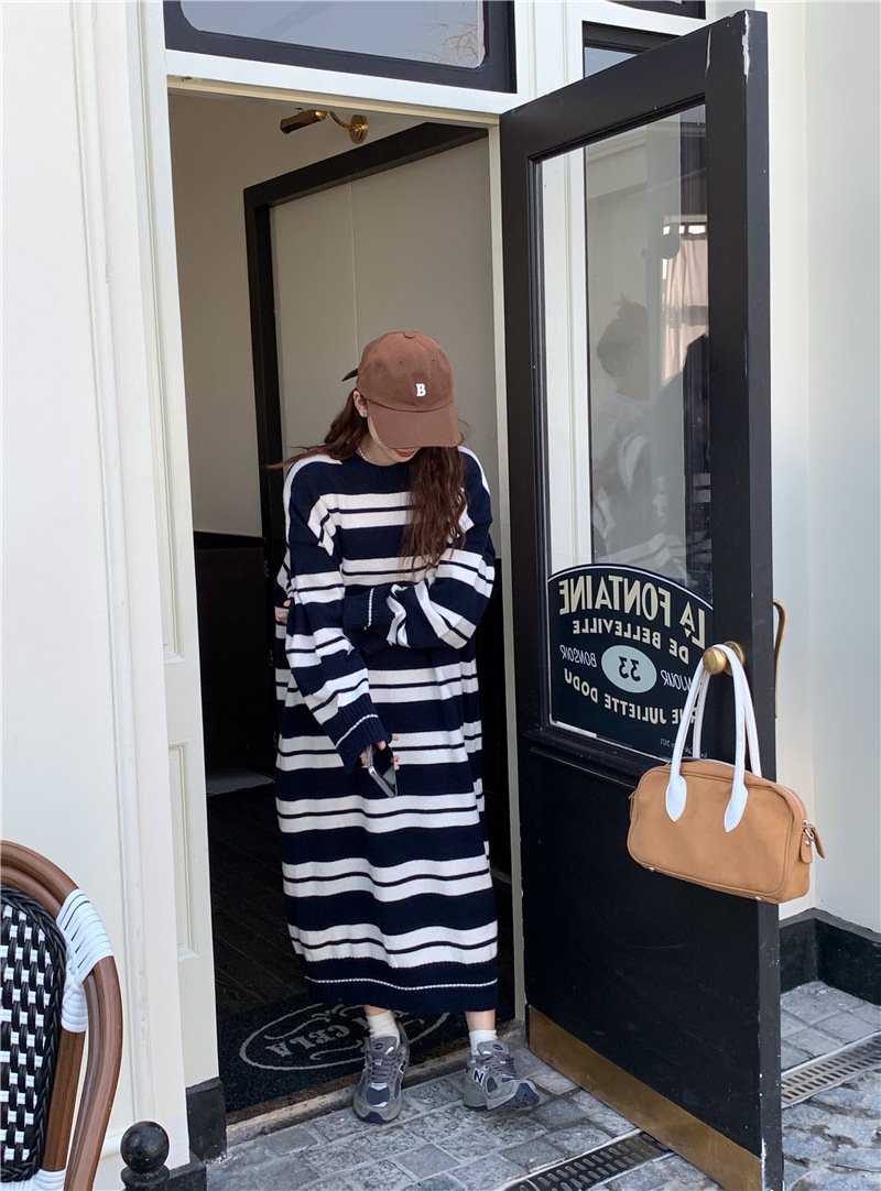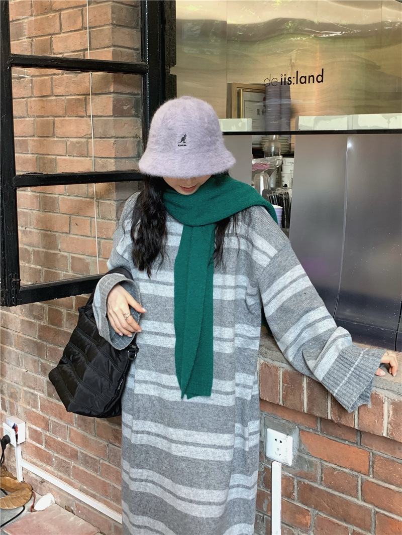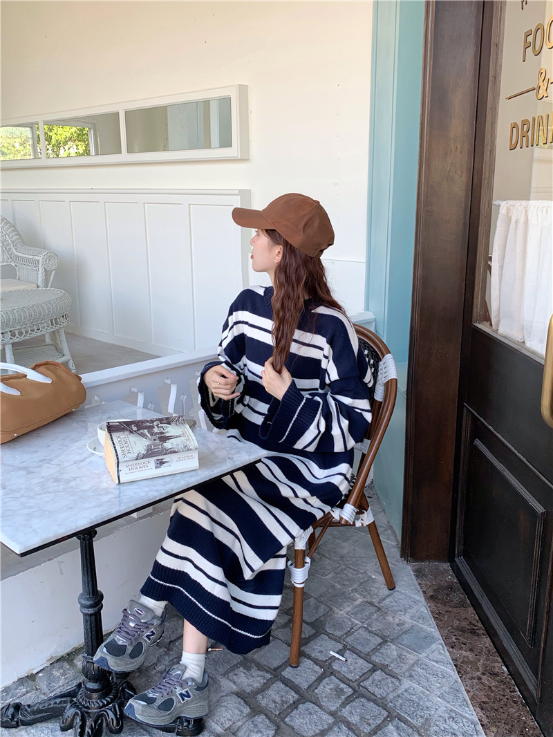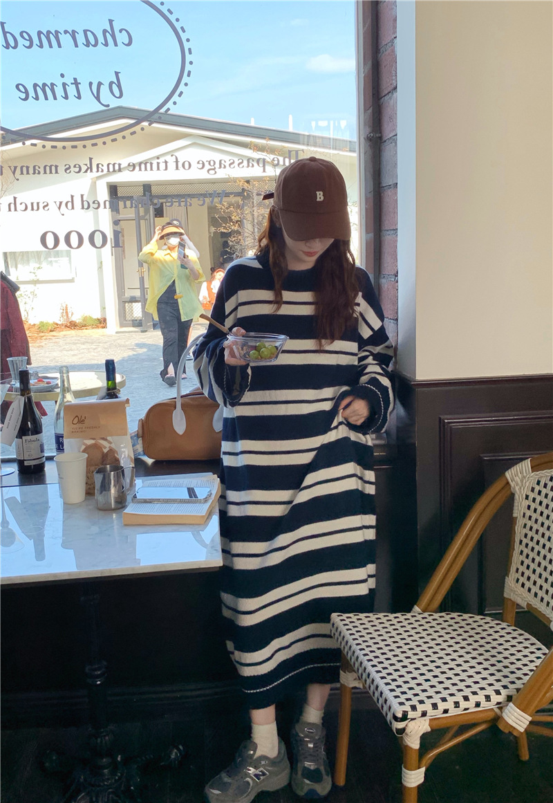 JMA-398 实拍 2023秋季韩国chic百搭简约厚实中长款外穿毛衣裙针织连衣裙