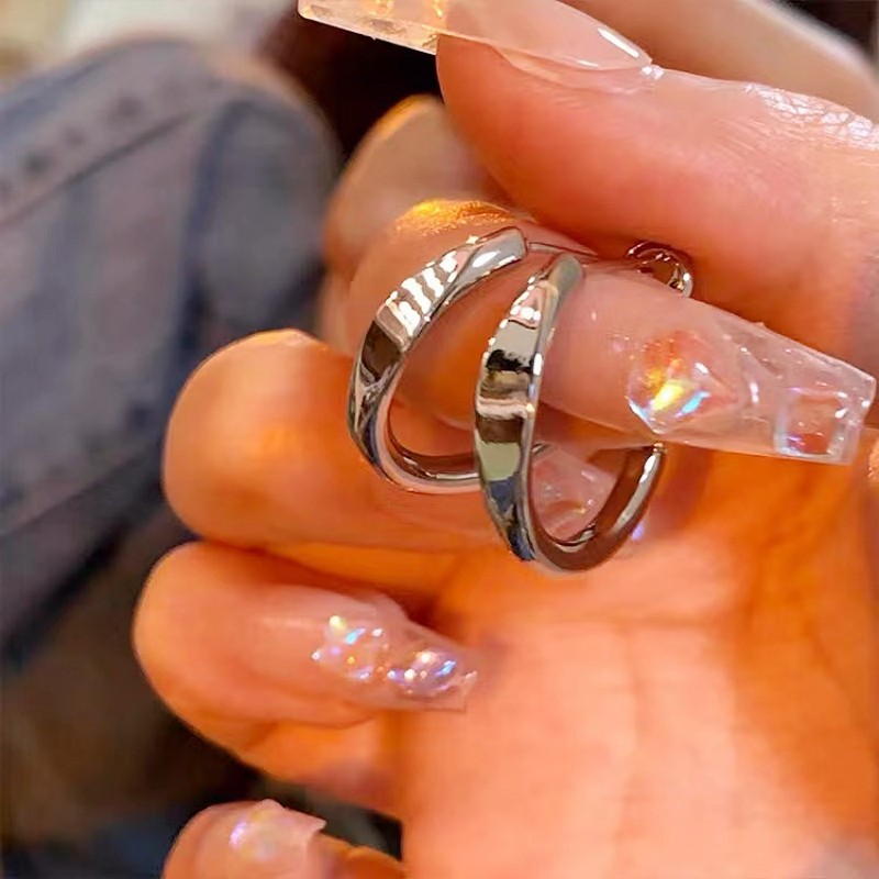 10-910 冷淡風銀色耳圈圓環簡約港風百搭氣質耳環小眾個性耳飾品 925銀針