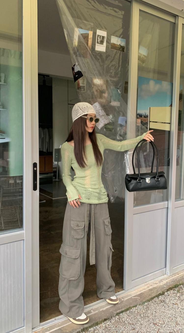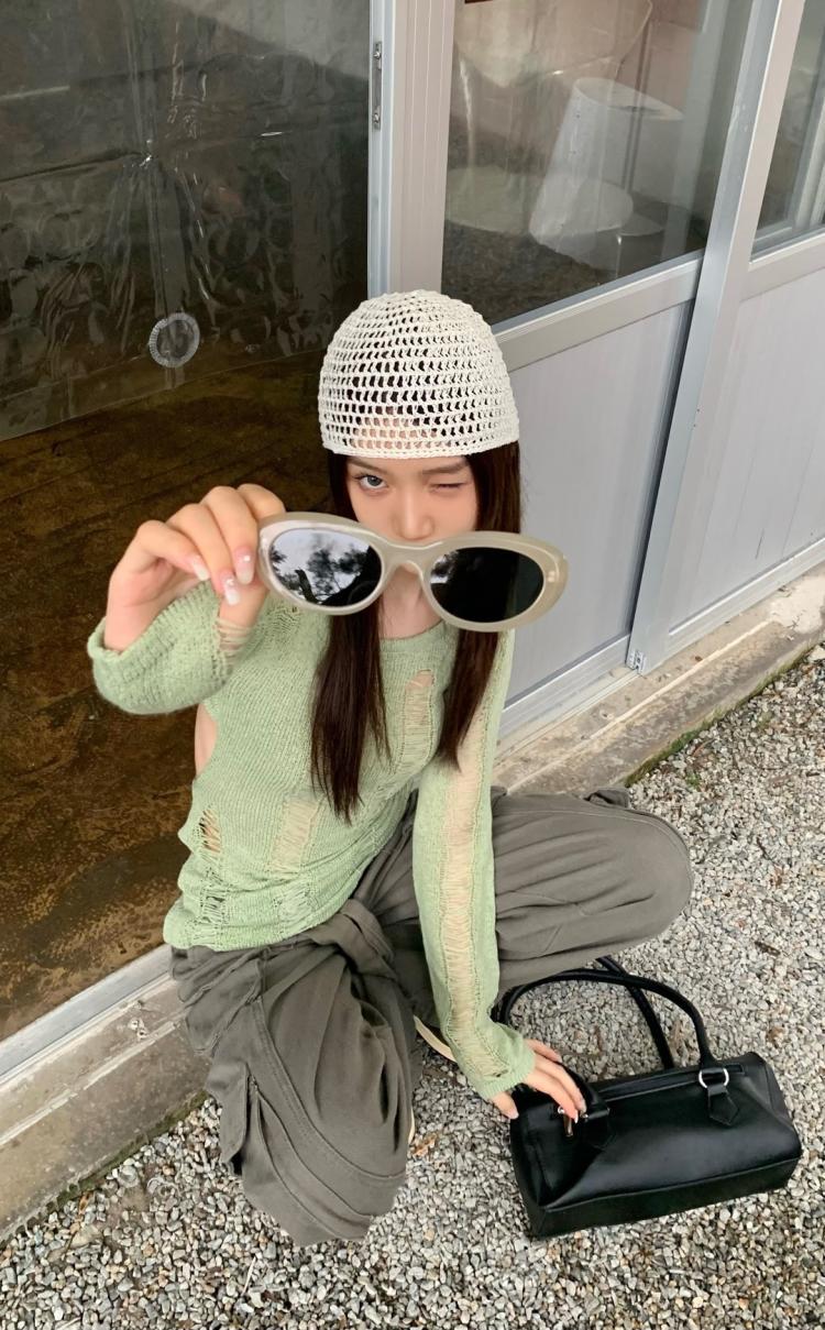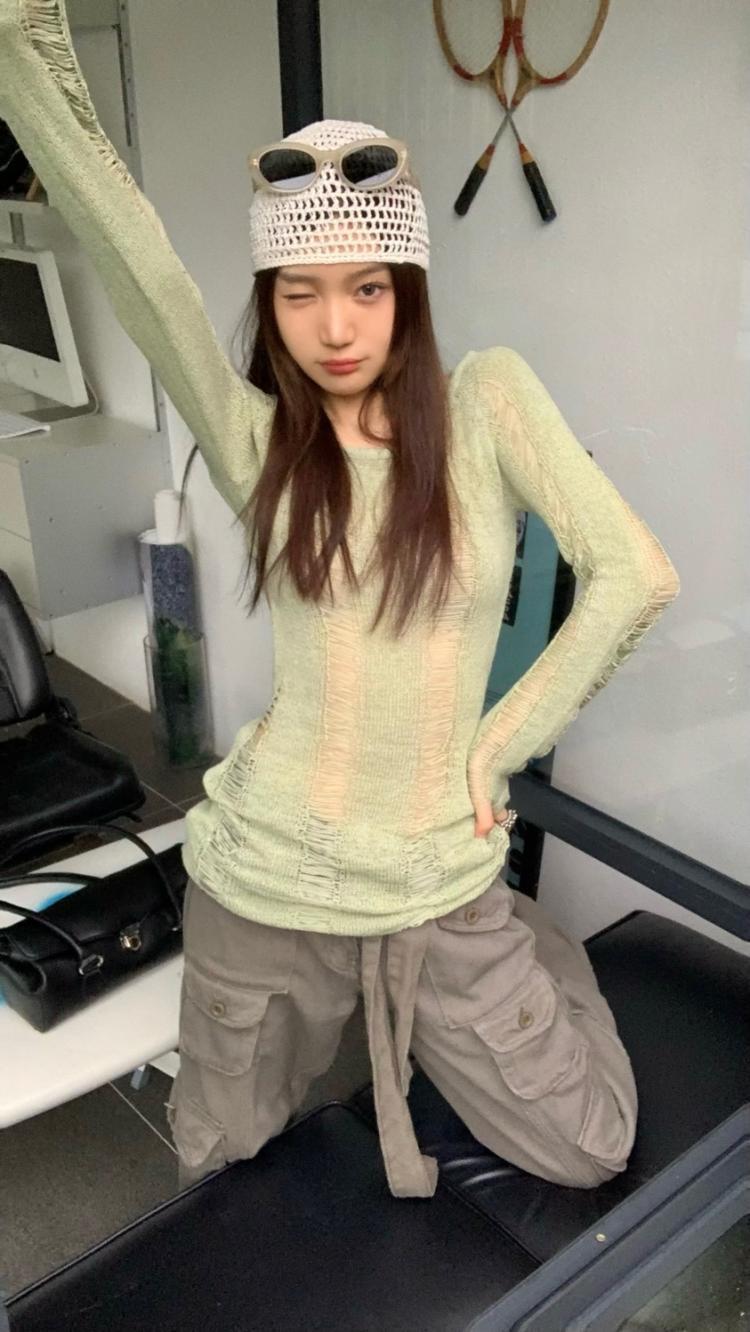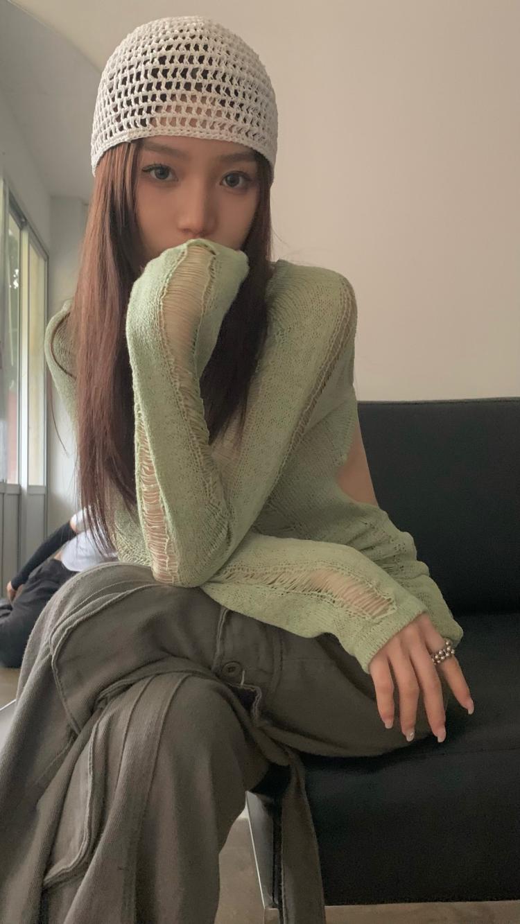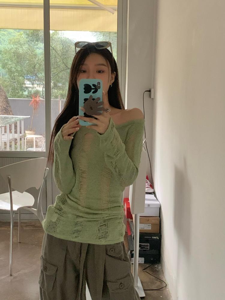 AMFS3292 顯瘦百搭辣妹鏤空露背針織衫 薄款修身設計感別緻綠色 上衣