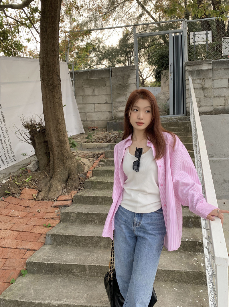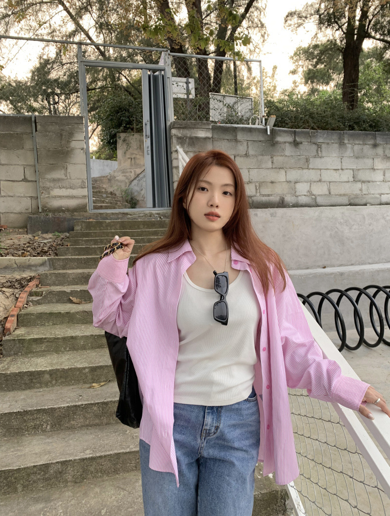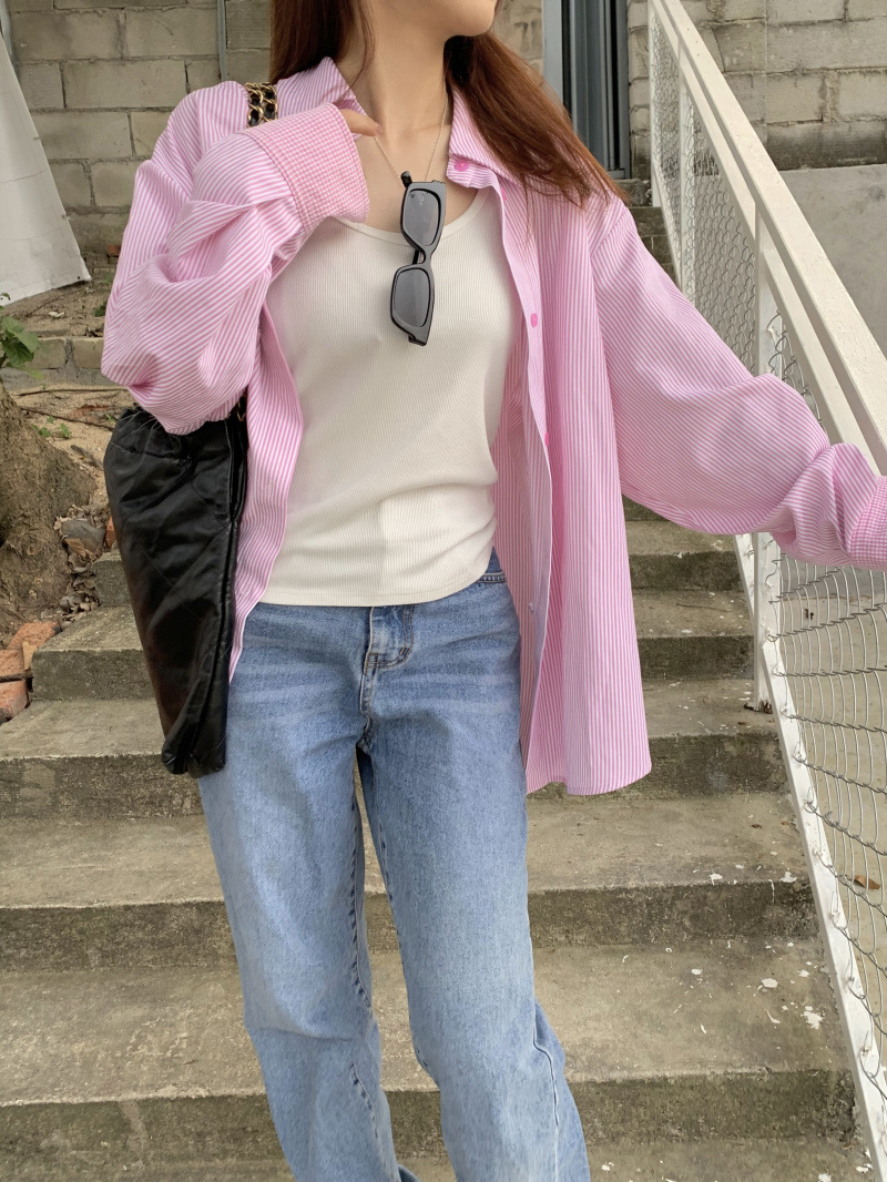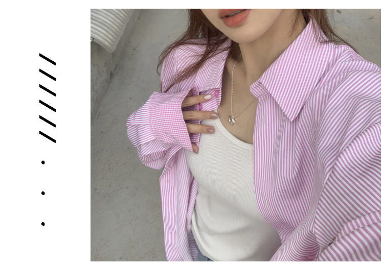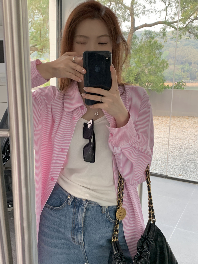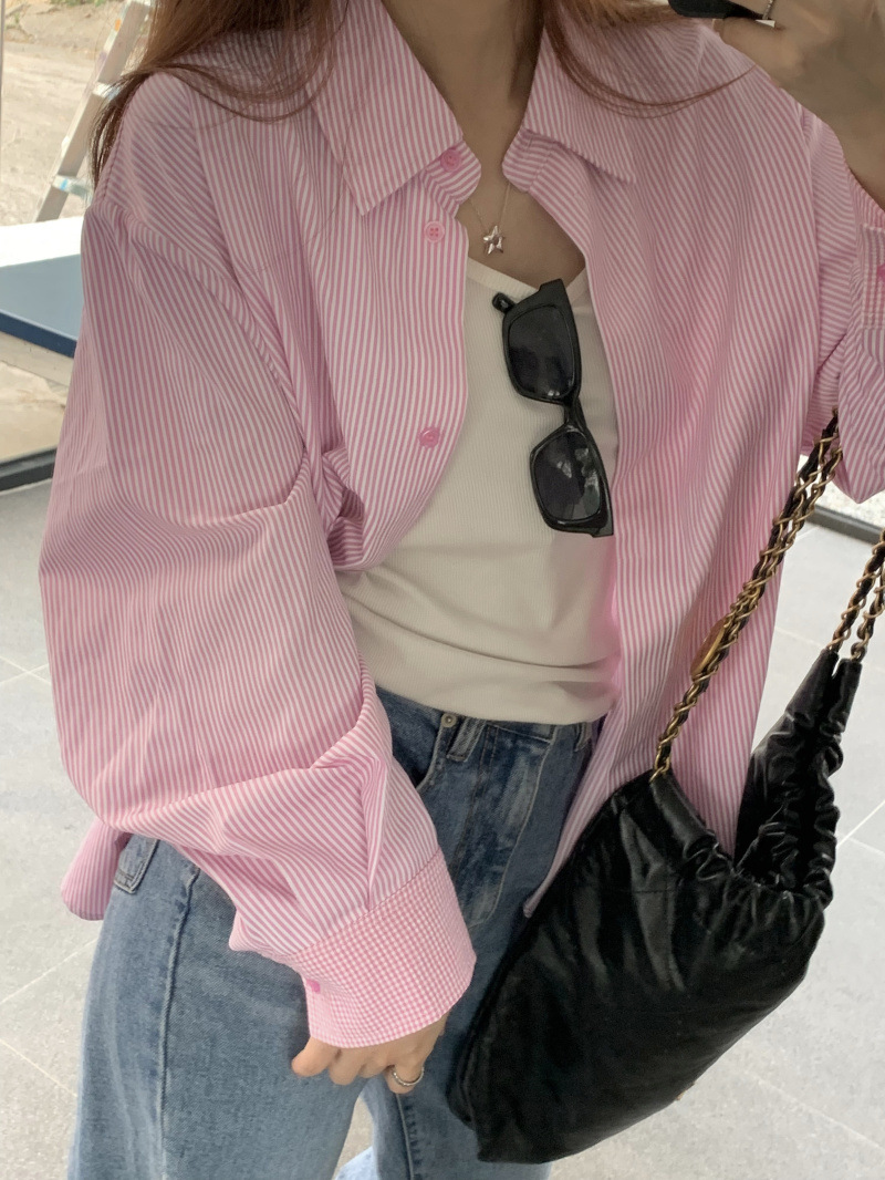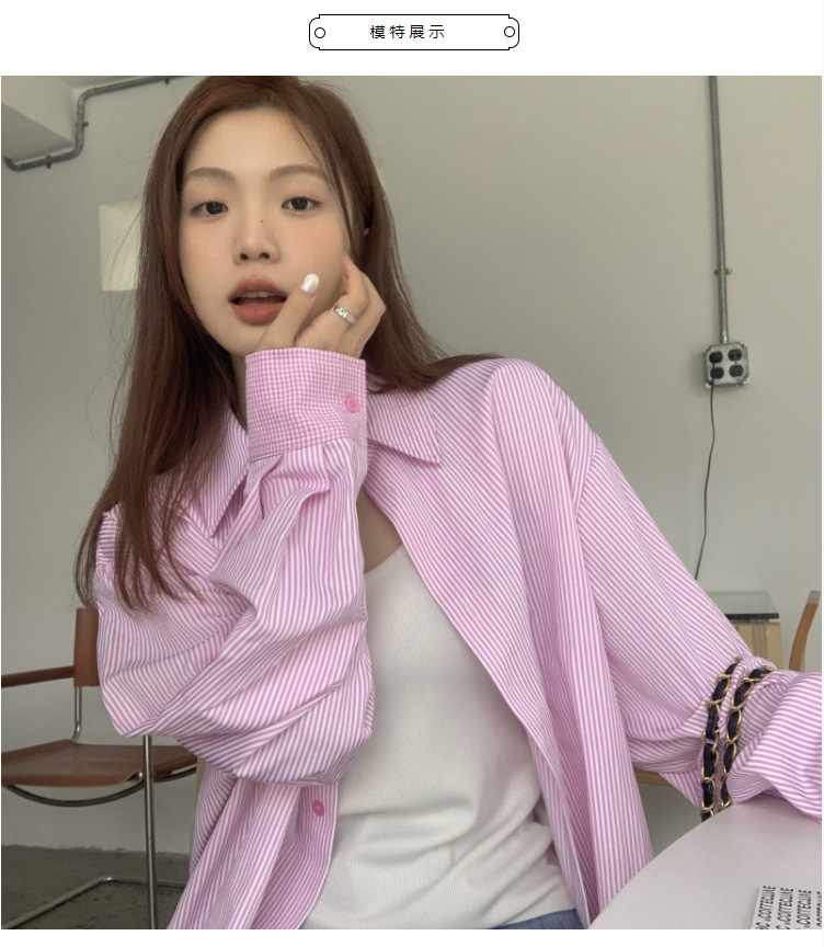 LXFS8281 粉色條紋長袖襯衫女 新款韓版棉感舒適休閒 襯衣 外套