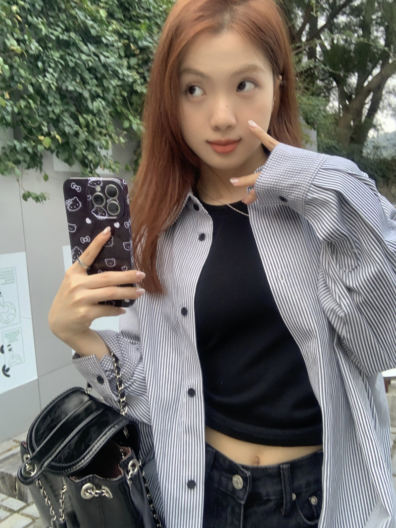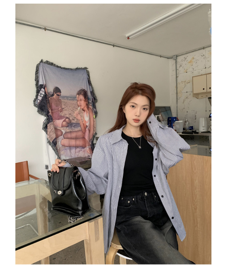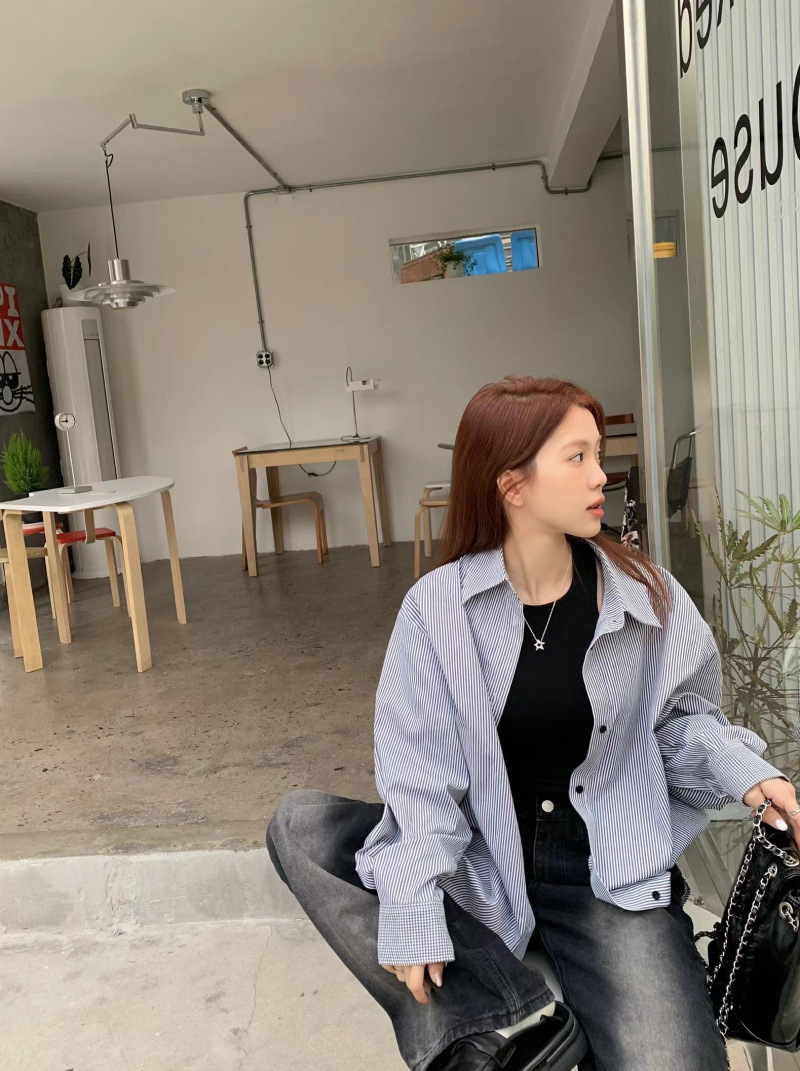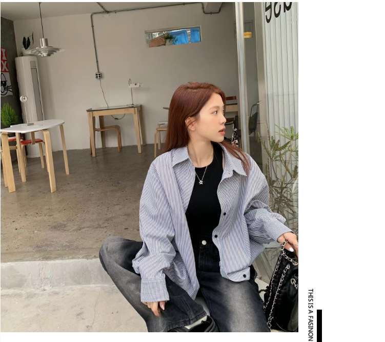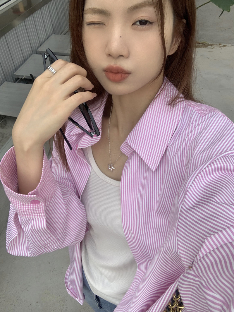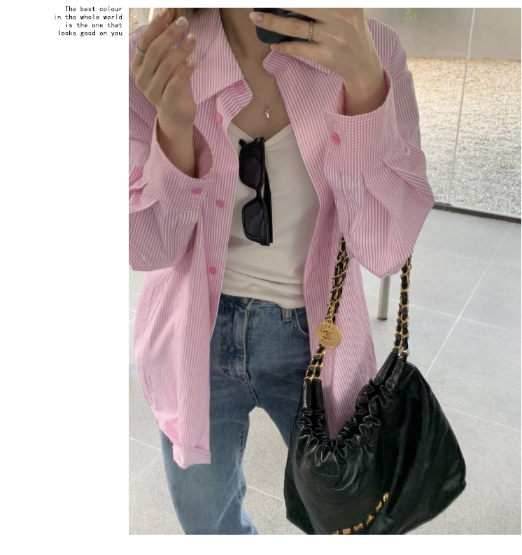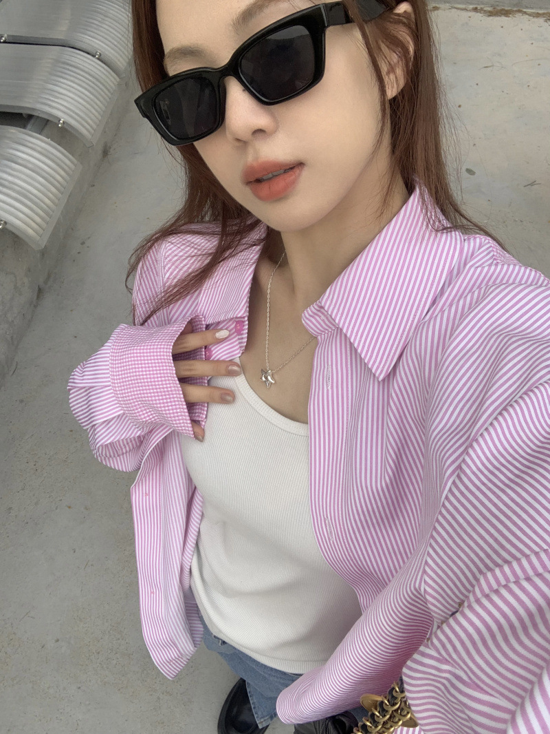 LXFS8281 粉色條紋長袖襯衫女 新款韓版棉感舒適休閒 襯衣 外套