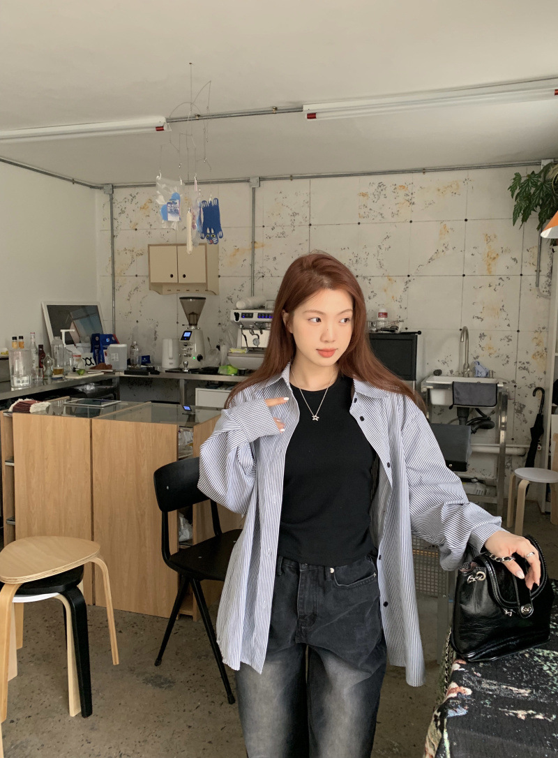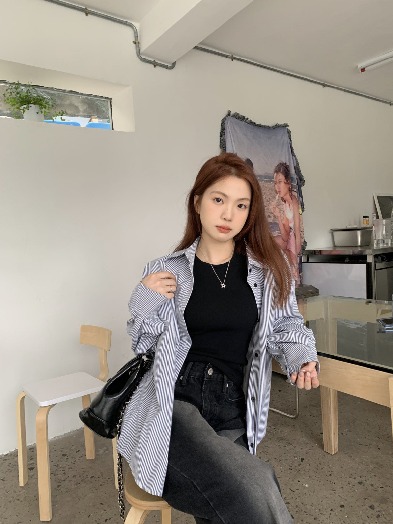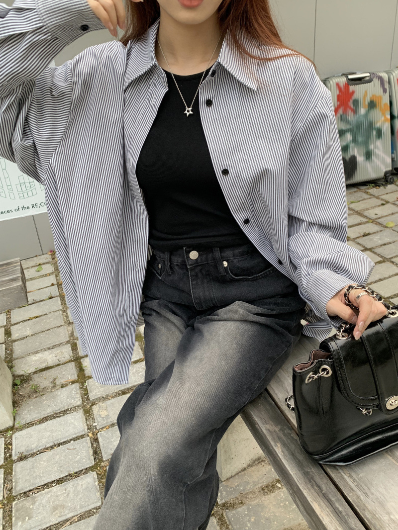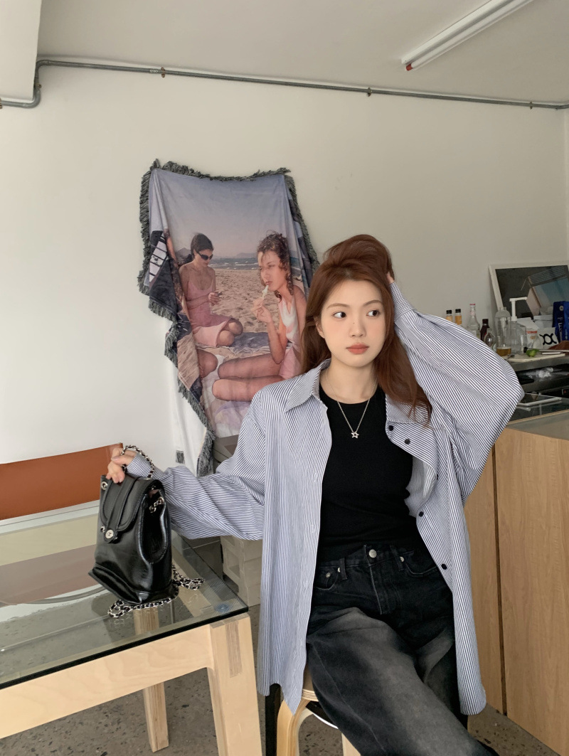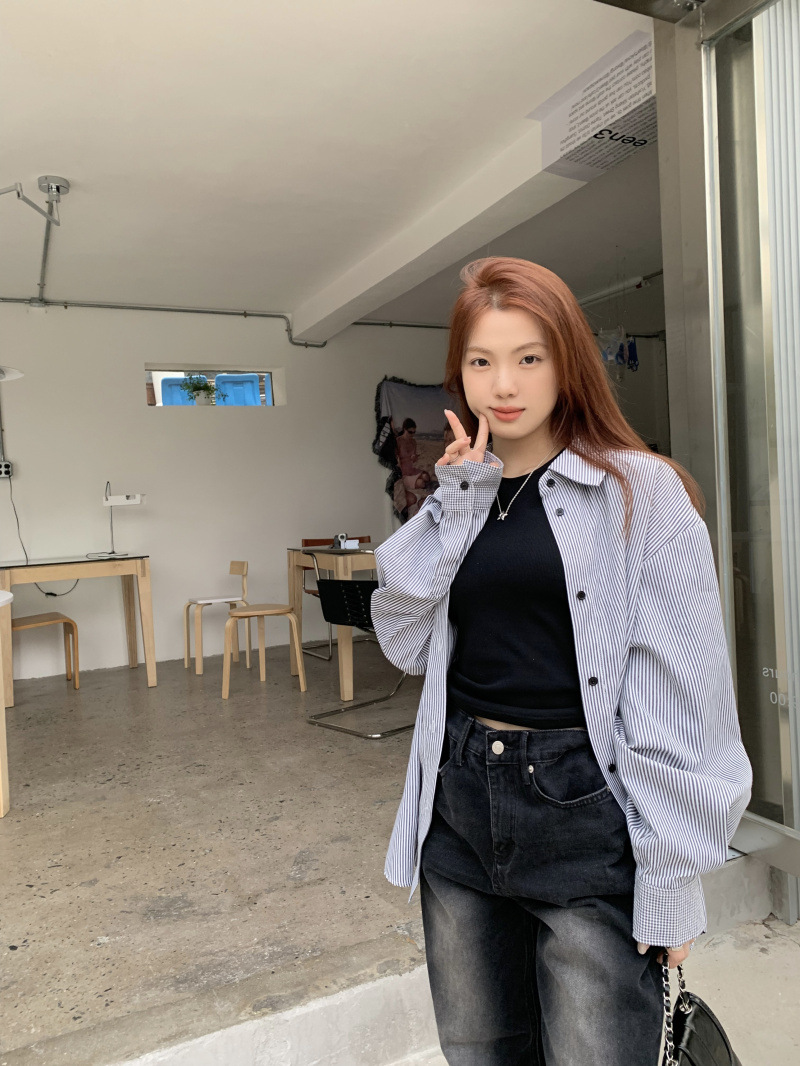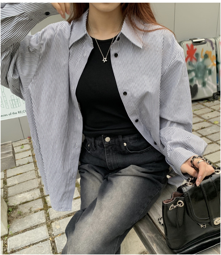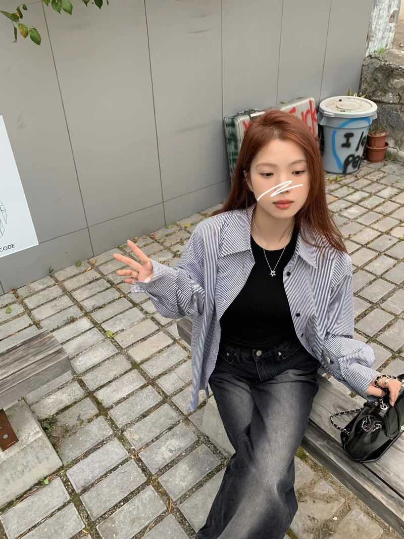 LXFS8281 粉色條紋長袖襯衫女 新款韓版棉感舒適休閒 襯衣 外套