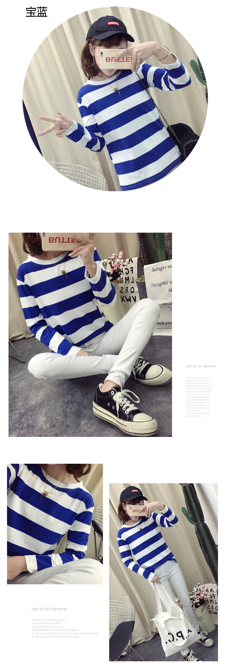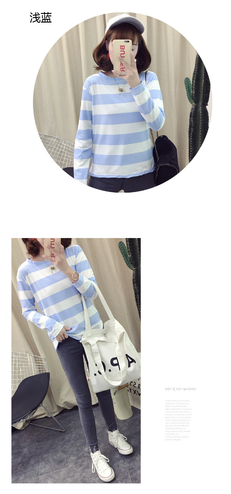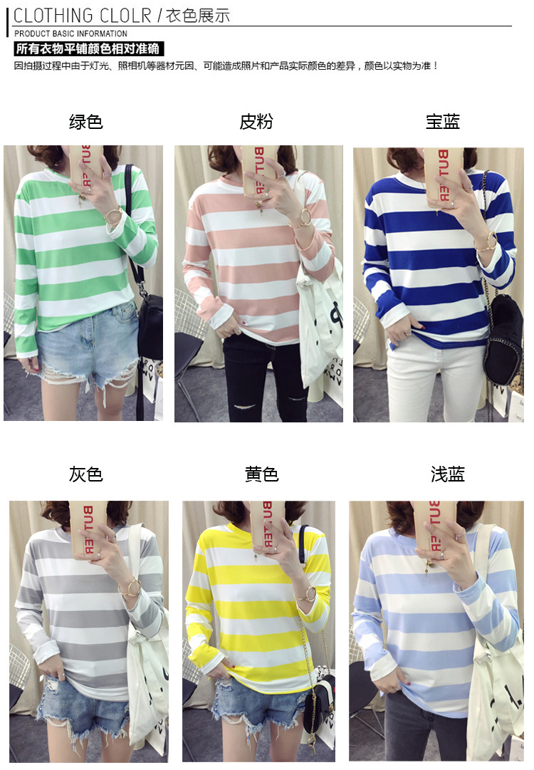 HY-8616 新款韓版條紋長袖T打底休閒 上衣