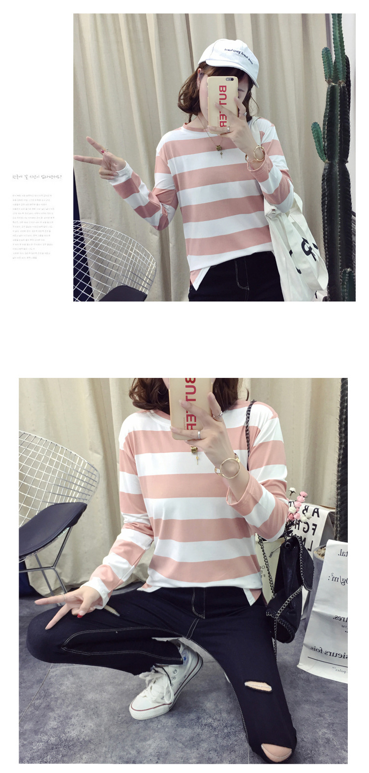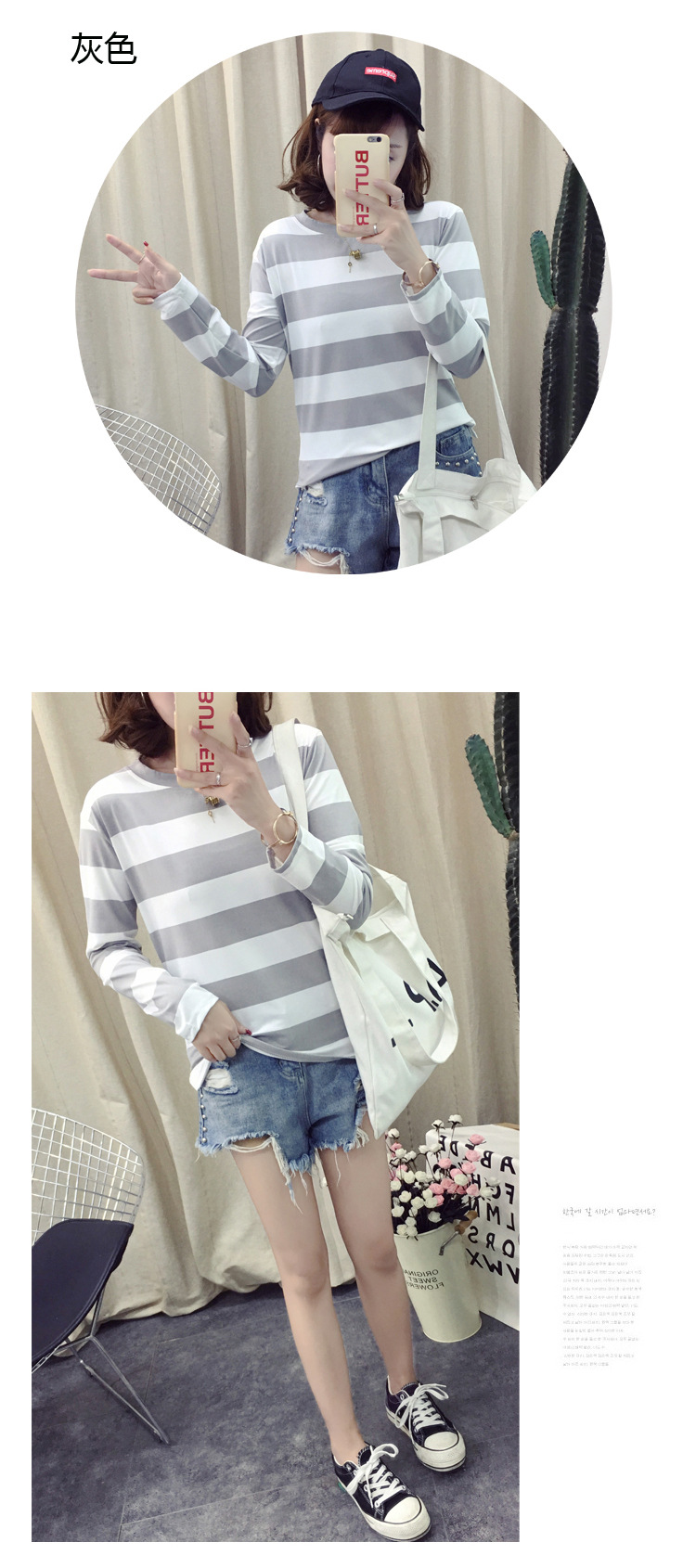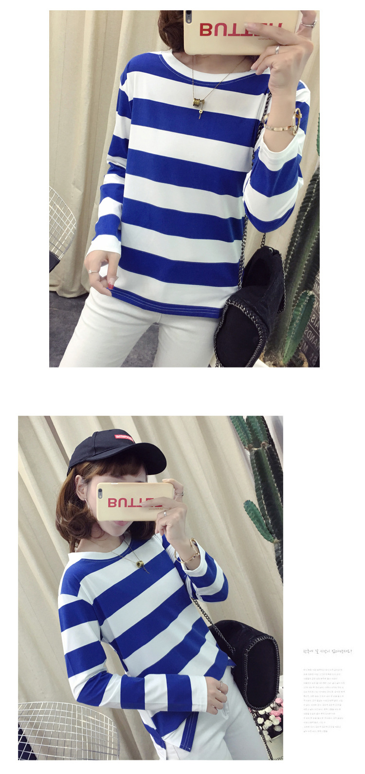 HY-8616 新款韓版條紋長袖T打底休閒 上衣