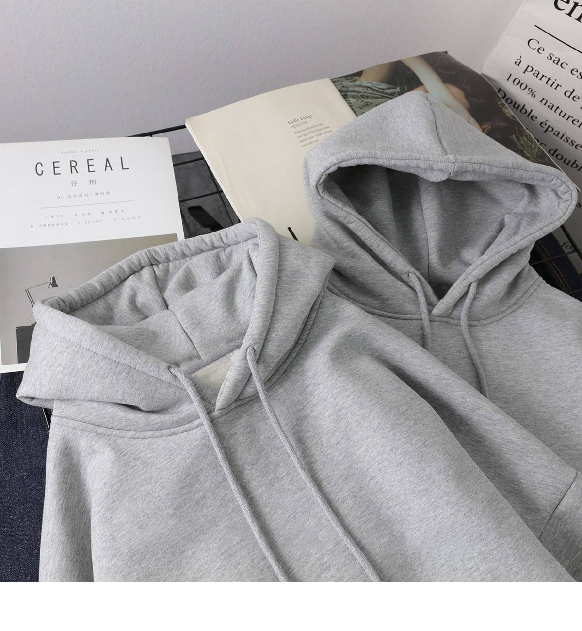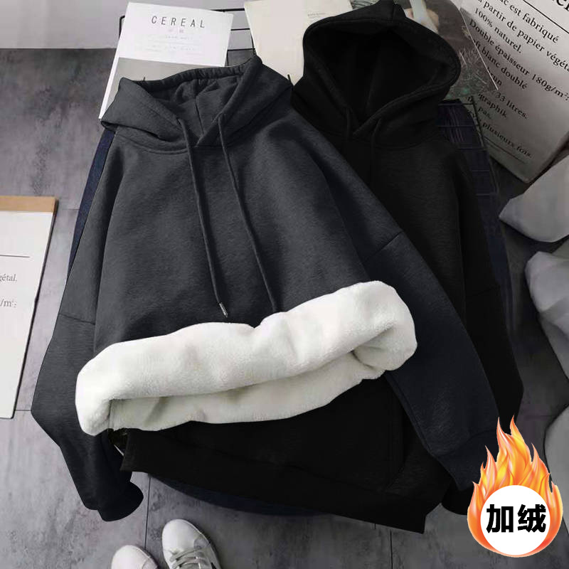 WBX-C66 女秋冬韓國女裝純色連帽外套長袖加絨加厚雙層帽衛衣 上衣