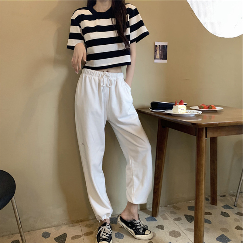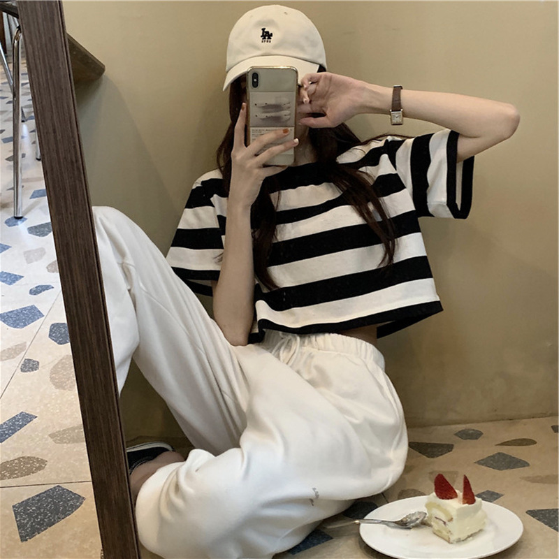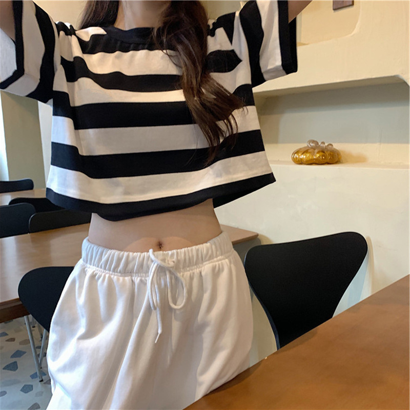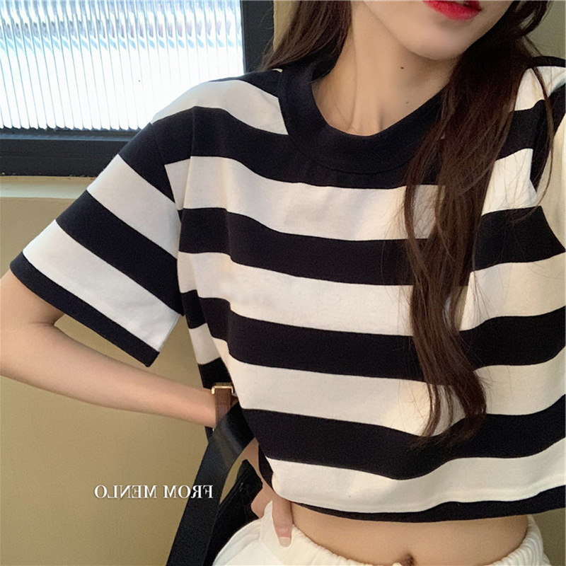 WBX-W232 韓版寬鬆女裝條紋短款女式短袖T休閒 上衣