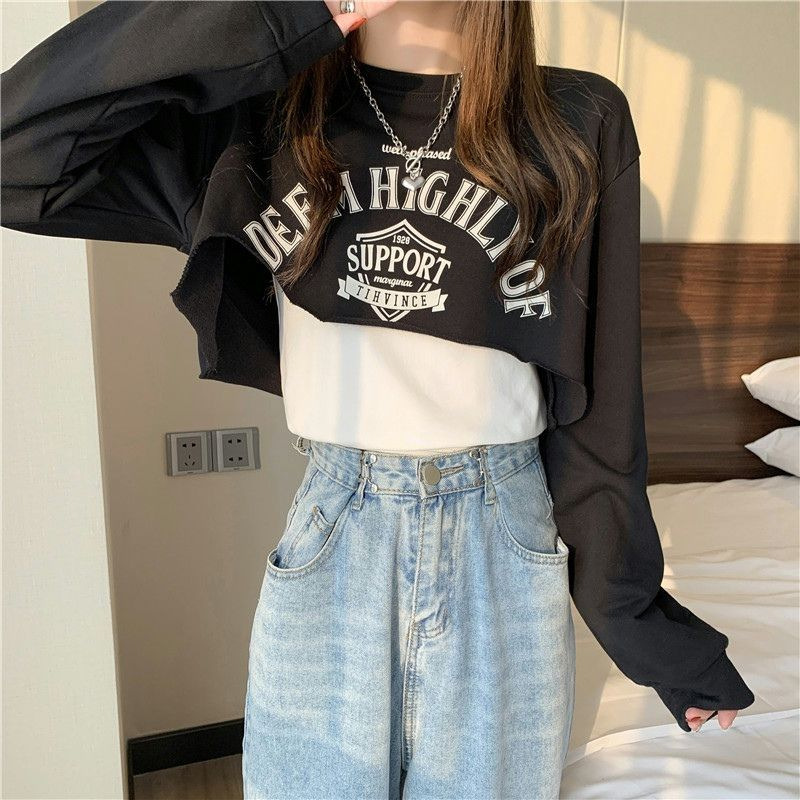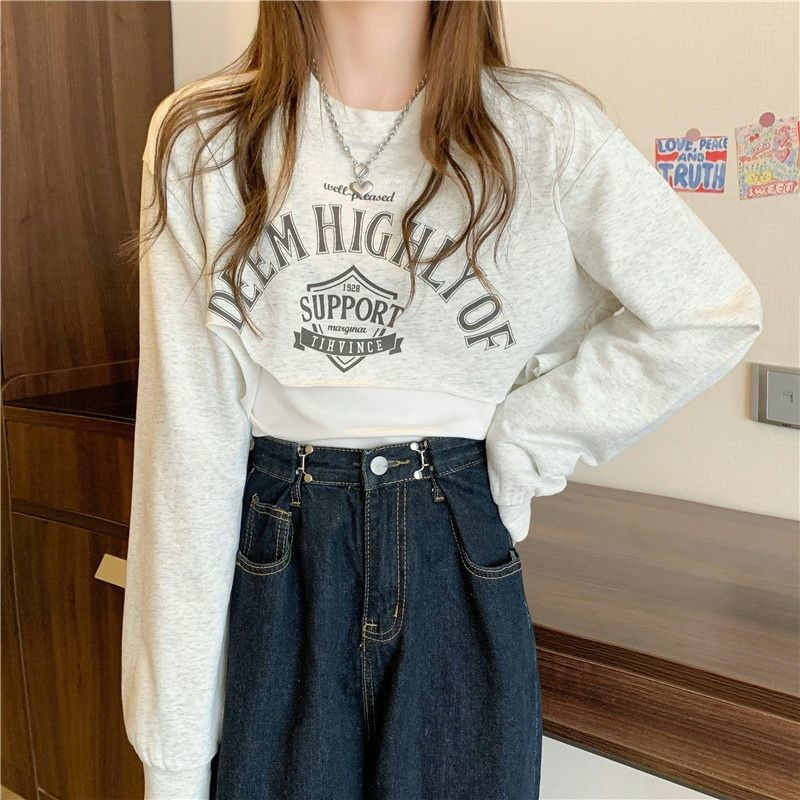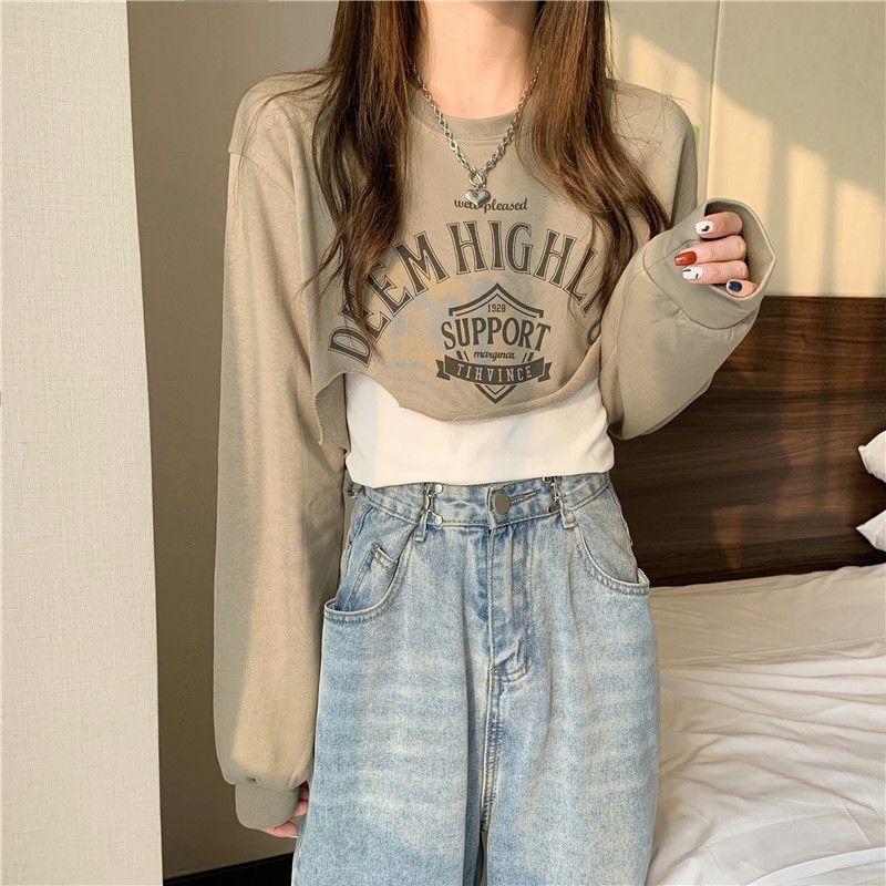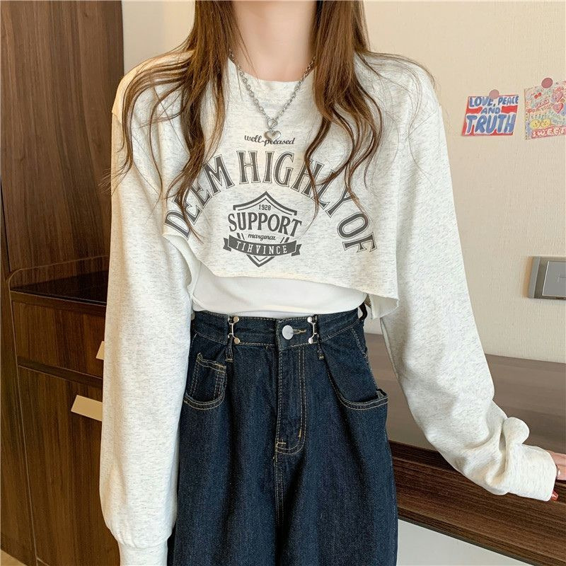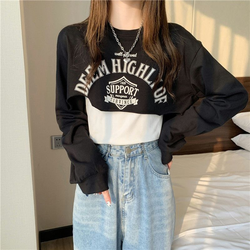 HC-456 短款衛衣+吊帶背心兩件套小眾寬鬆薄款長袖ins 上衣