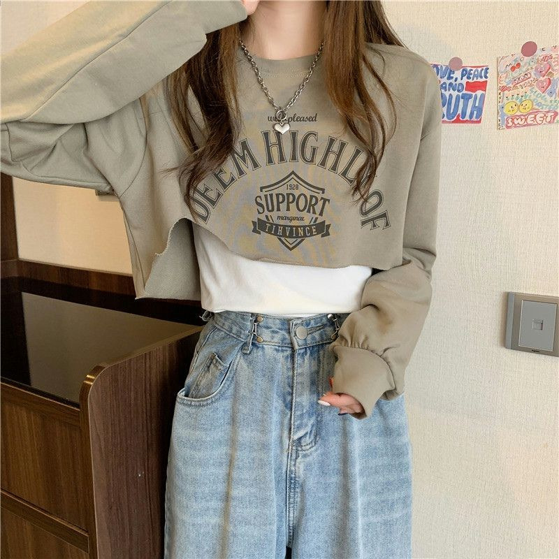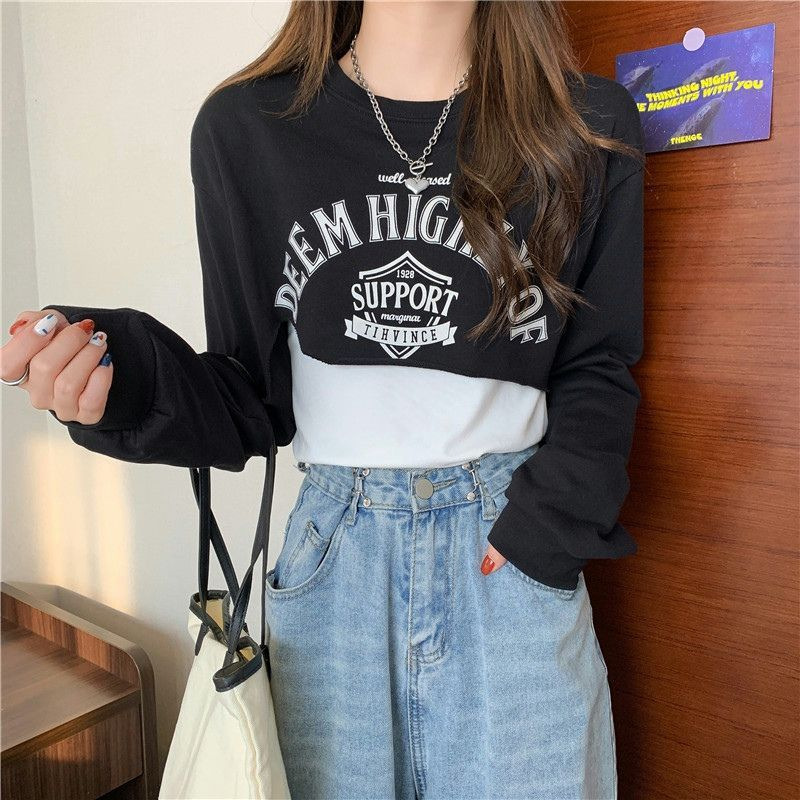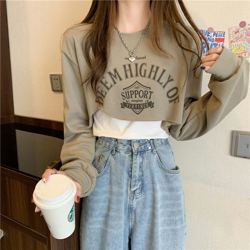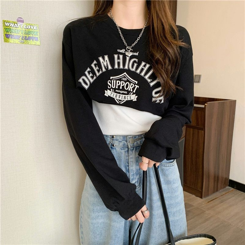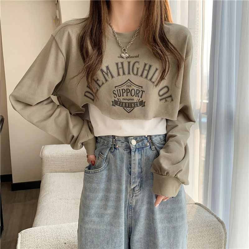 HC-456 短款衛衣+吊帶背心兩件套小眾寬鬆薄款長袖ins 上衣
