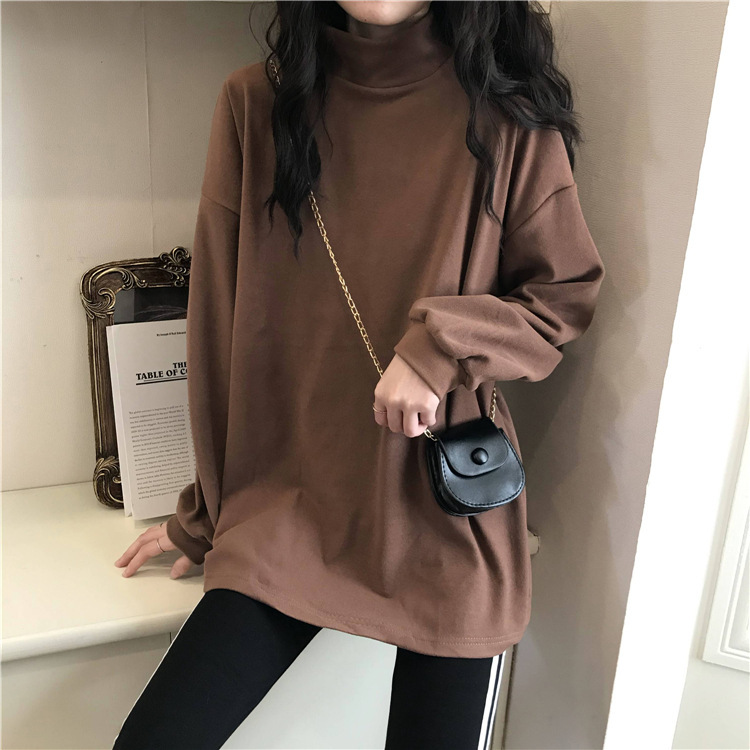 WBX-T0052 韓版雙面德絨半高領純色寬鬆打底冬薄絨長袖T卹休閒 上衣
