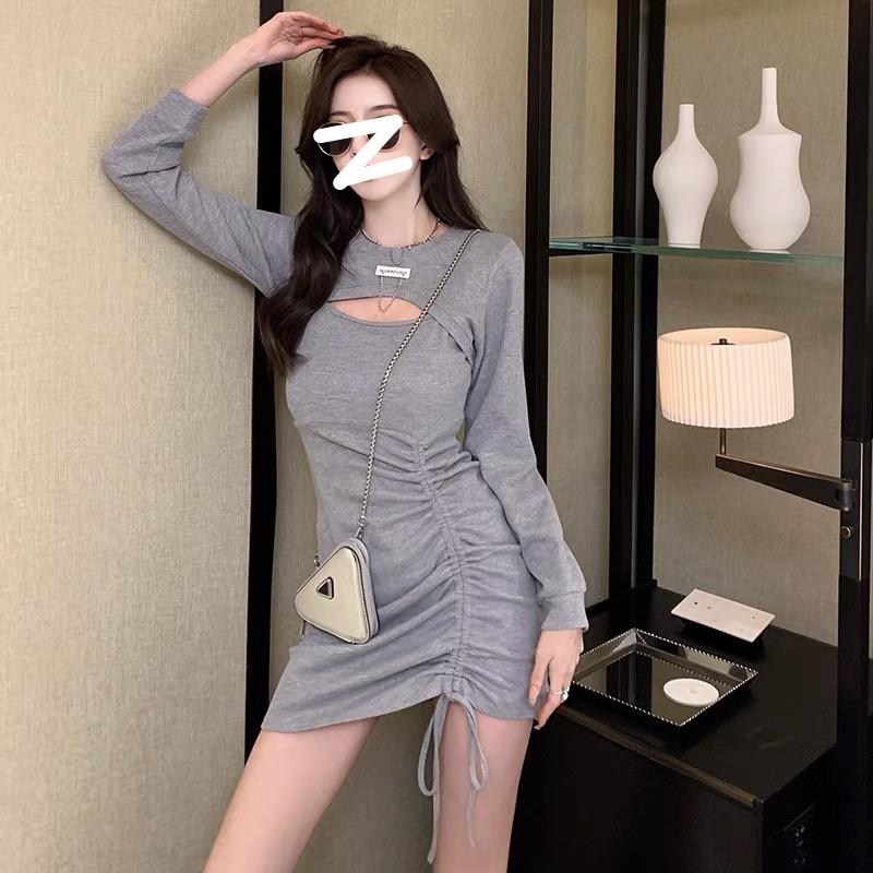 HS-905 新款女網紅炸街小心機抽繩設計感針兩件吊帶連衣裙 套裝