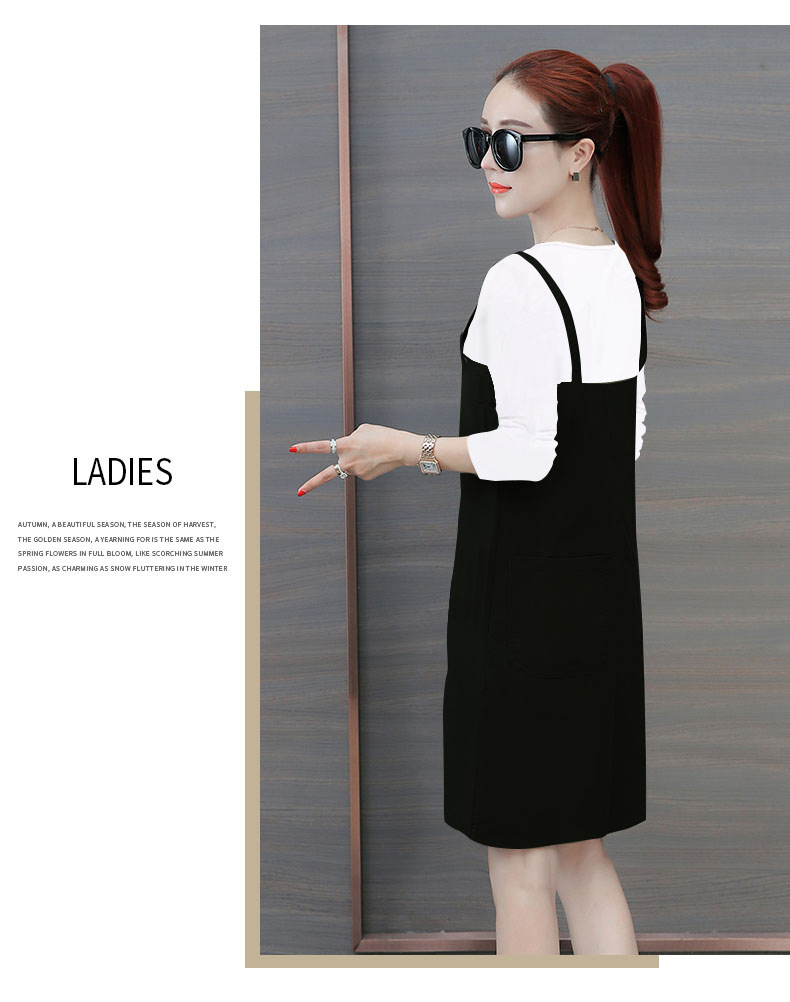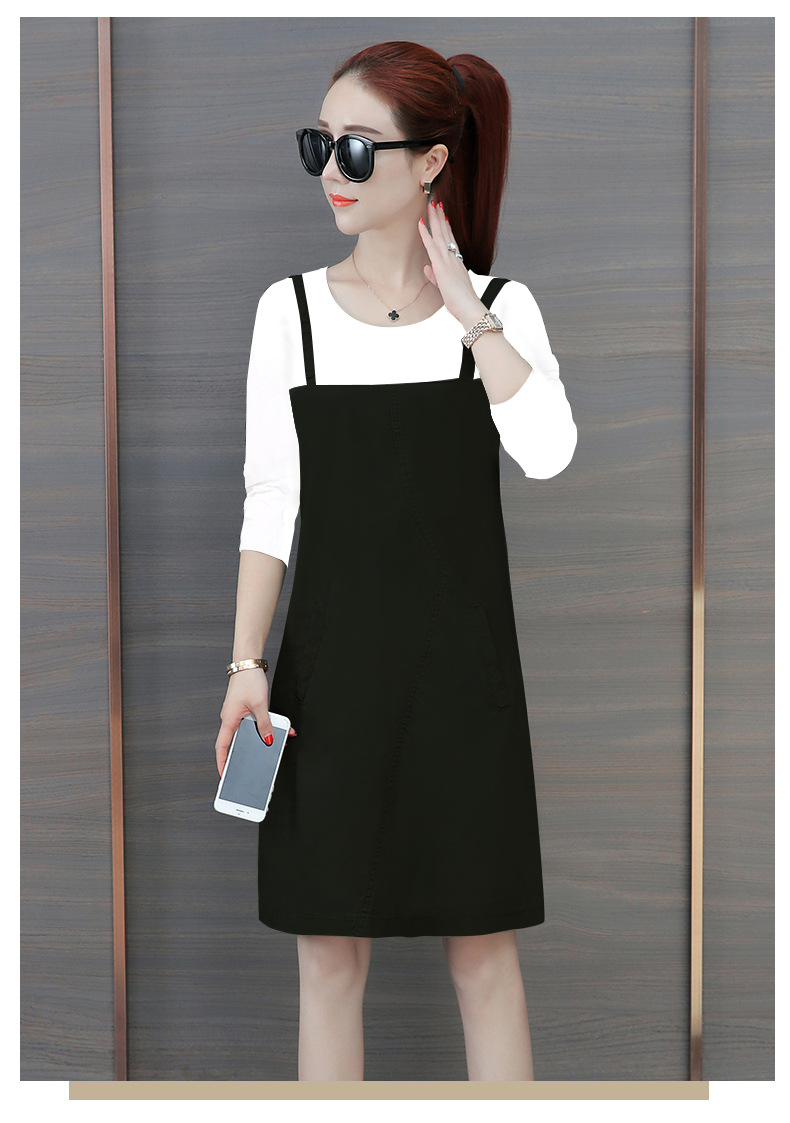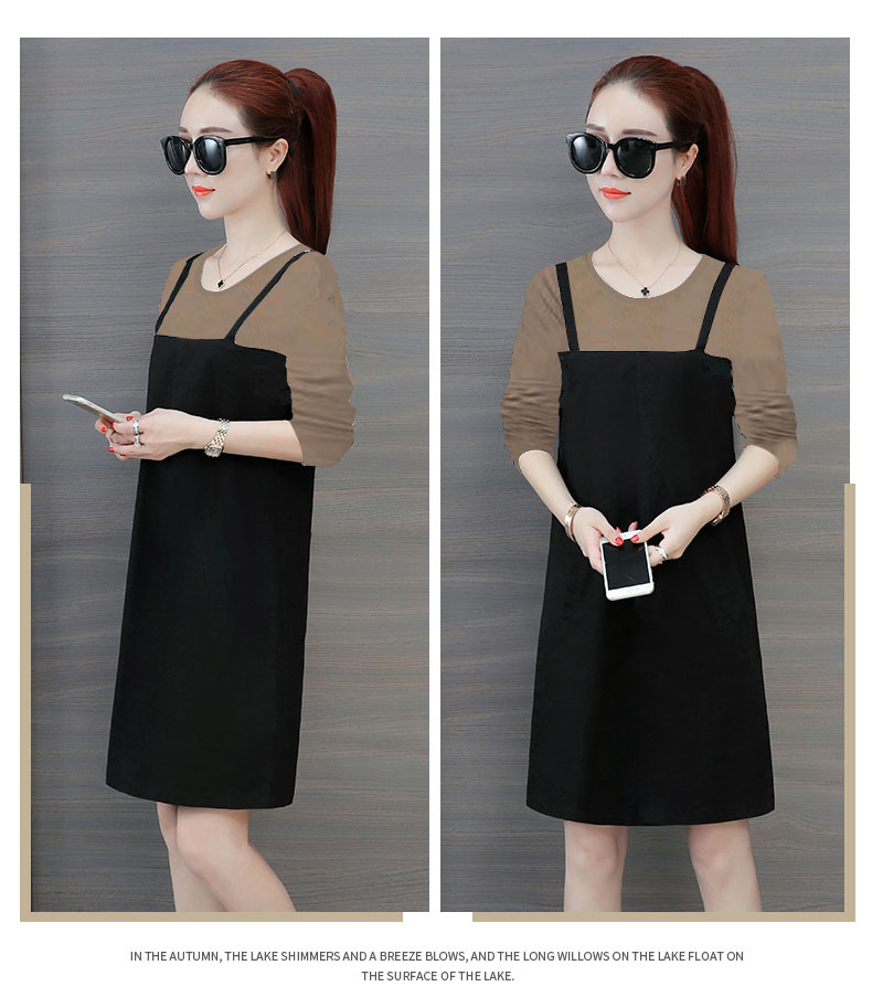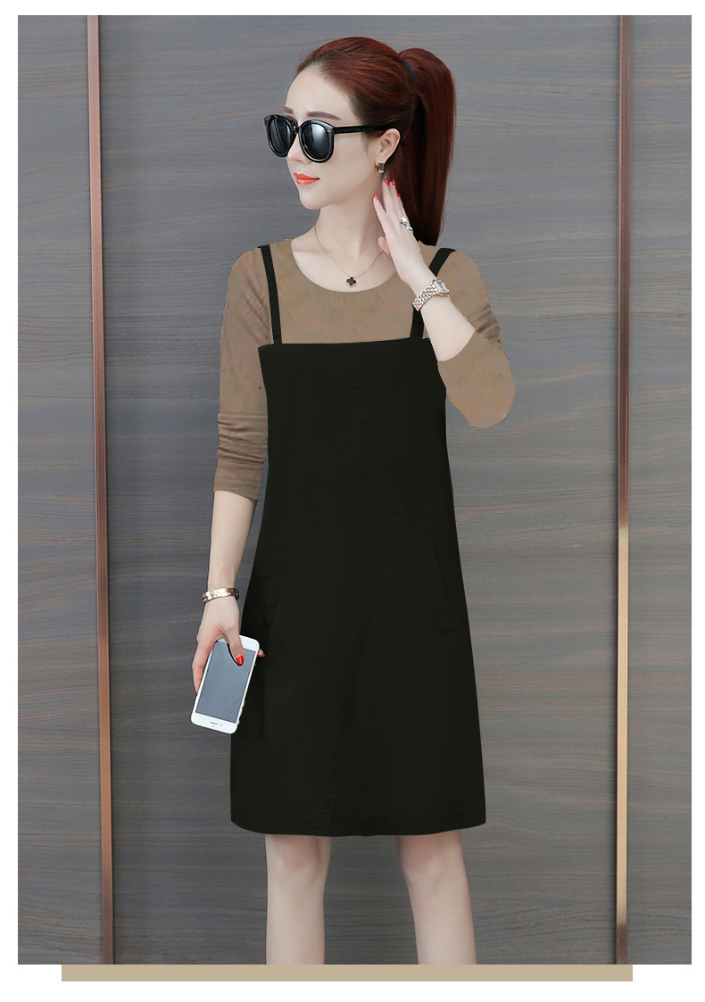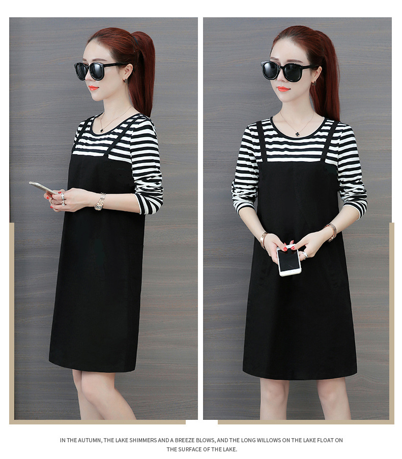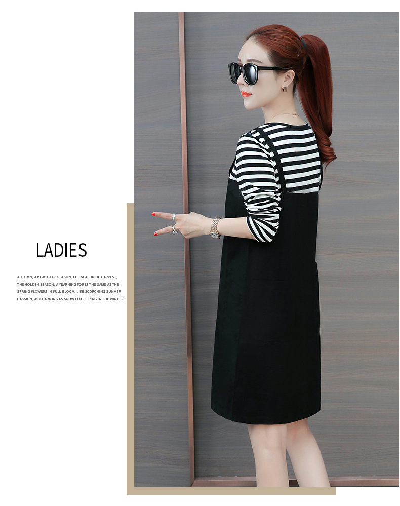 HS-641 韓版女裝顯瘦時尚條紋長袖連衣裙假兩件套中長款顯瘦 連衣裙