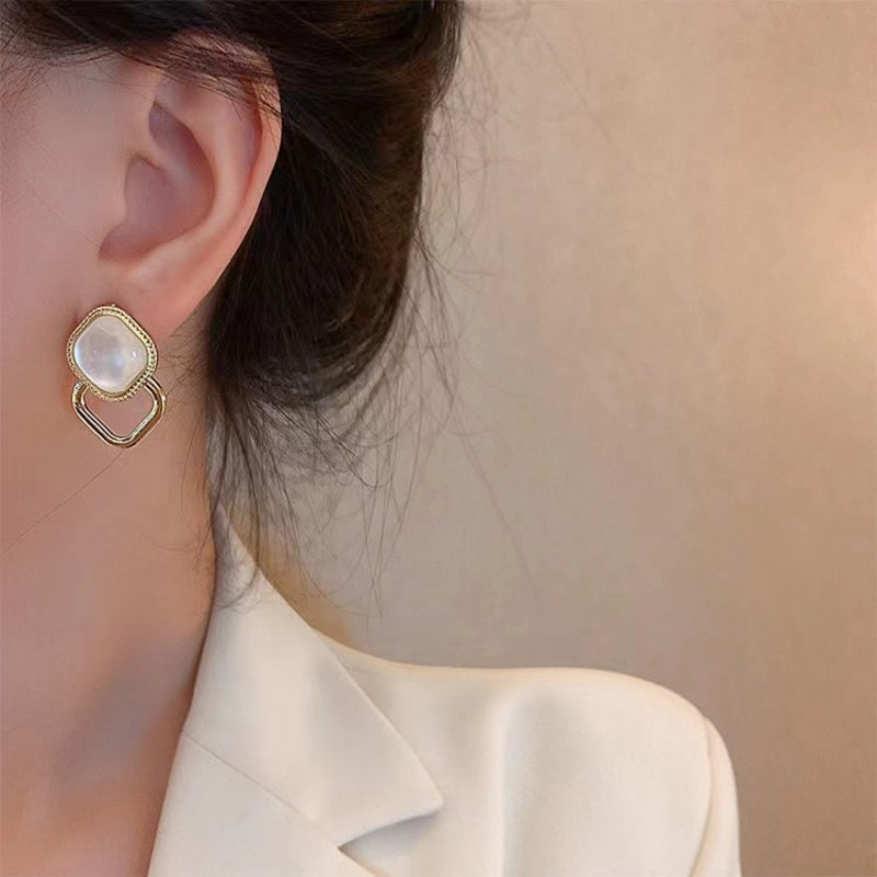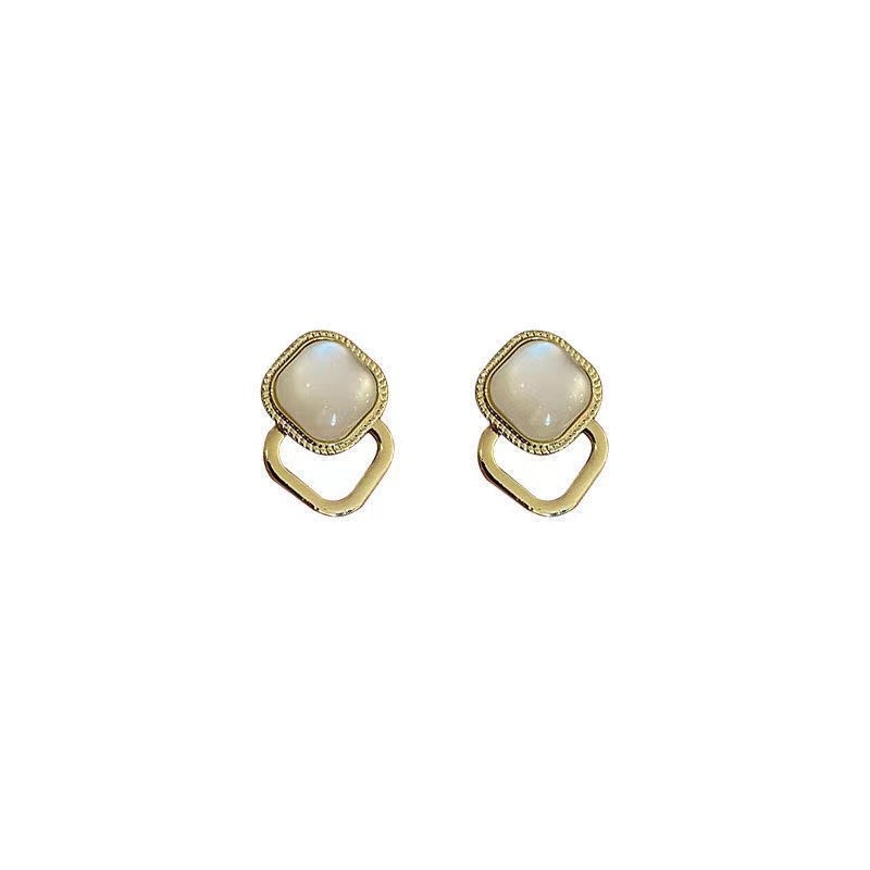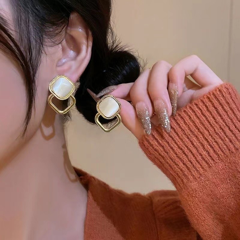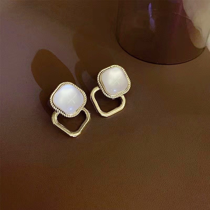 11-002 法式複古貓眼石耳環簡約高級時尚淑女風耳釘氣質幾何耳飾 925銀針