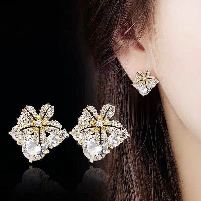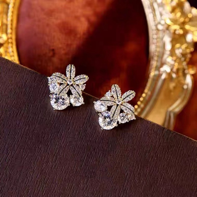 3A606 合花朵耳釘耳環韓國網紅個性氣質長款耳墜簡約ins少女耳飾 925銀針