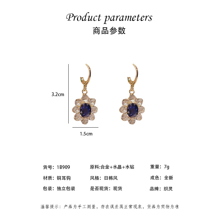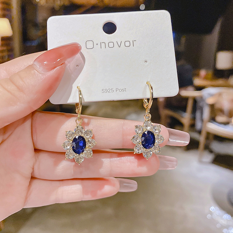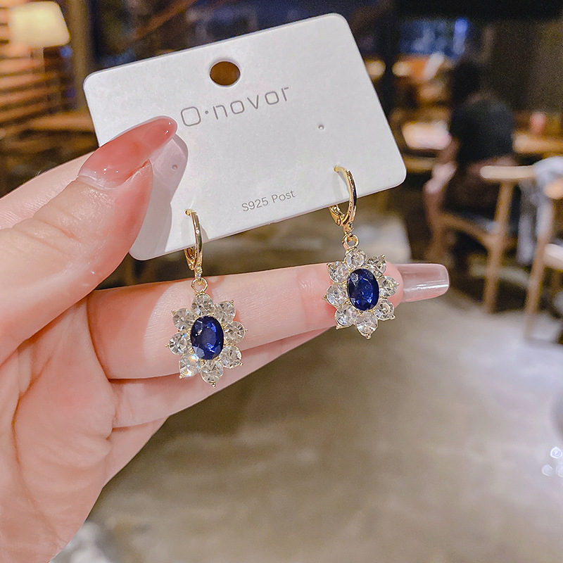 JME-851 925银针东大门韩版蓝色宝石耳环 耳圈吊坠时尚镶钻耳钉耳饰品批发