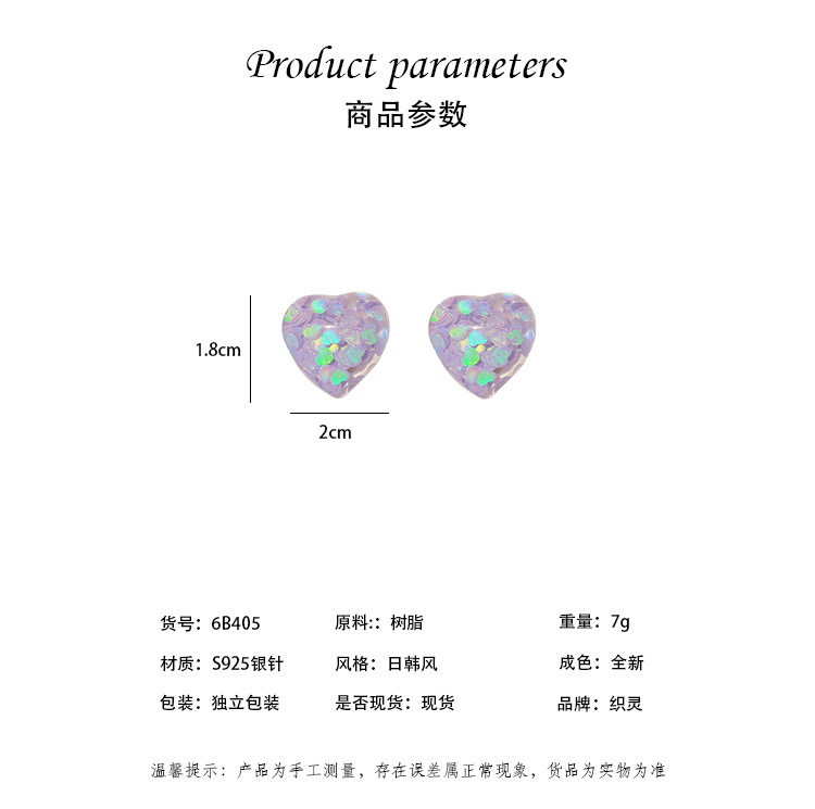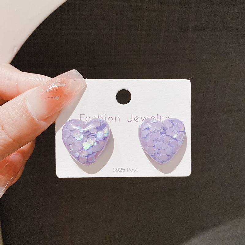 JME-853 法式时尚爱心紫色系耳环2024新品潮气质温柔耳钉大气百搭精致耳饰