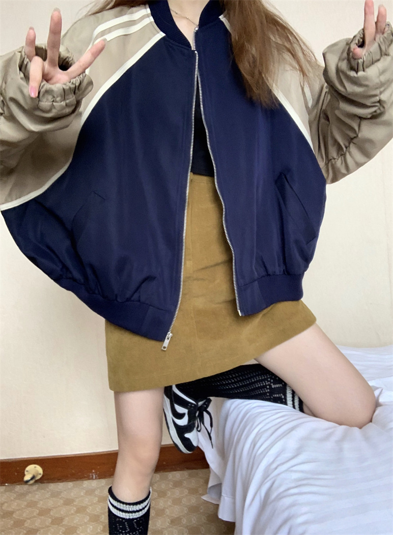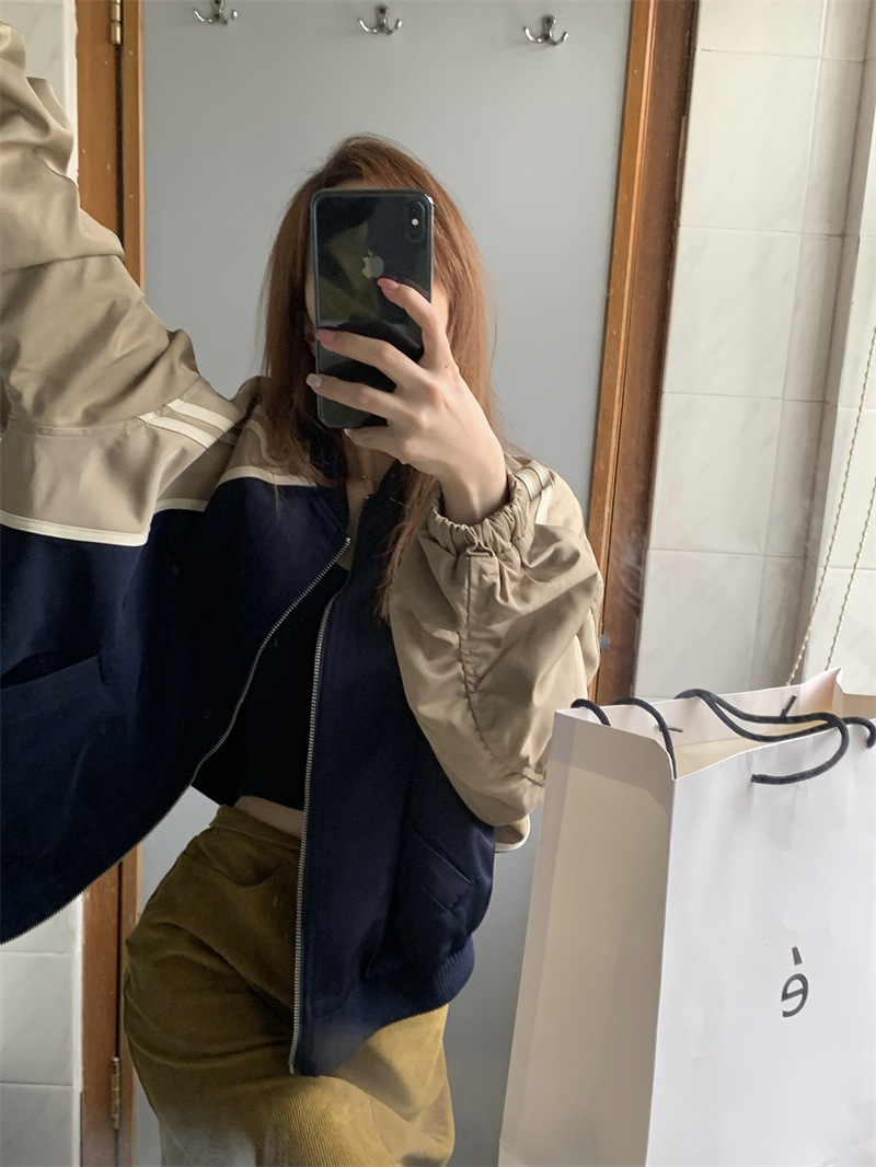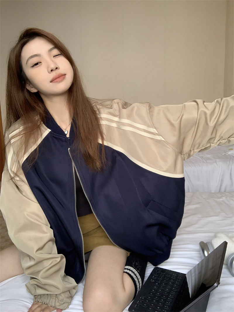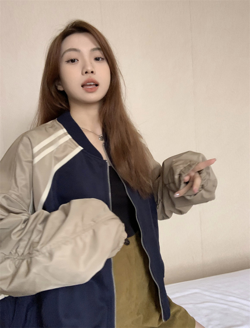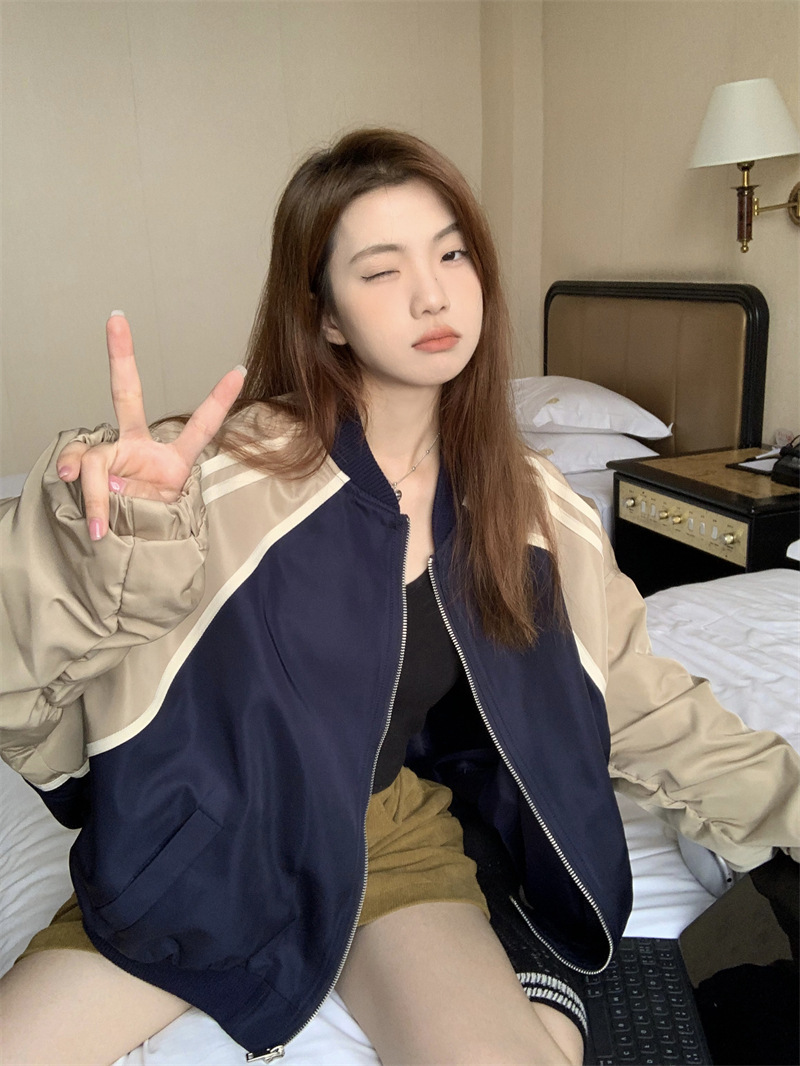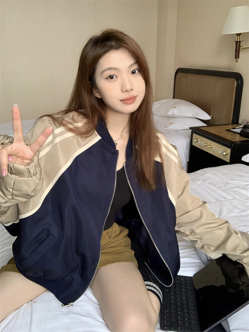 JMA-046 实拍 新款韩版宽松拼接撞色拉链开衫运动棒球服外套上衣