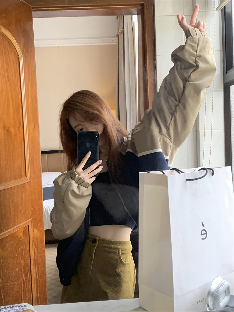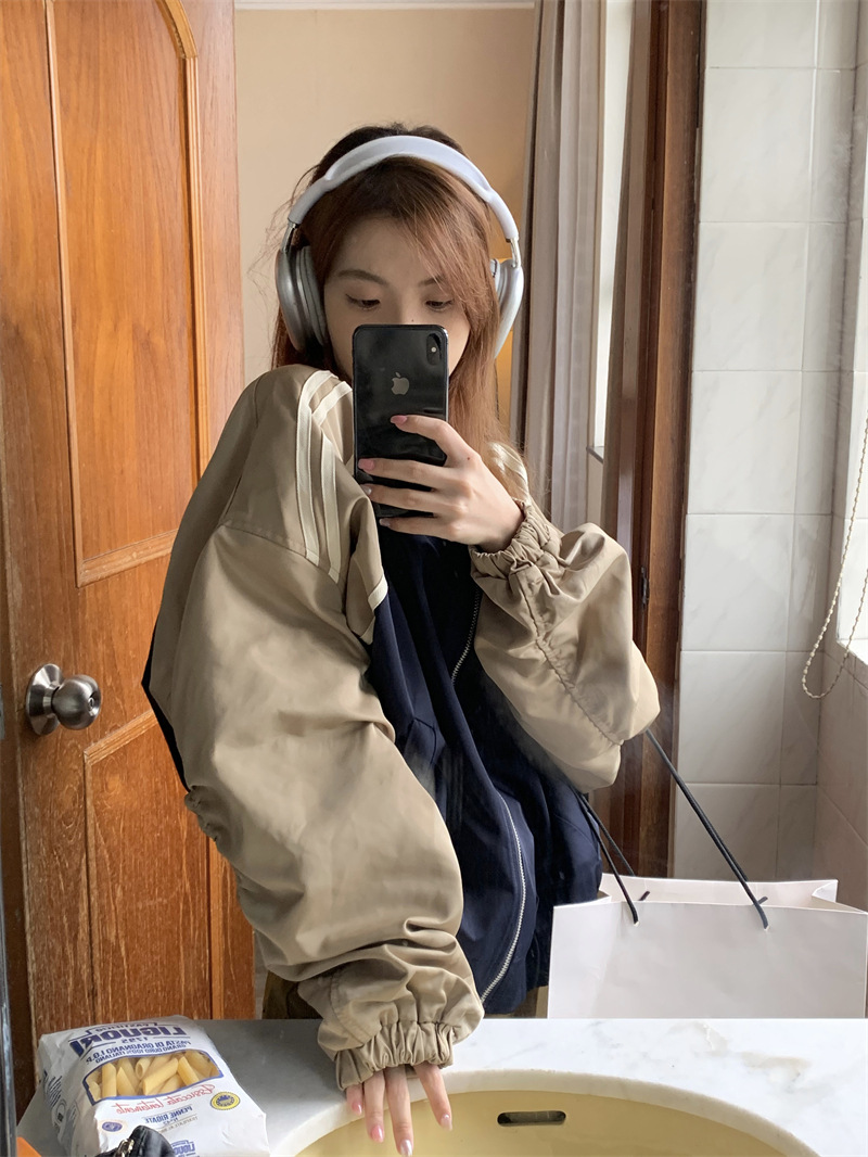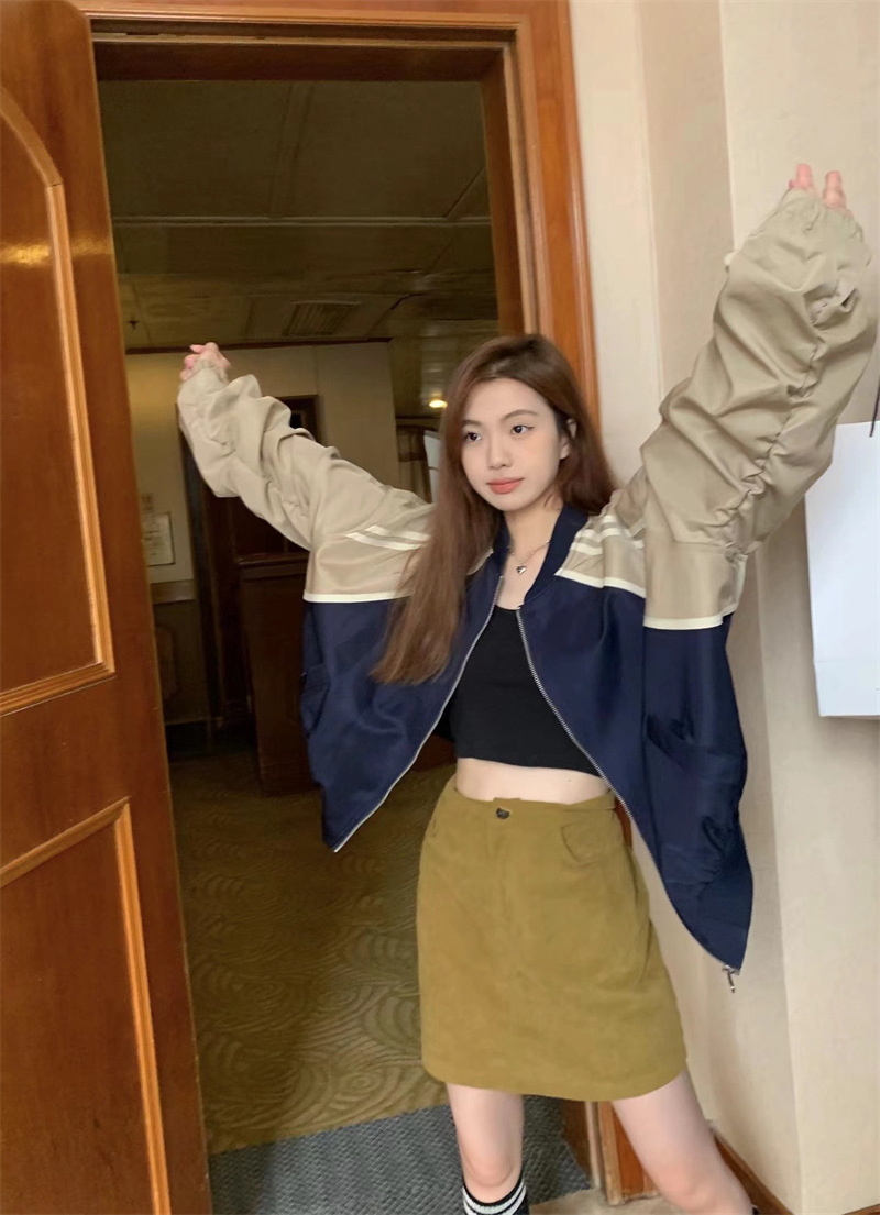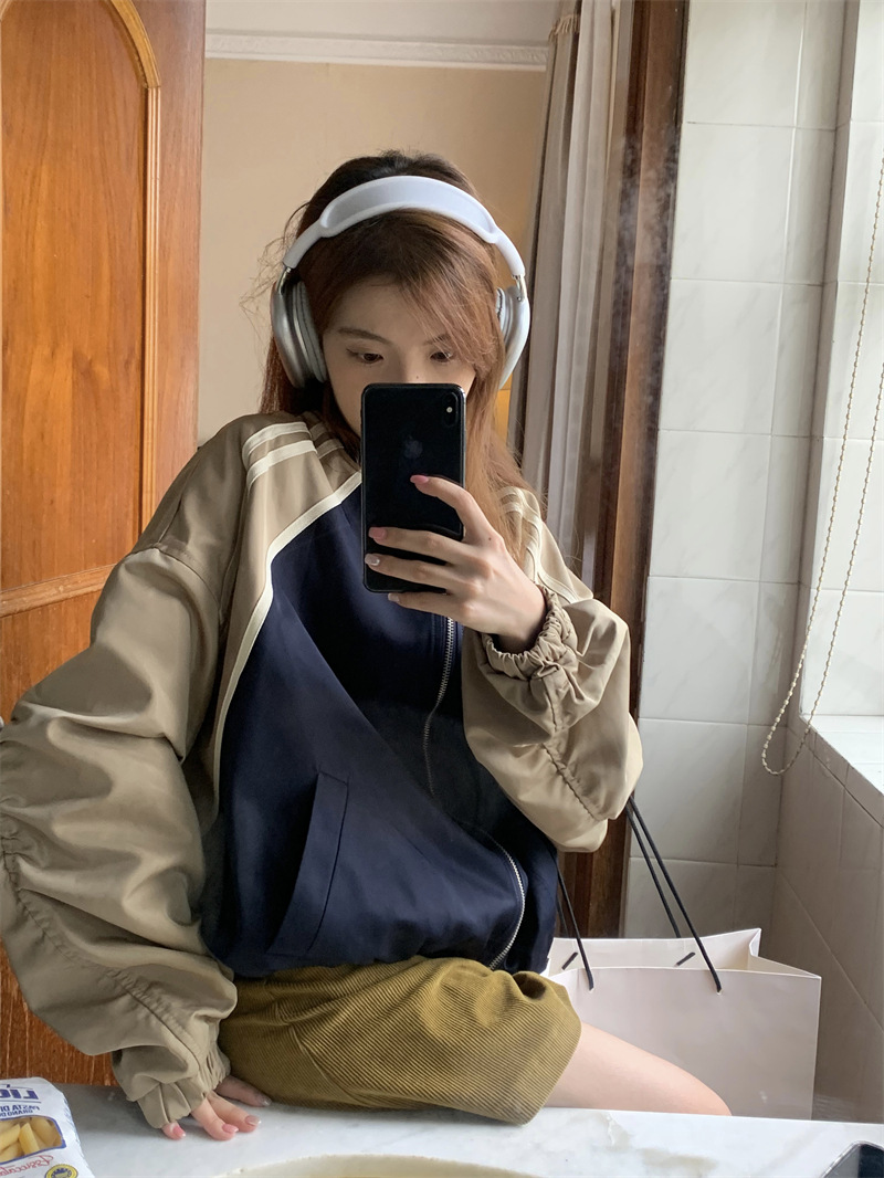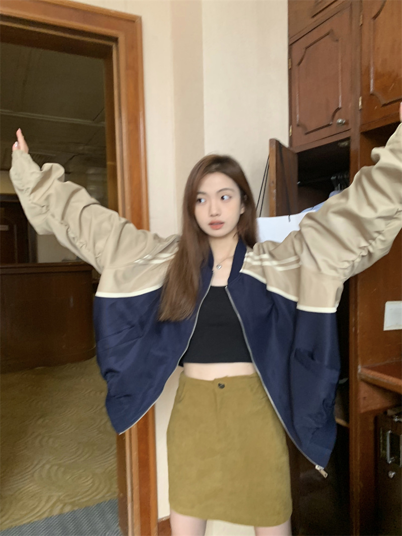 JMA-046 实拍 新款韩版宽松拼接撞色拉链开衫运动棒球服外套上衣