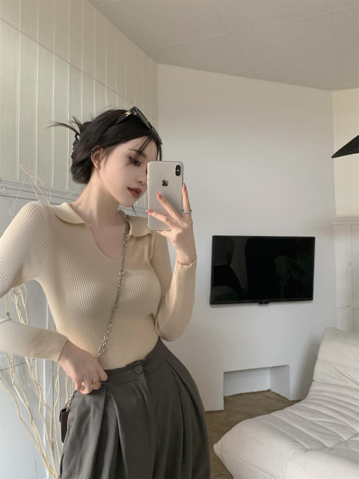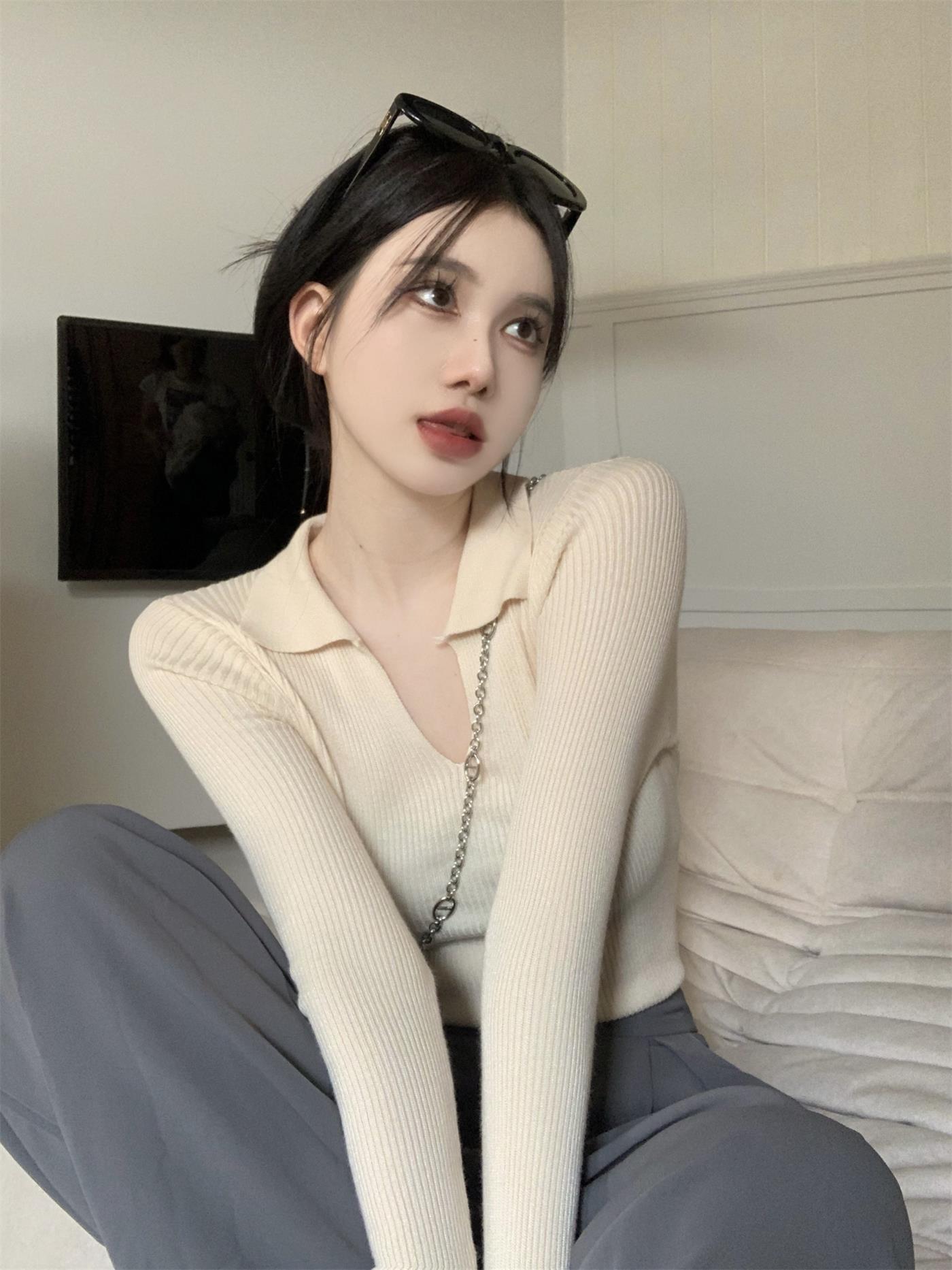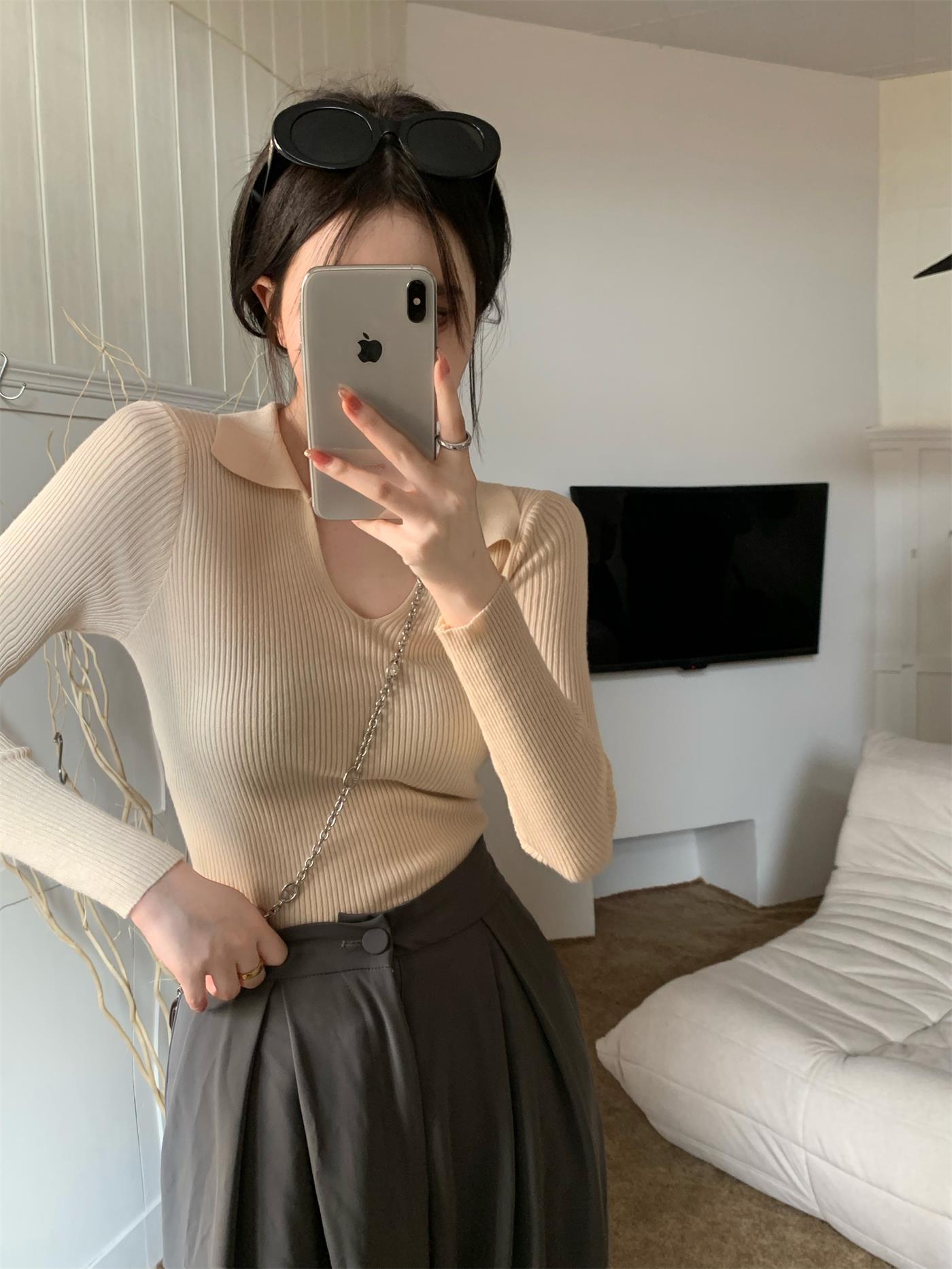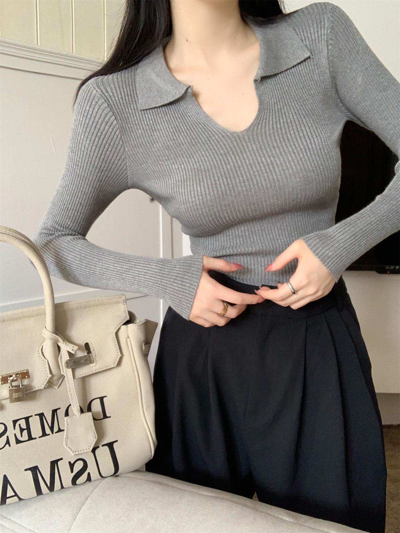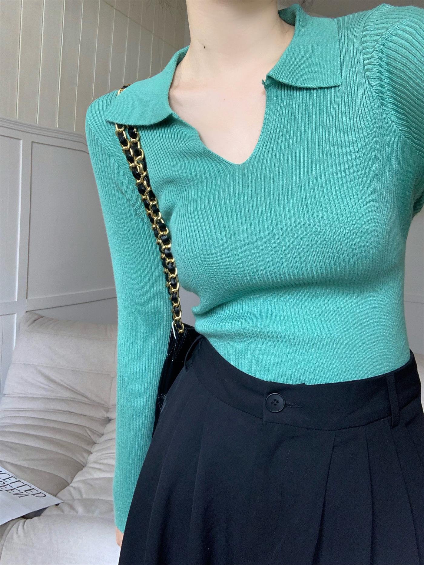 JMA-055 秋季新款韩系修身显瘦长袖辣妹V领修身短款打底针织衫上衣女