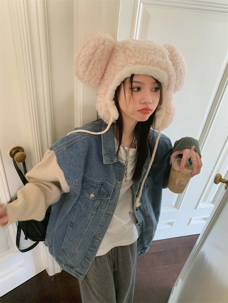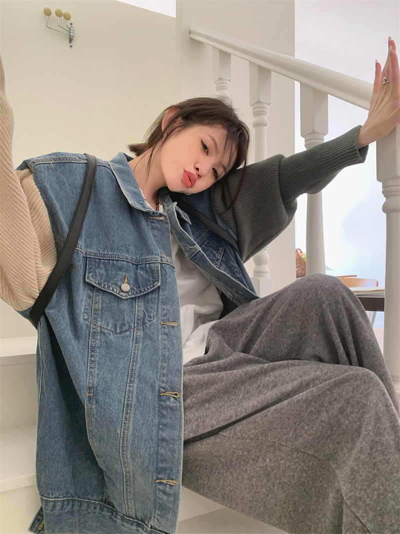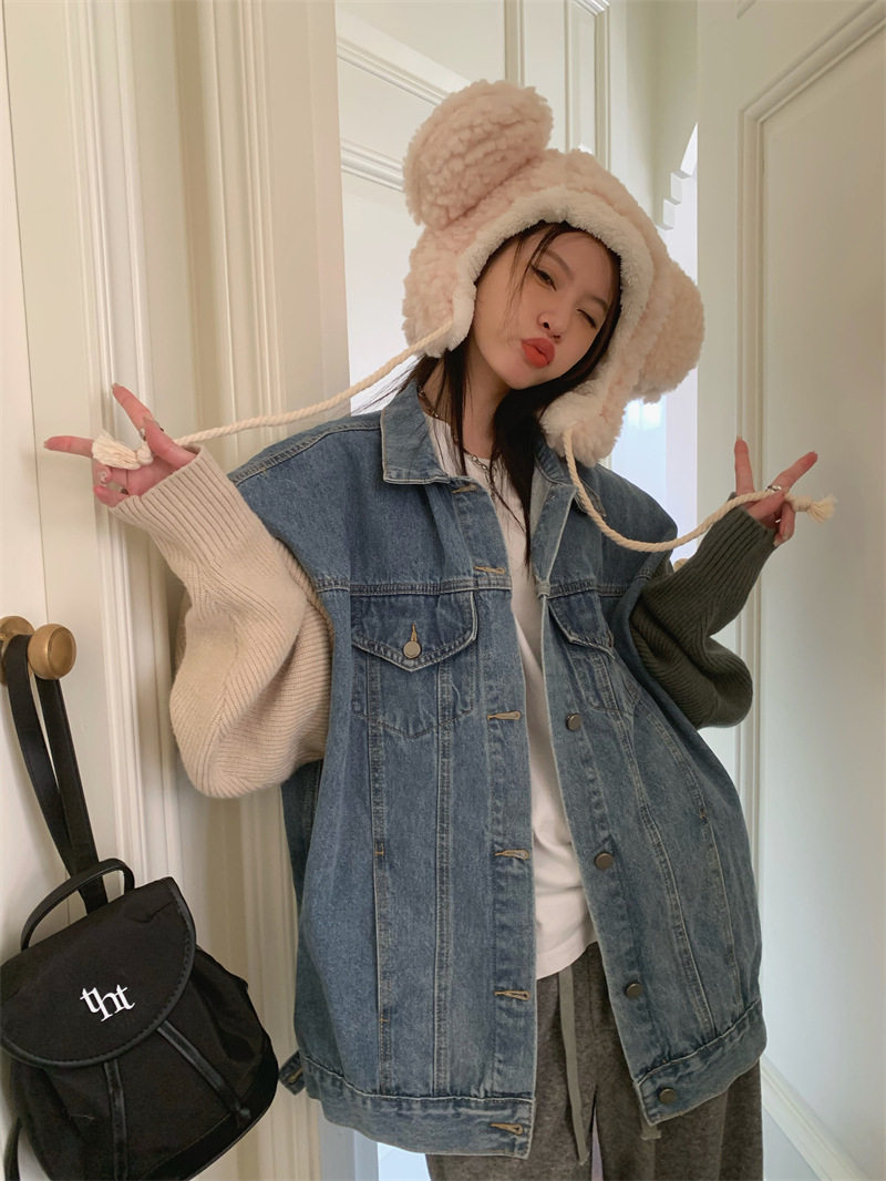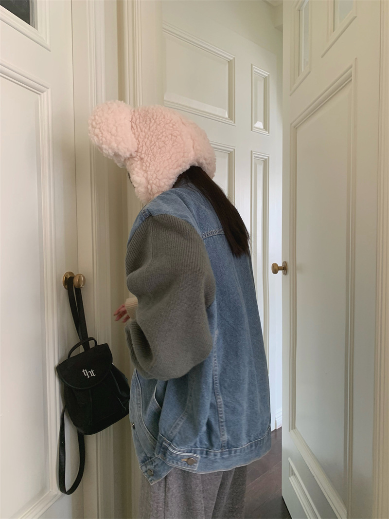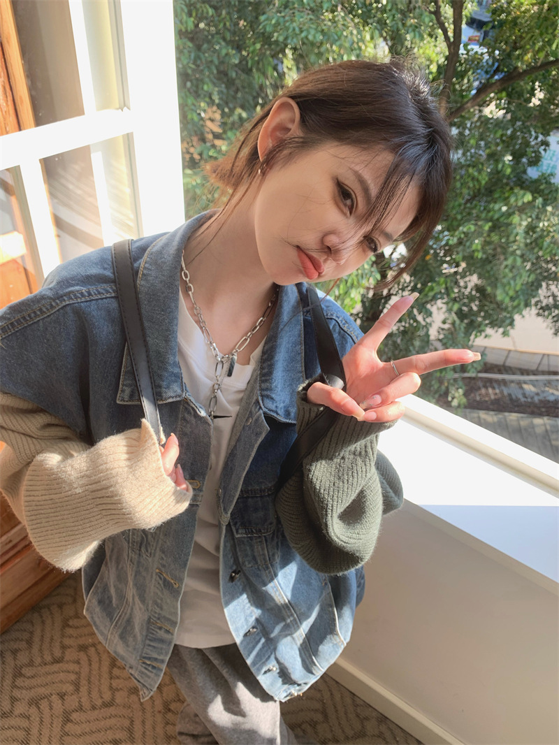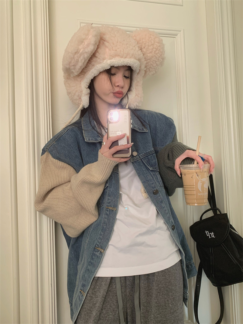 JMA-056 实拍 秋冬ins韩版洗水重工高级感撞色针织拼接牛仔外套上衣女