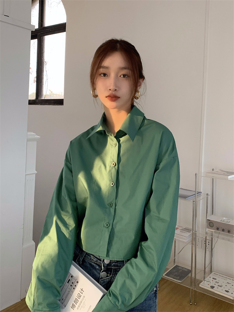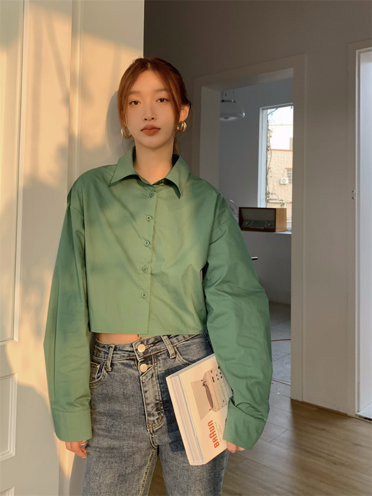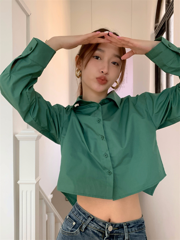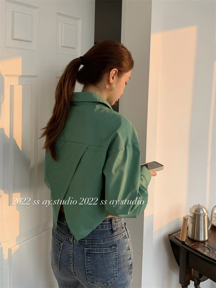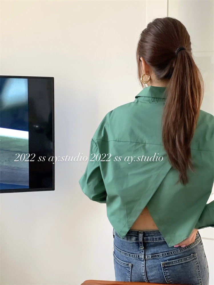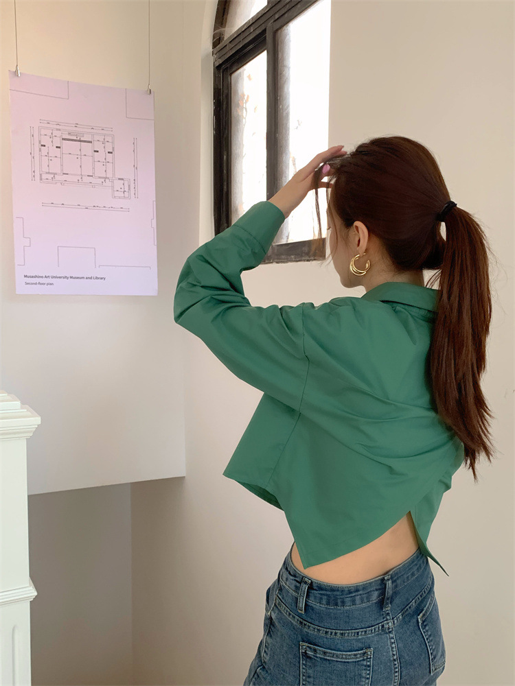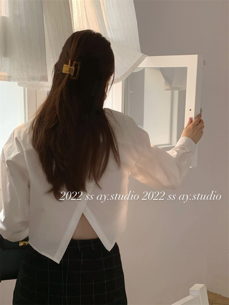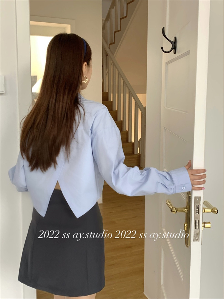 JMA-052 实拍 春季新款韩版后背开叉短款长袖衬衫女小个子防晒开衫潮