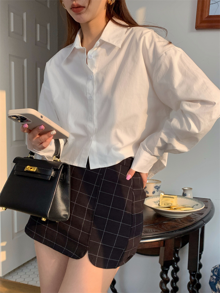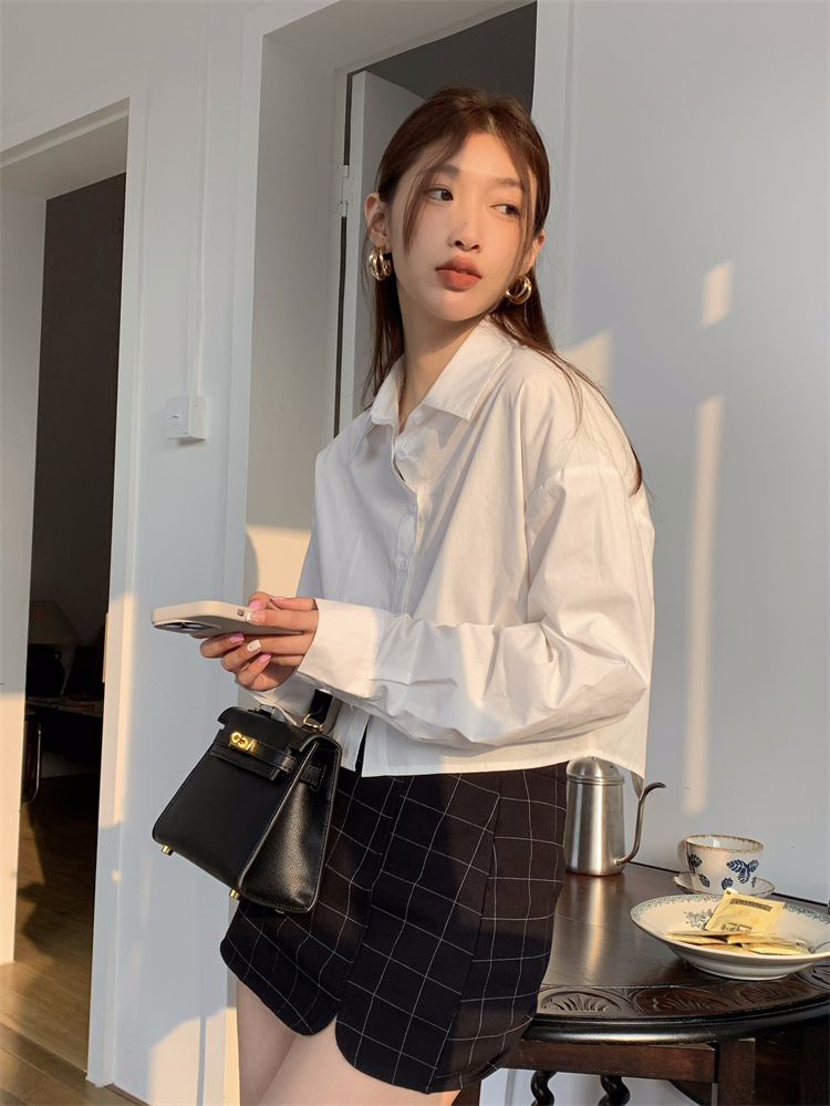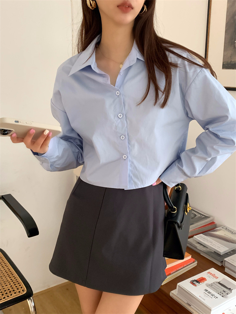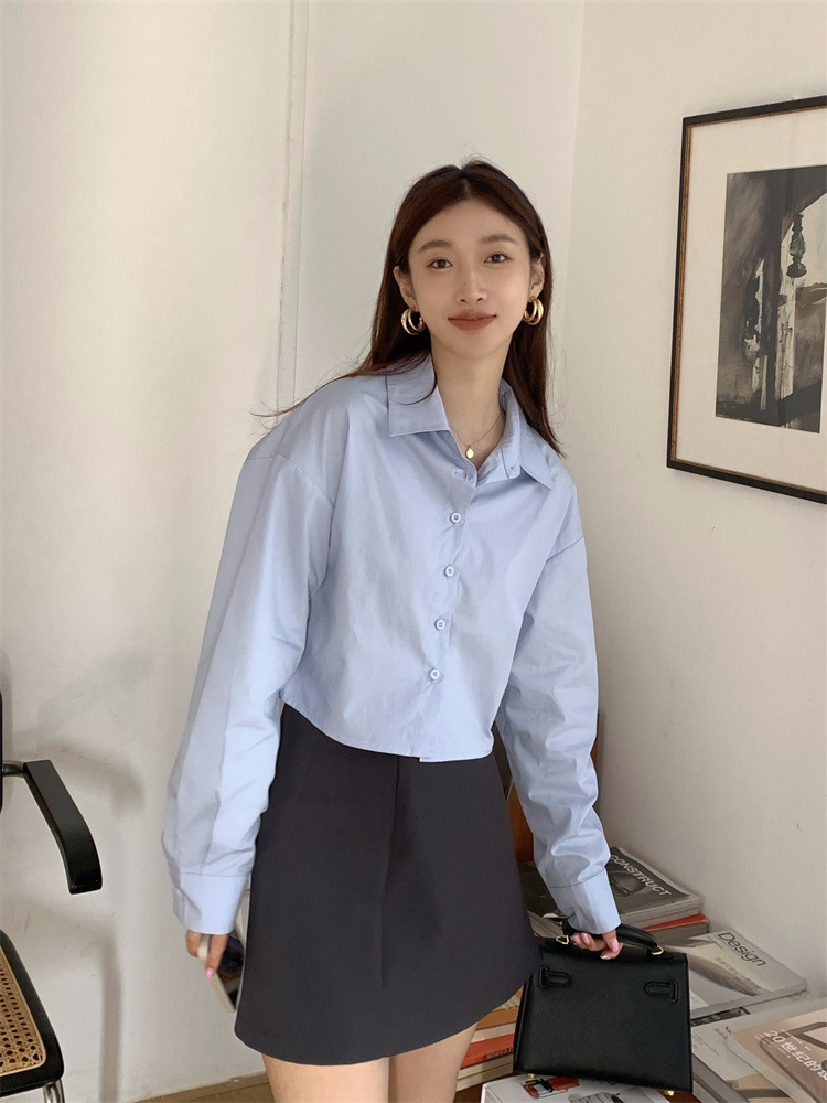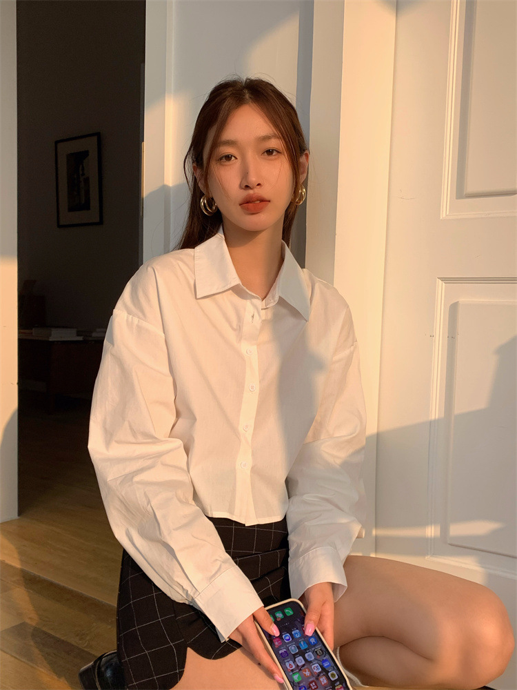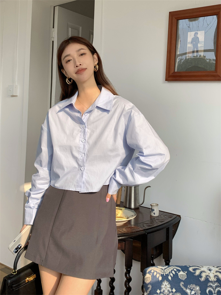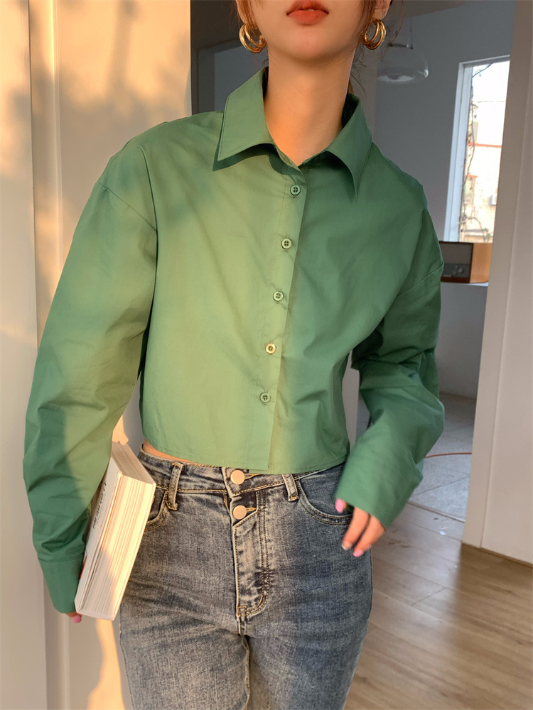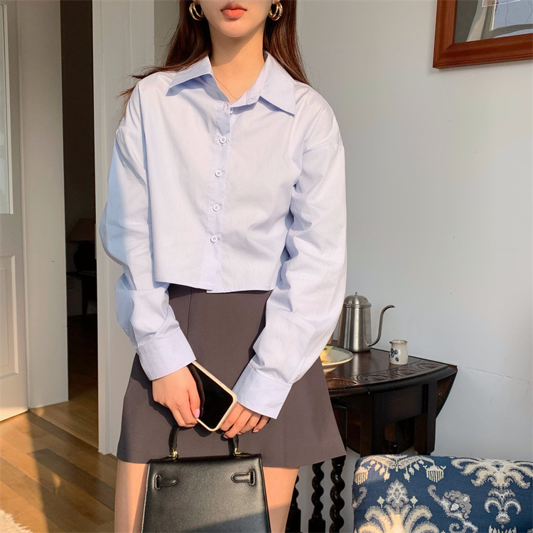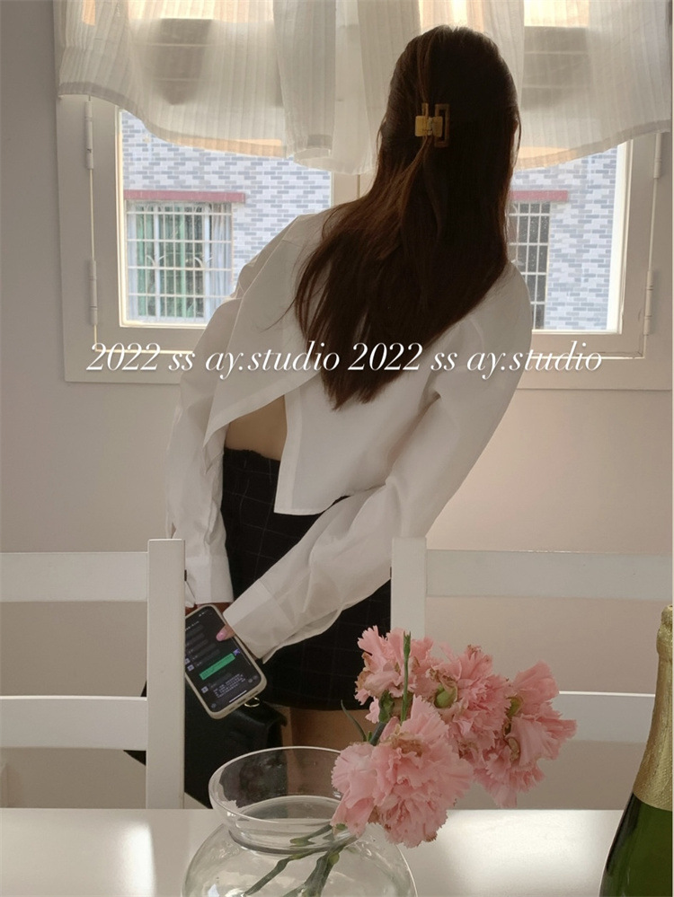 JMA-052 实拍 春季新款韩版后背开叉短款长袖衬衫女小个子防晒开衫潮