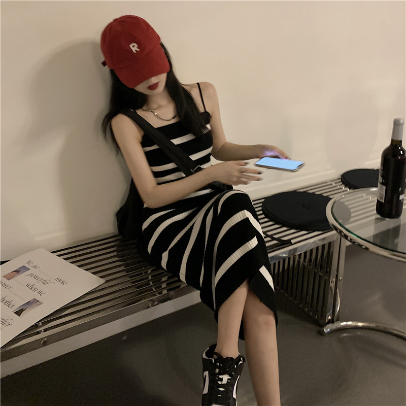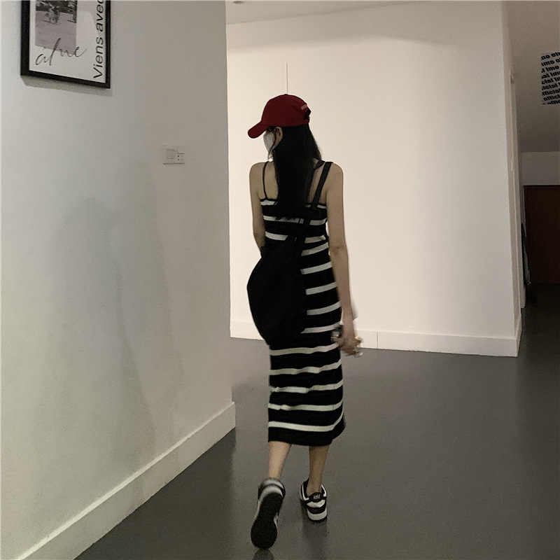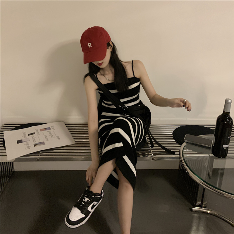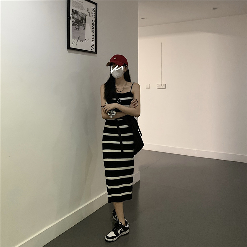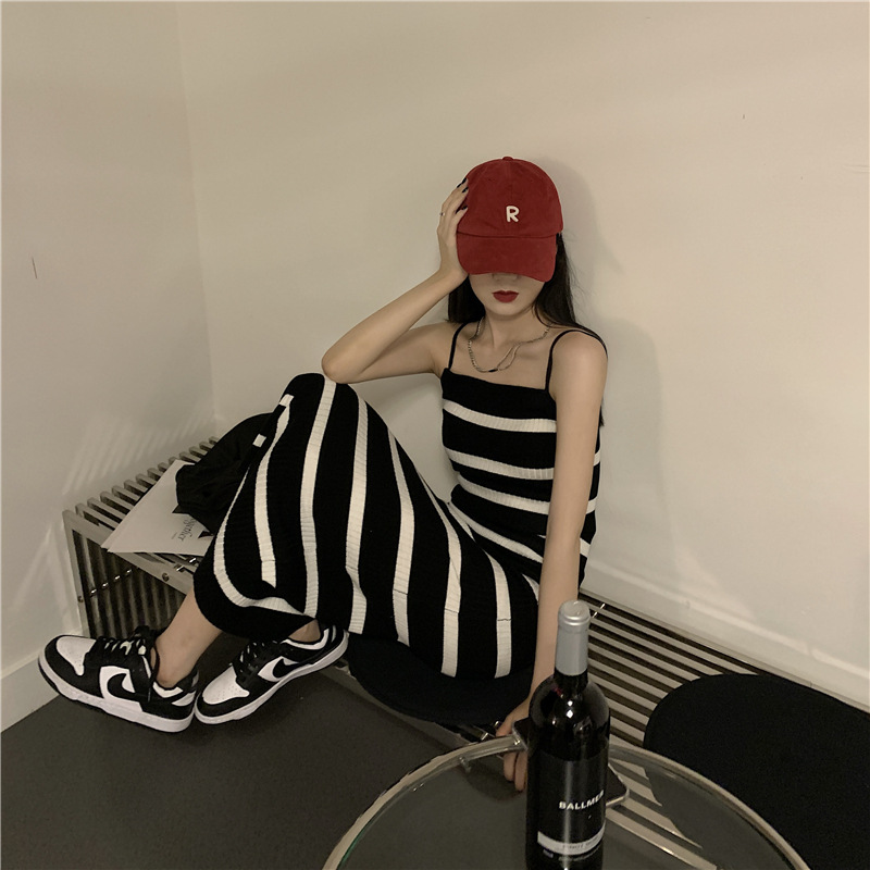 JMA-053 设计感小众气质条纹针织吊带裙女 夏季新款港味复古chic裙子潮