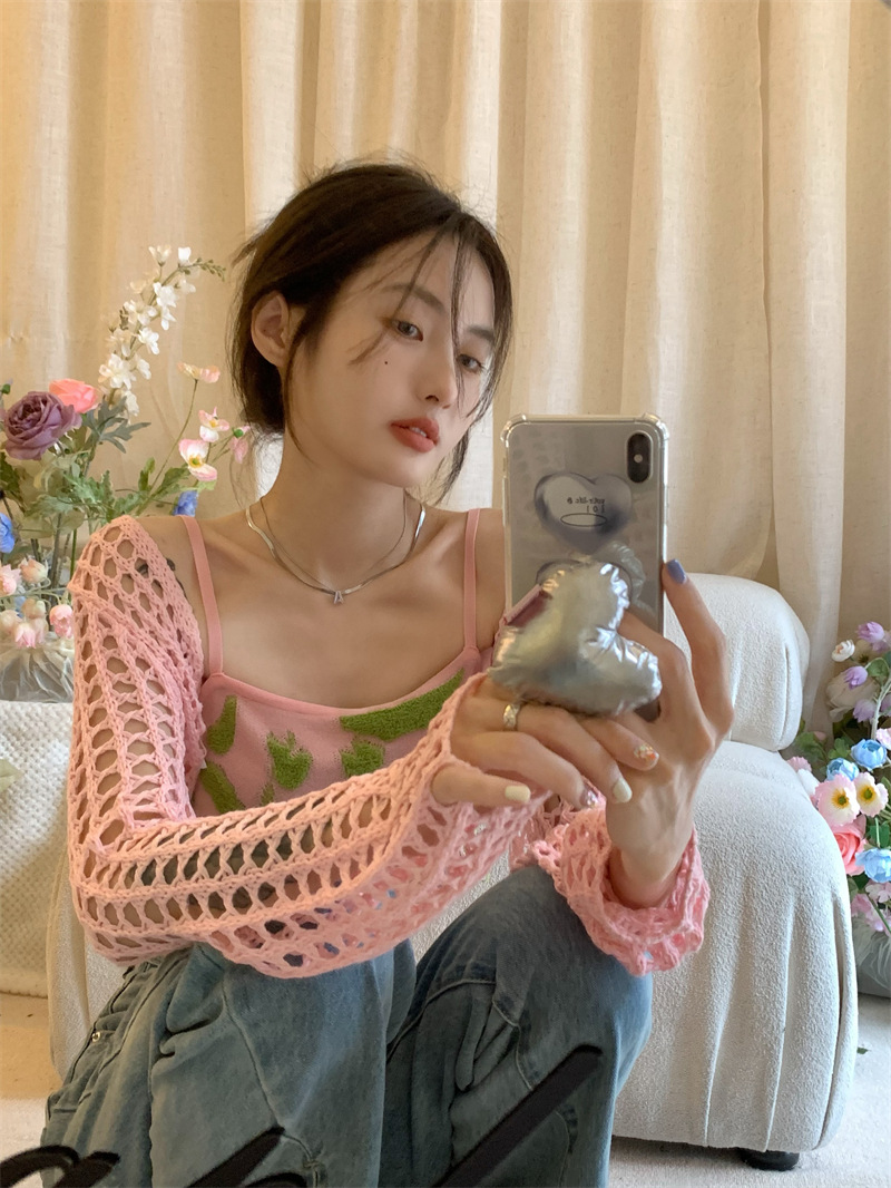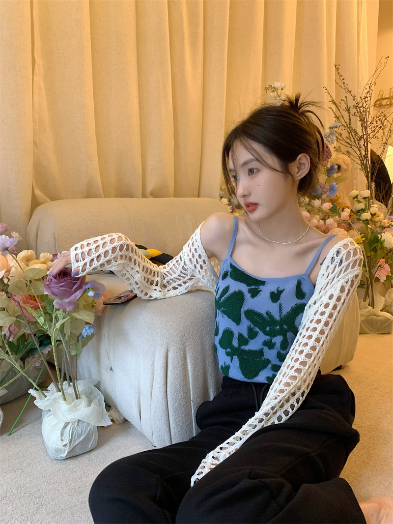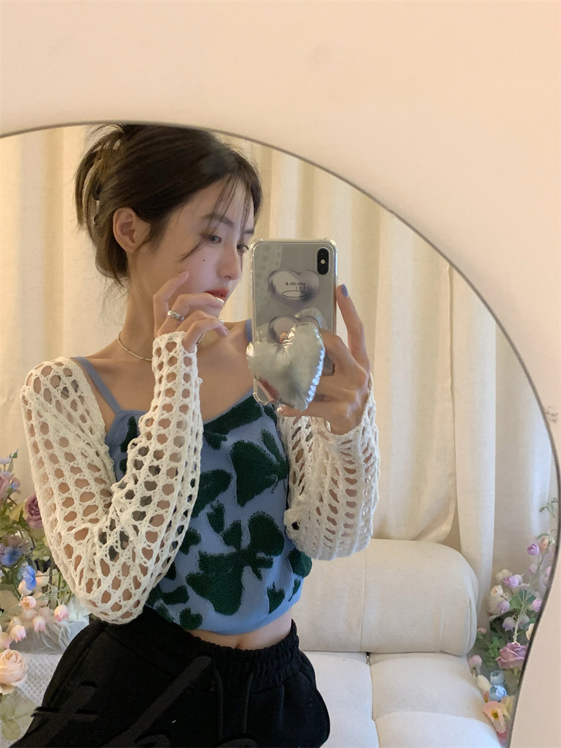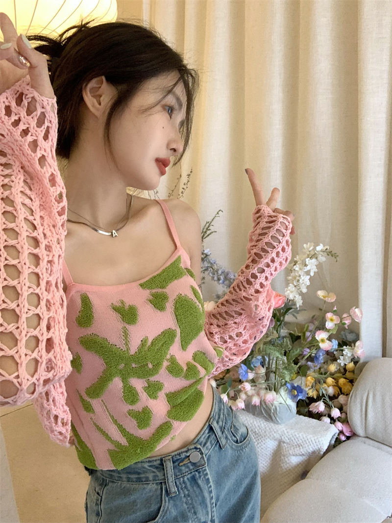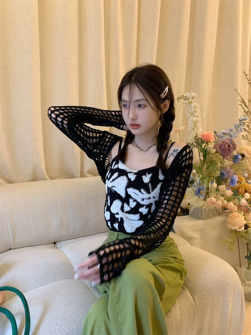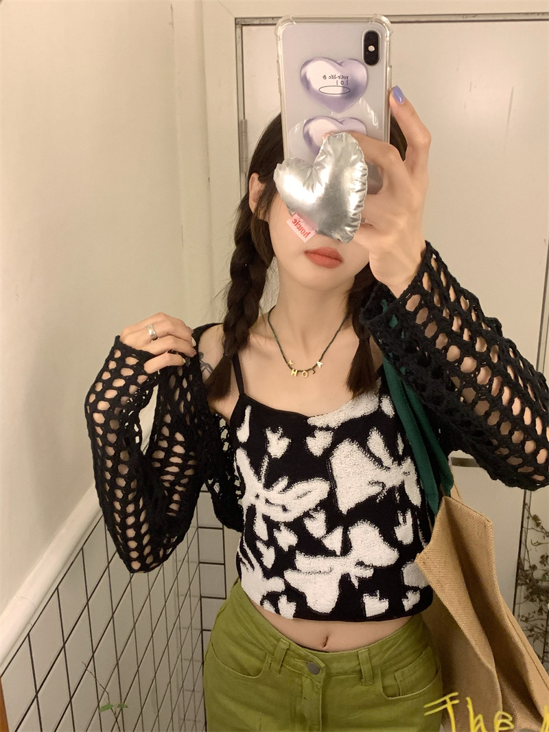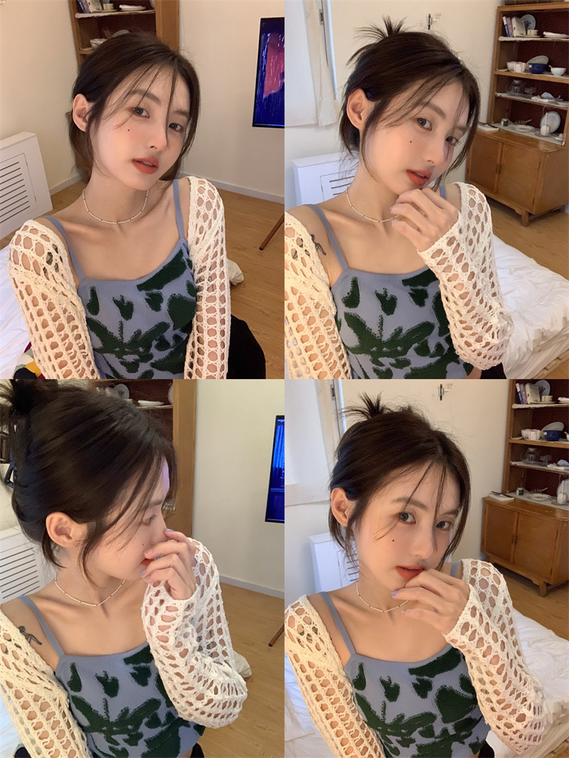 JMA-059 实拍 夏季新款韩版百搭设计感镂空针织防晒开衫+撞色提花吊带