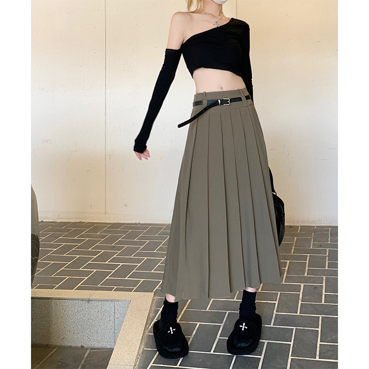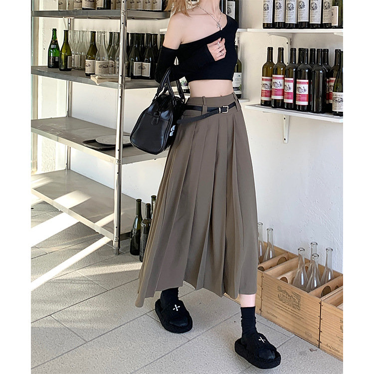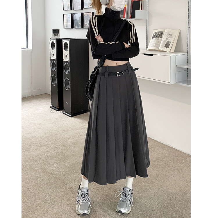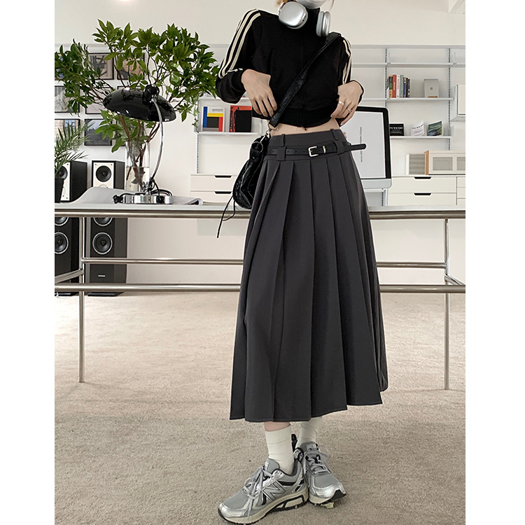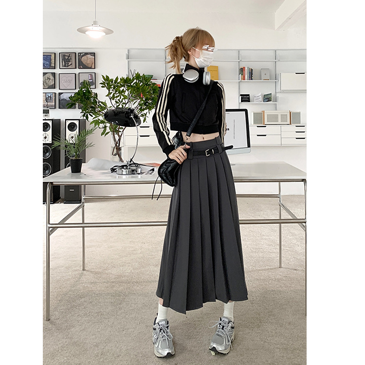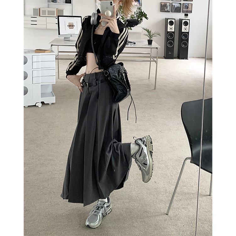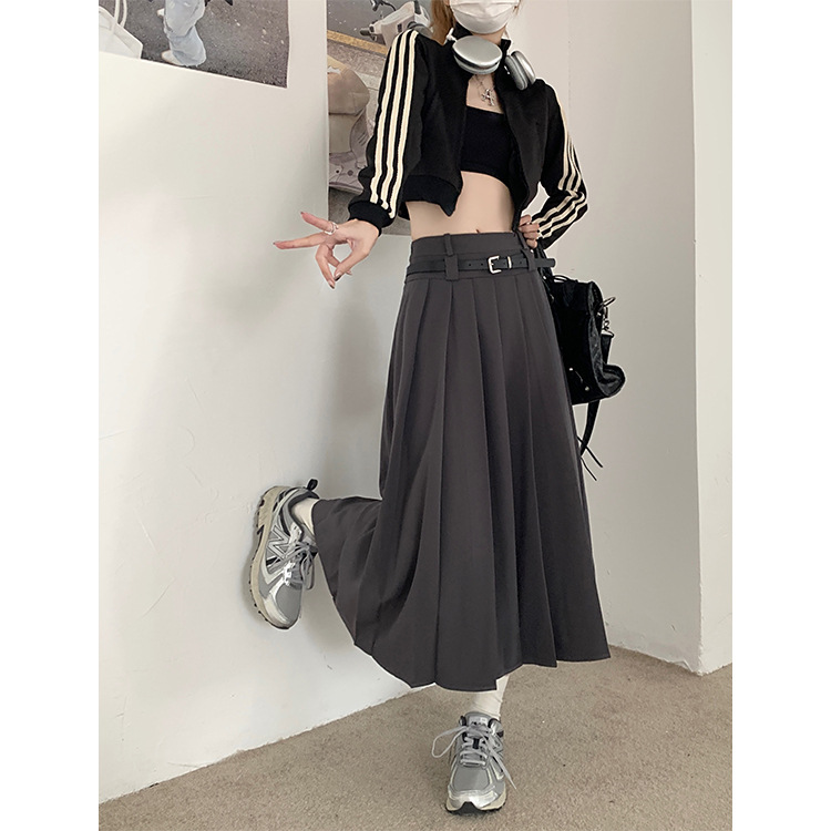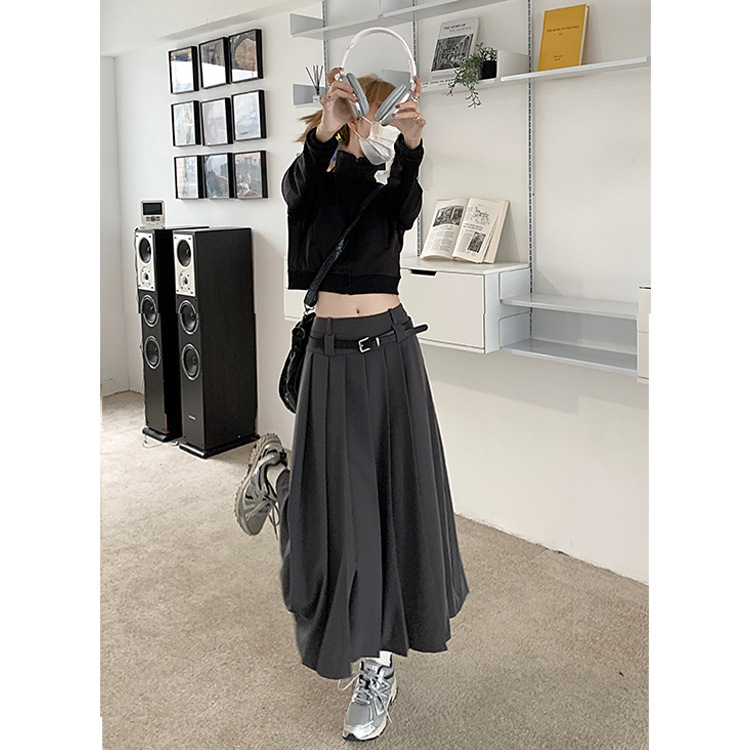 JMA-068 实拍 高级感灰色西装百褶裙女春季韩系高腰A字裙小个子中长半身裙