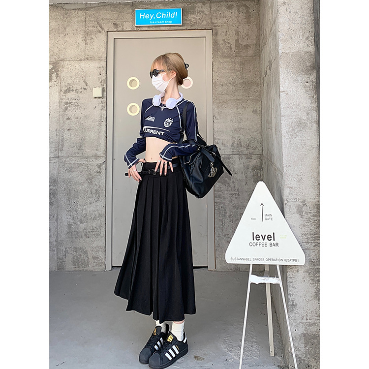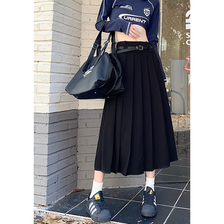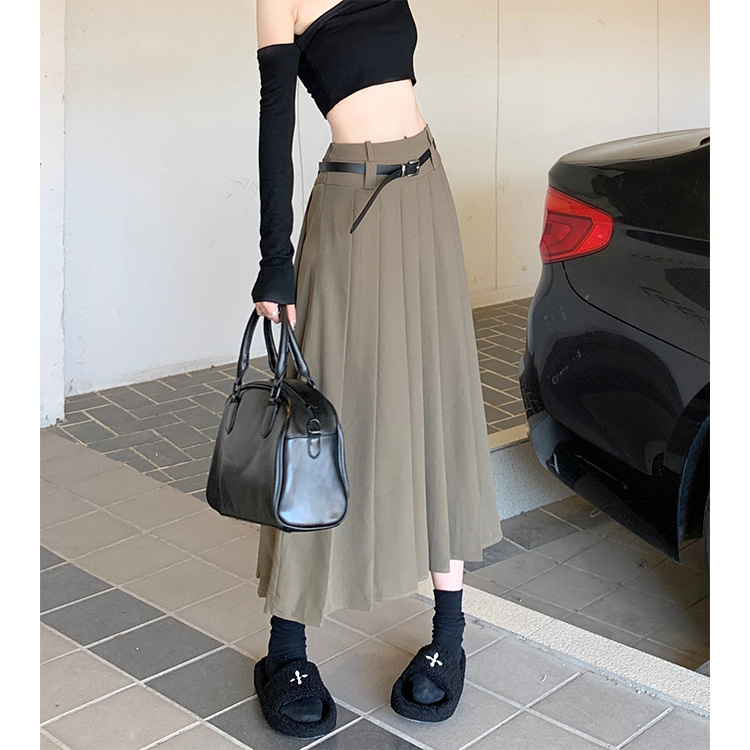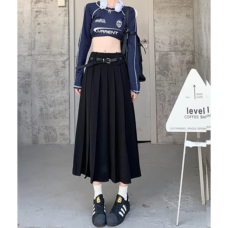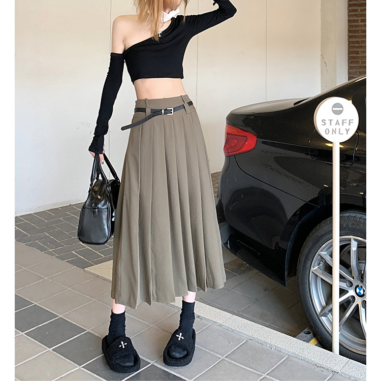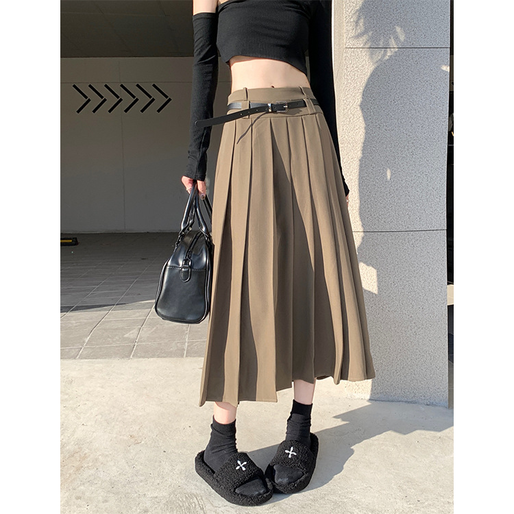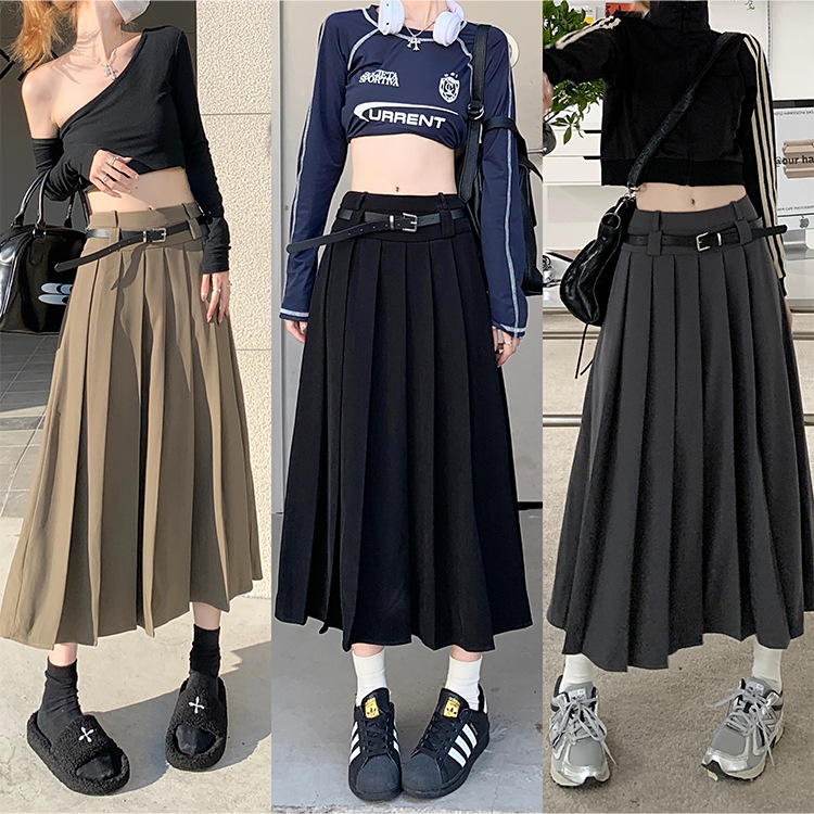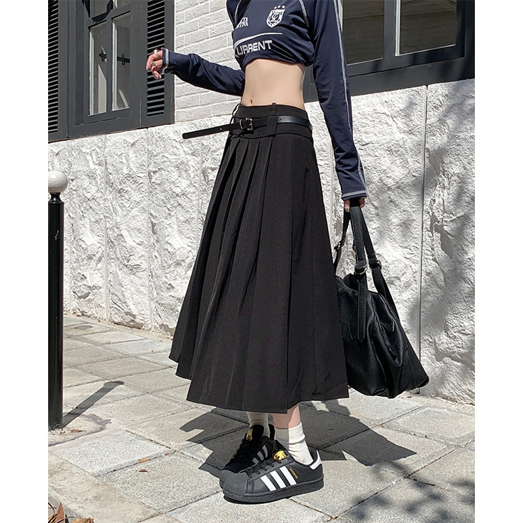 JMA-068 实拍 高级感灰色西装百褶裙女春季韩系高腰A字裙小个子中长半身裙