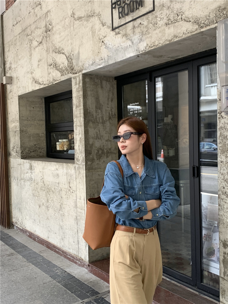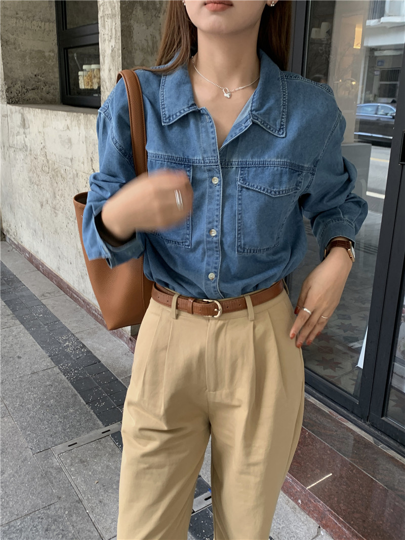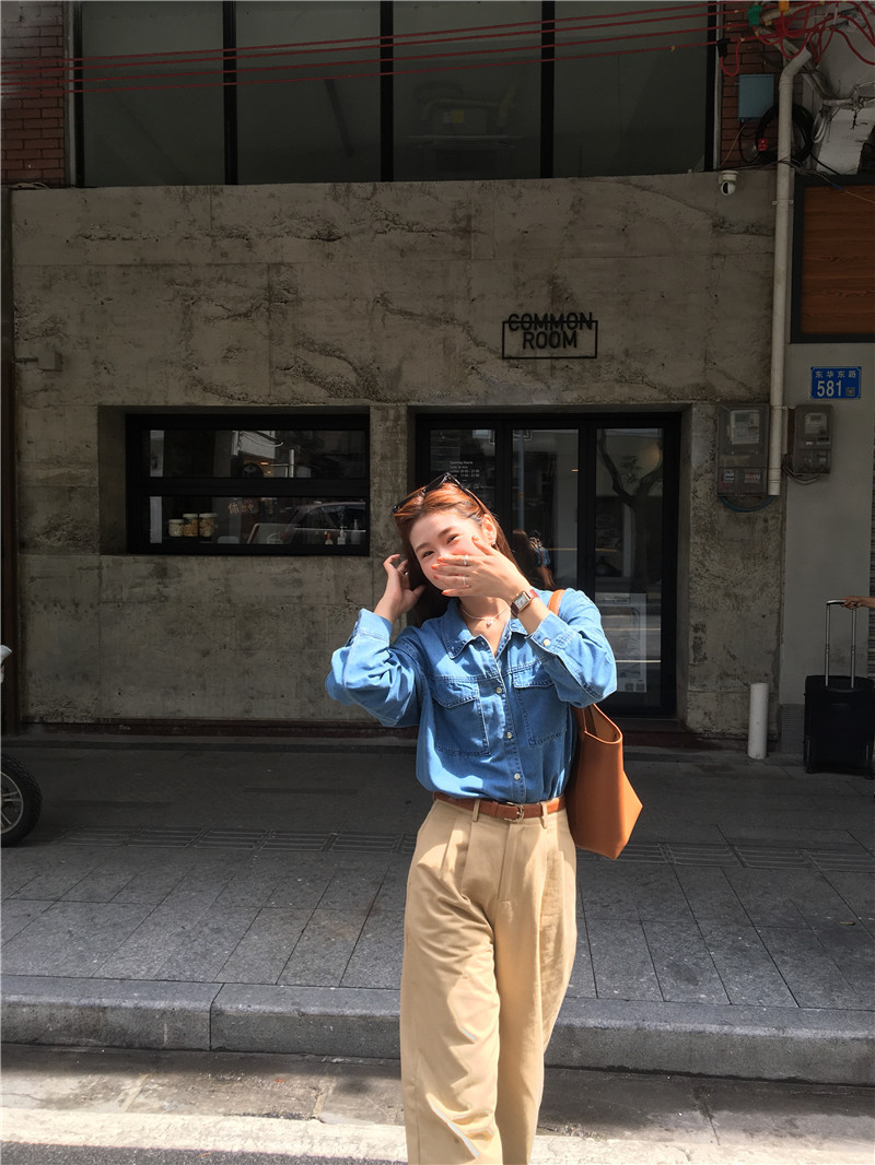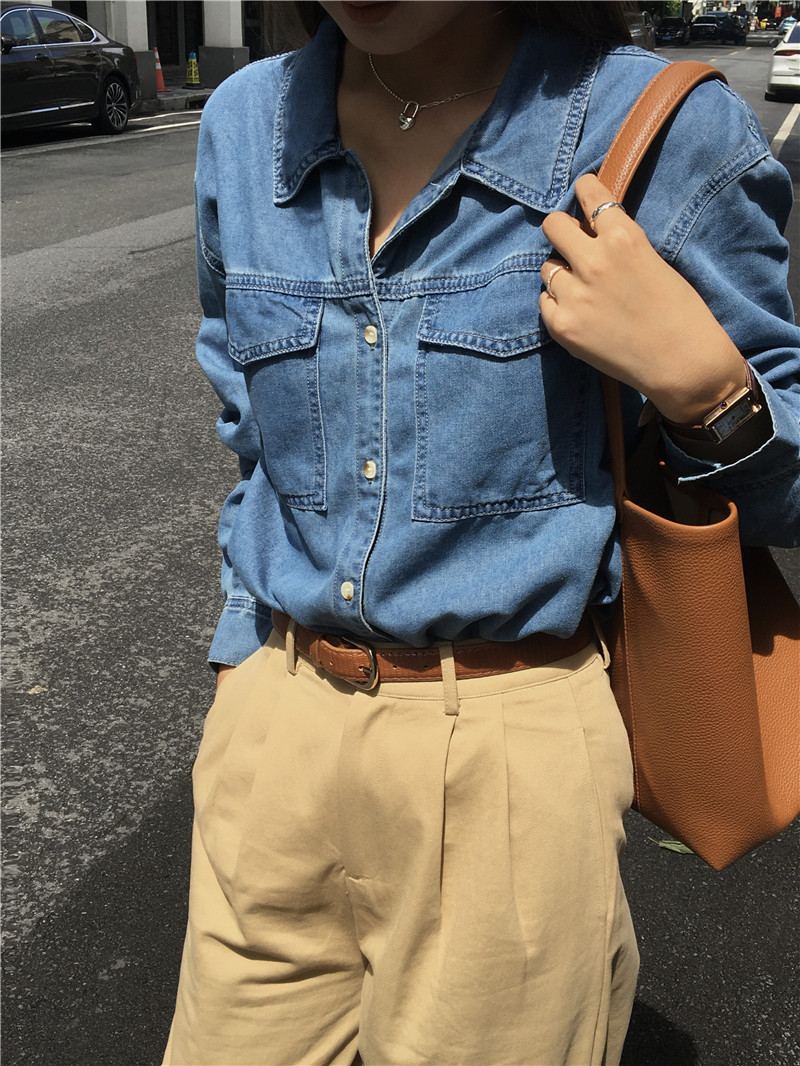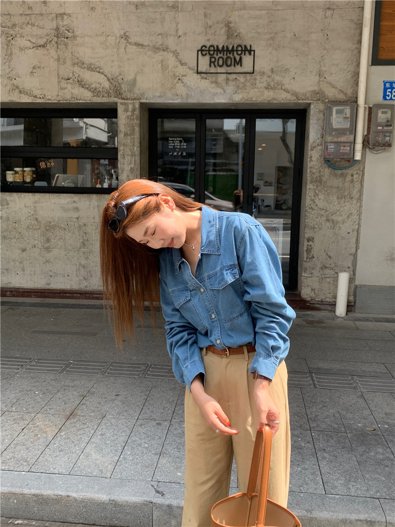 JMA-072 秋季新款韩版通勤简约百搭大口袋洗水牛仔衬衫女衬衣潮