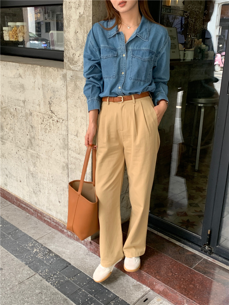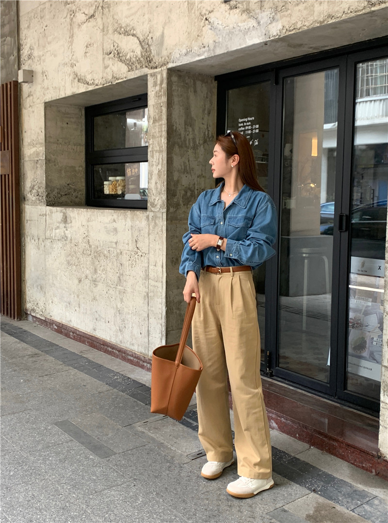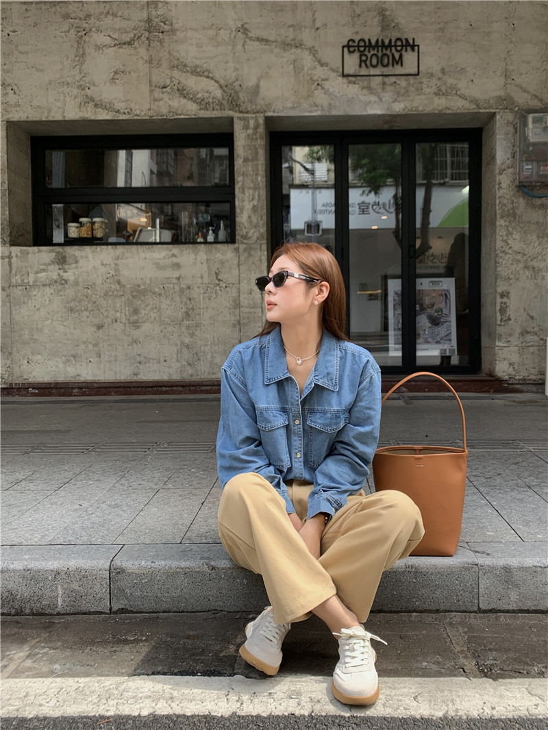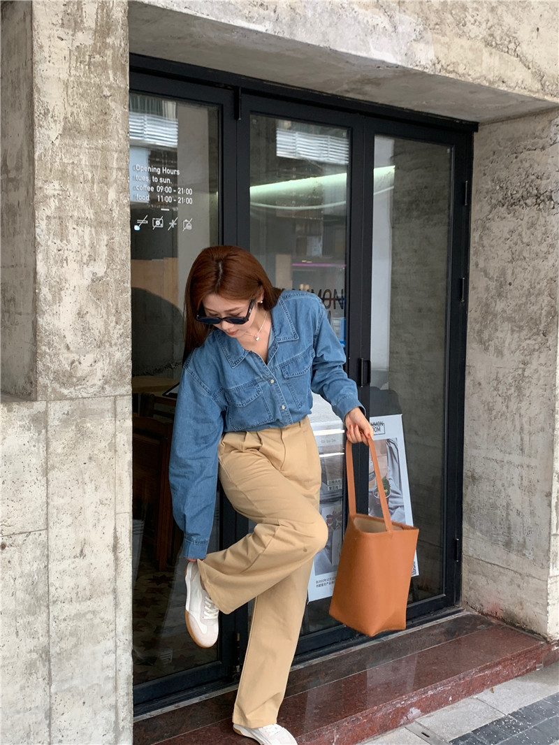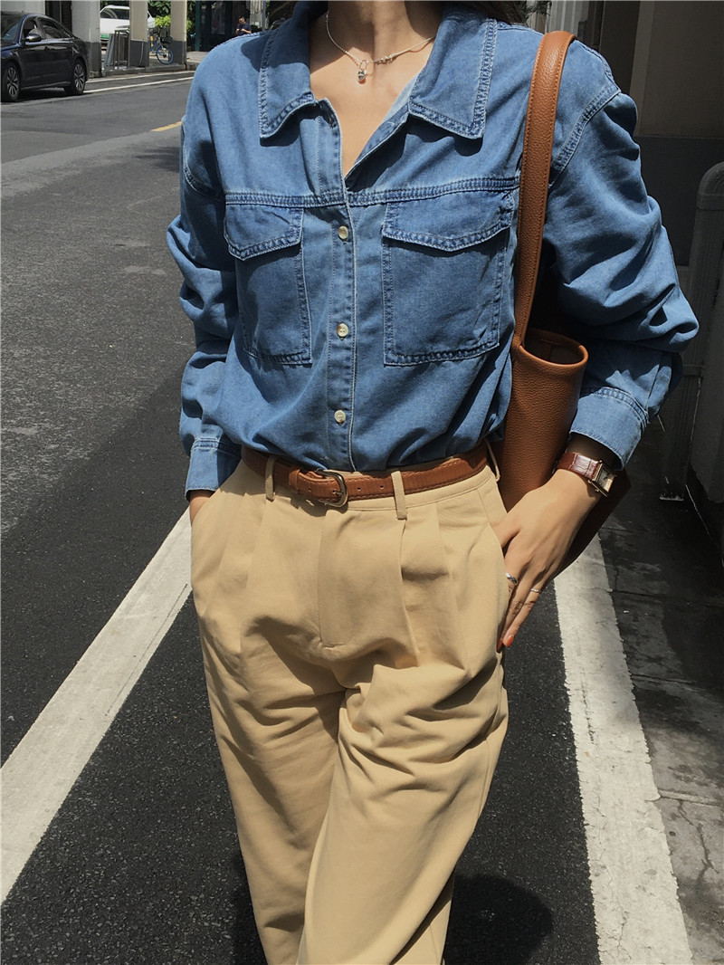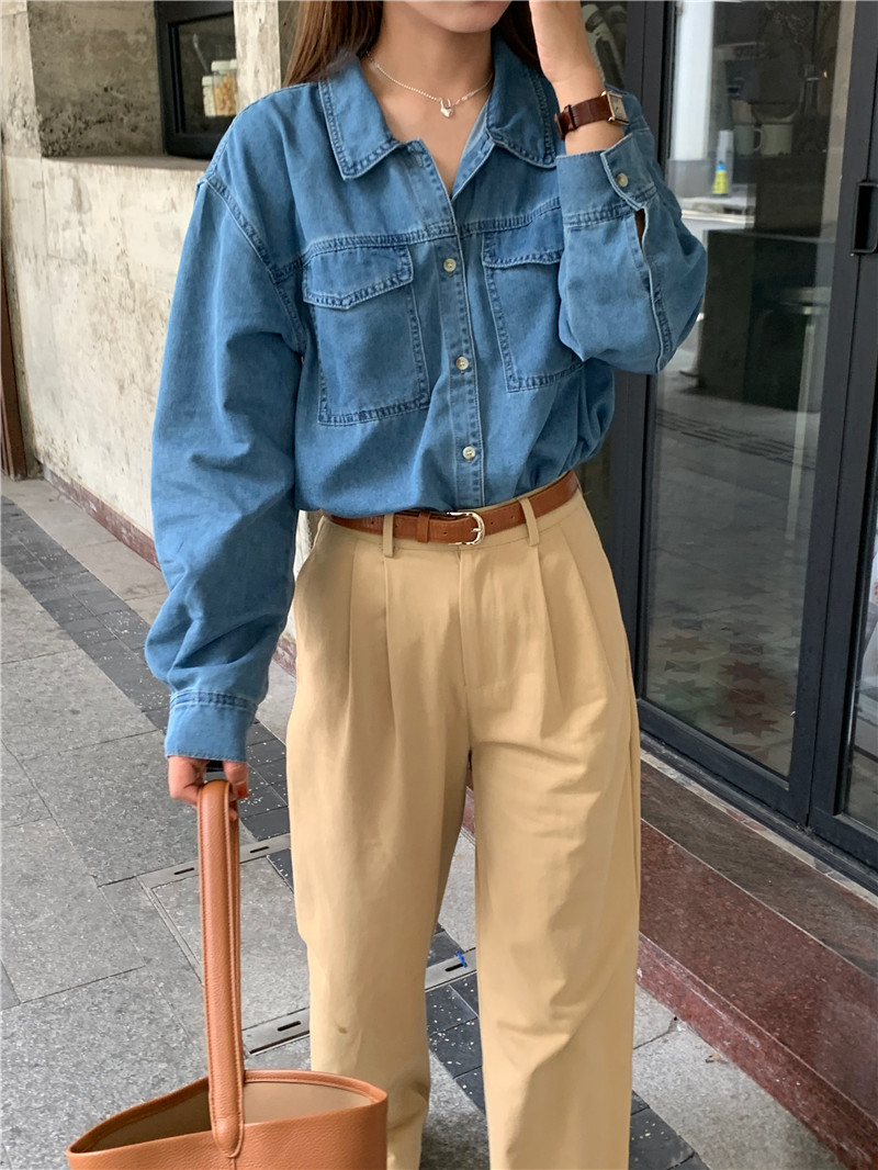 JMA-072 秋季新款韩版通勤简约百搭大口袋洗水牛仔衬衫女衬衣潮