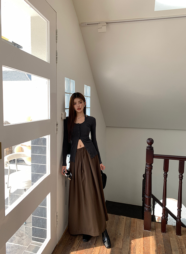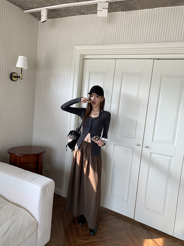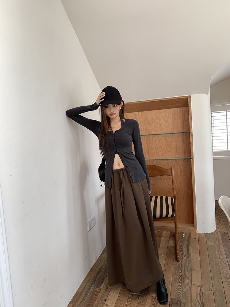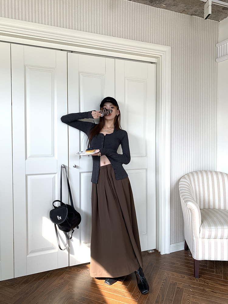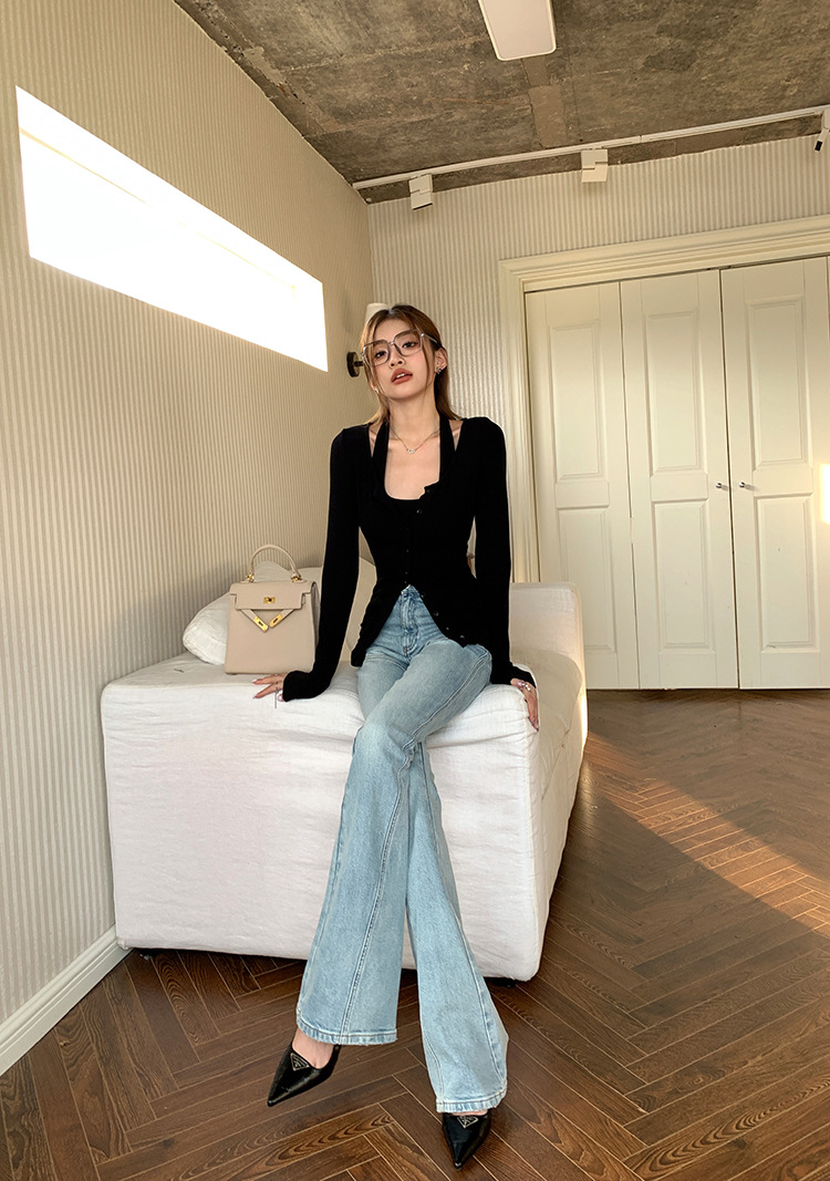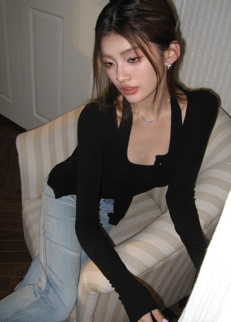 JMA-083 实拍 2023秋装新款灰黑显瘦修身长袖T恤女假两件打底挂脖辣妹上衣