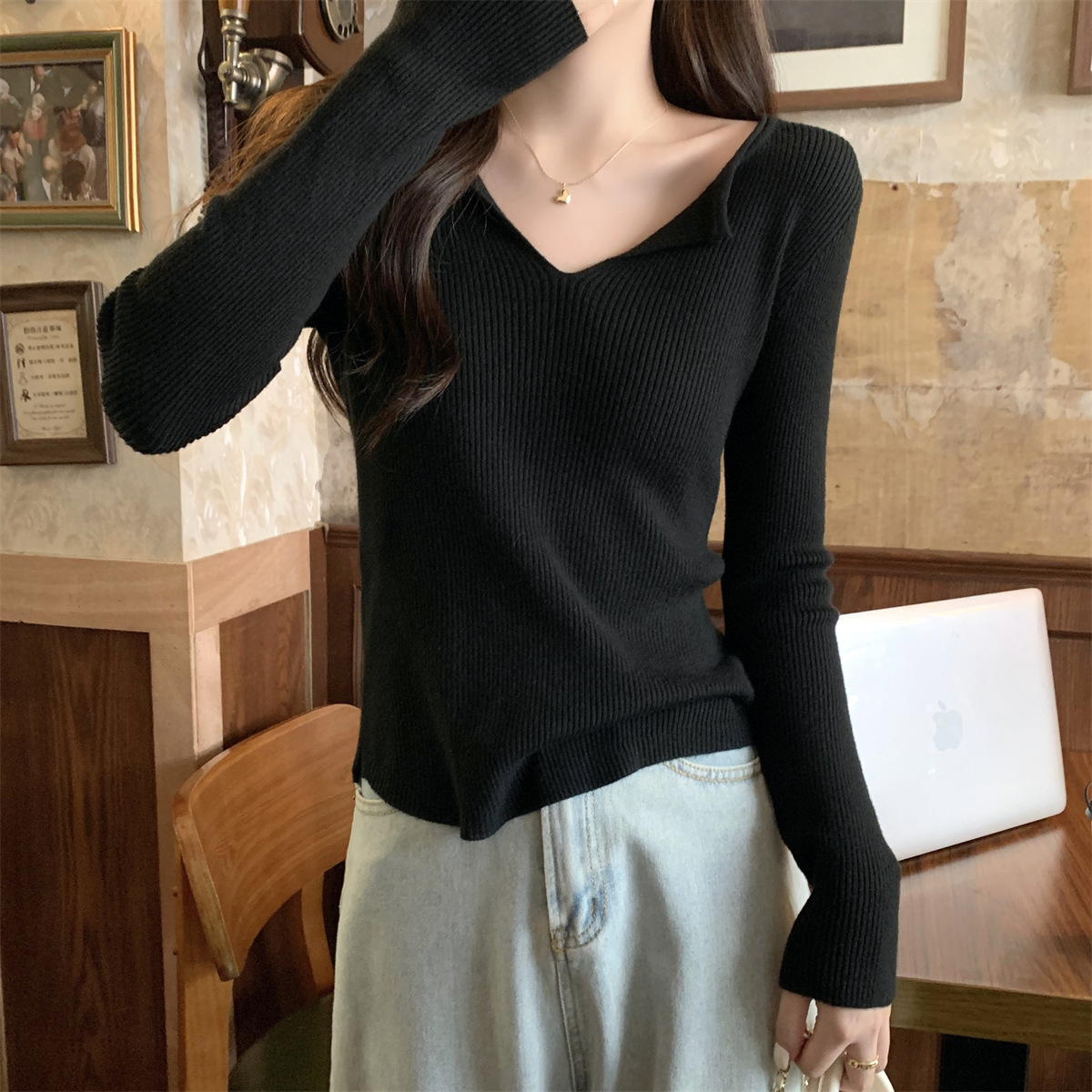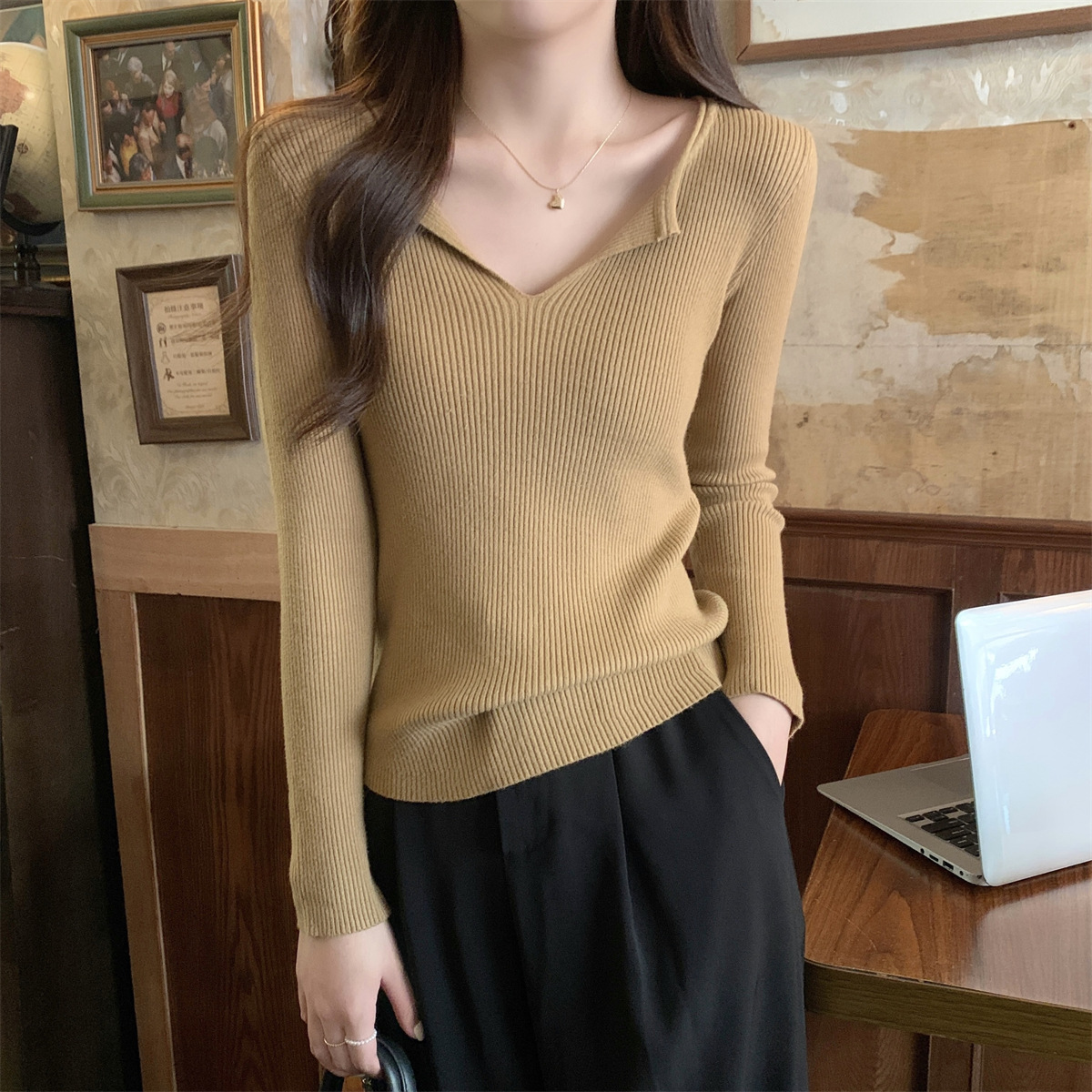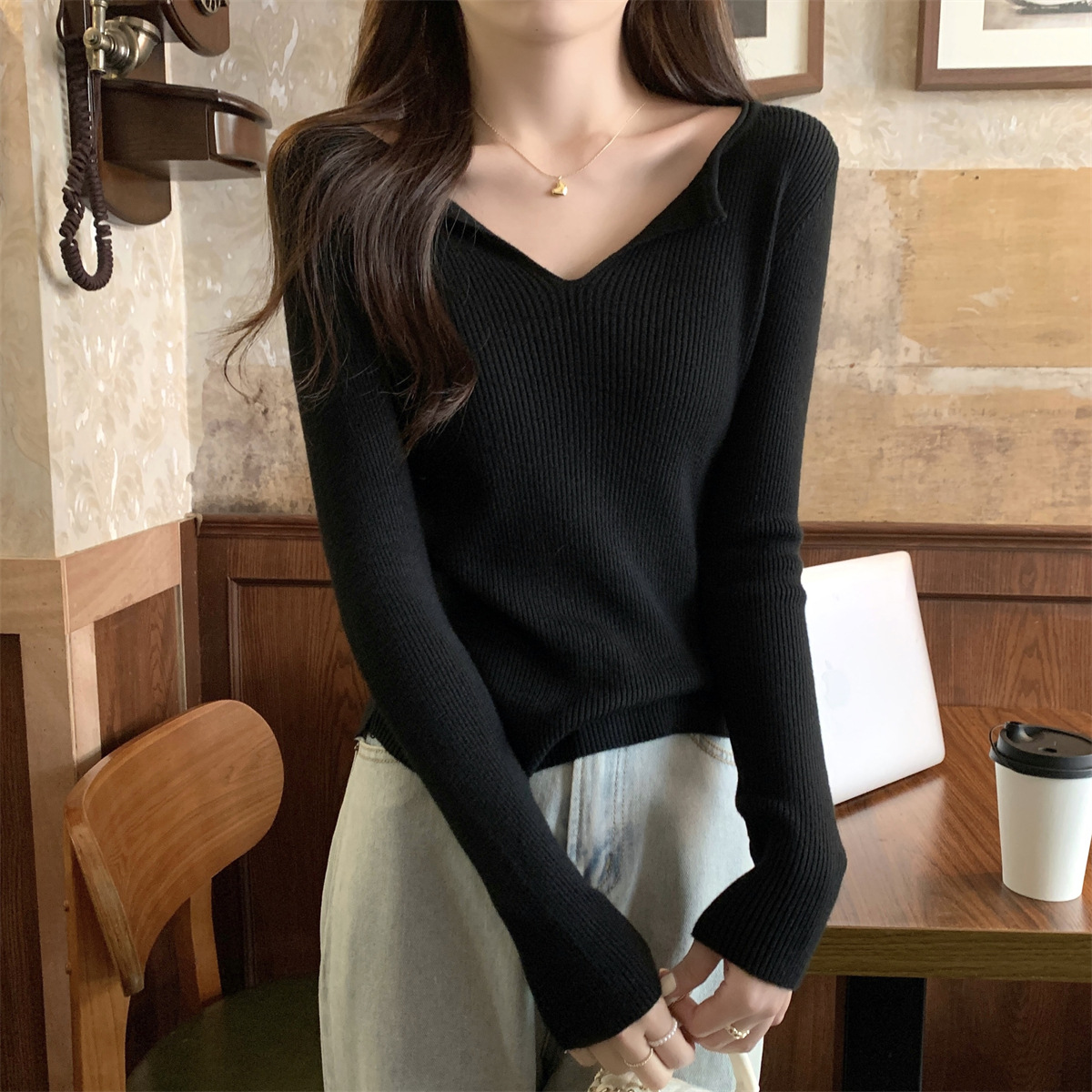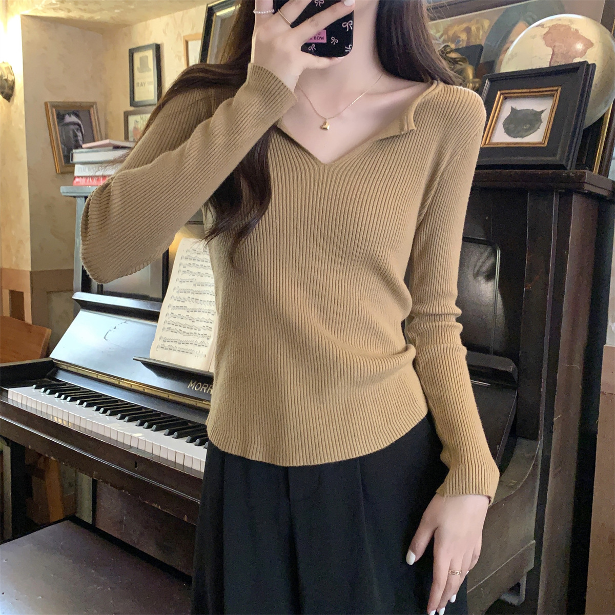 JMA-107 实拍 2023秋冬韩版修身纯色半开领气质设计感内搭针织衫毛衣上衣