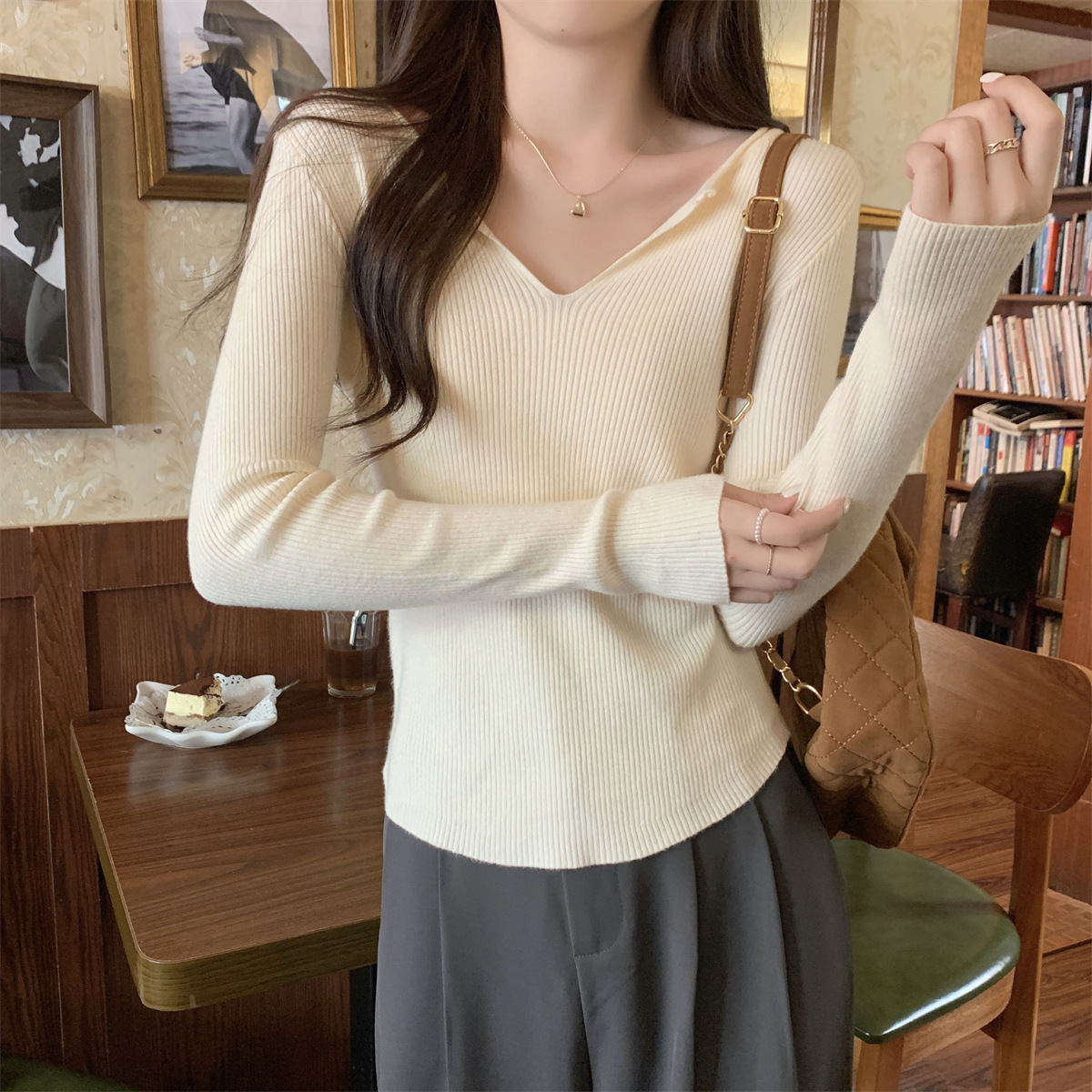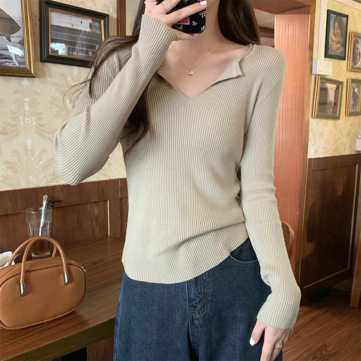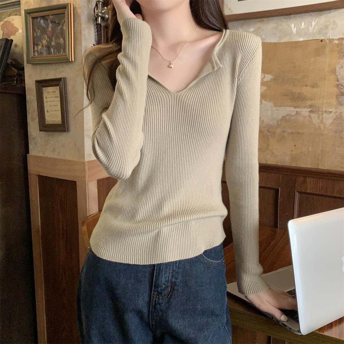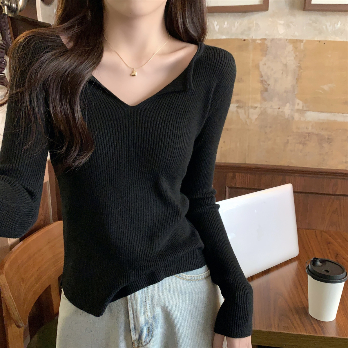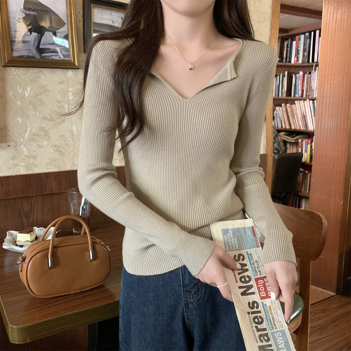 JMA-107 实拍 2023秋冬韩版修身纯色半开领气质设计感内搭针织衫毛衣上衣