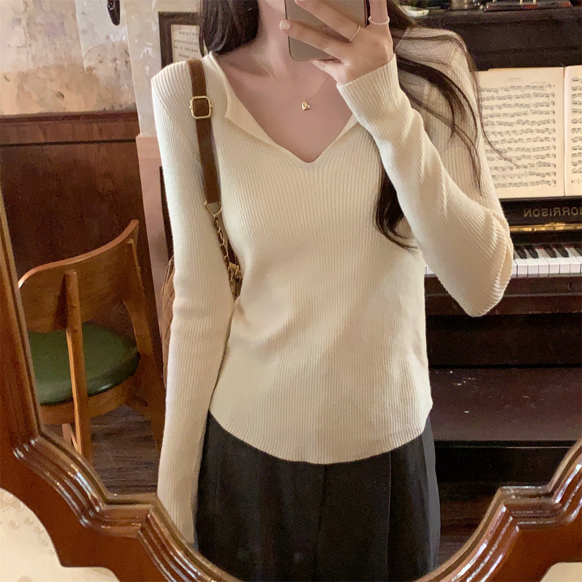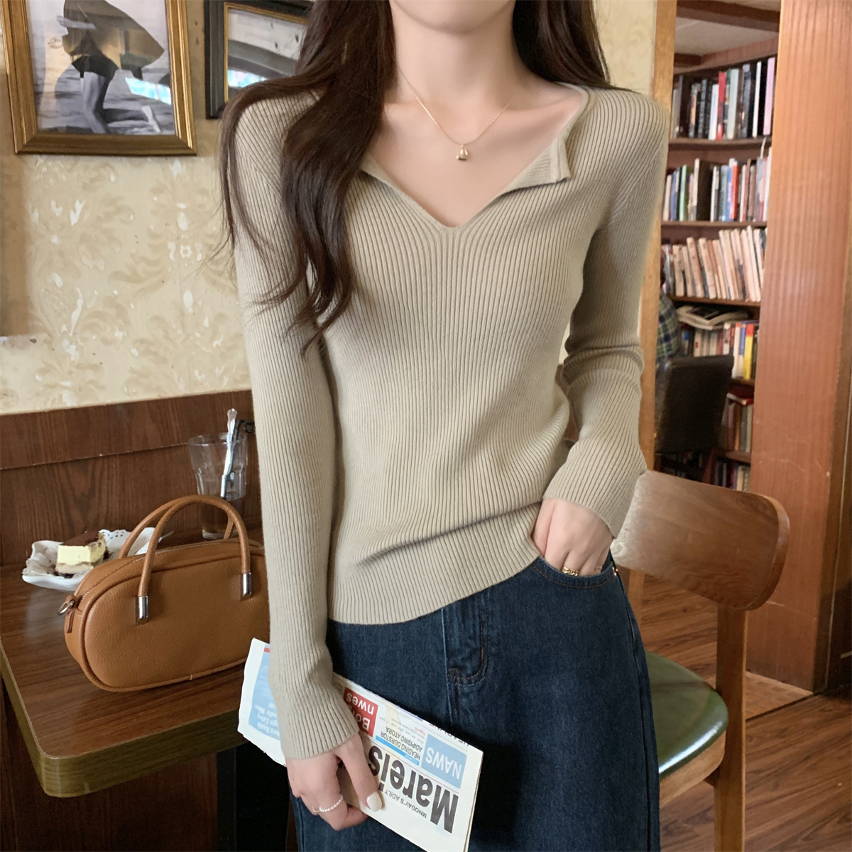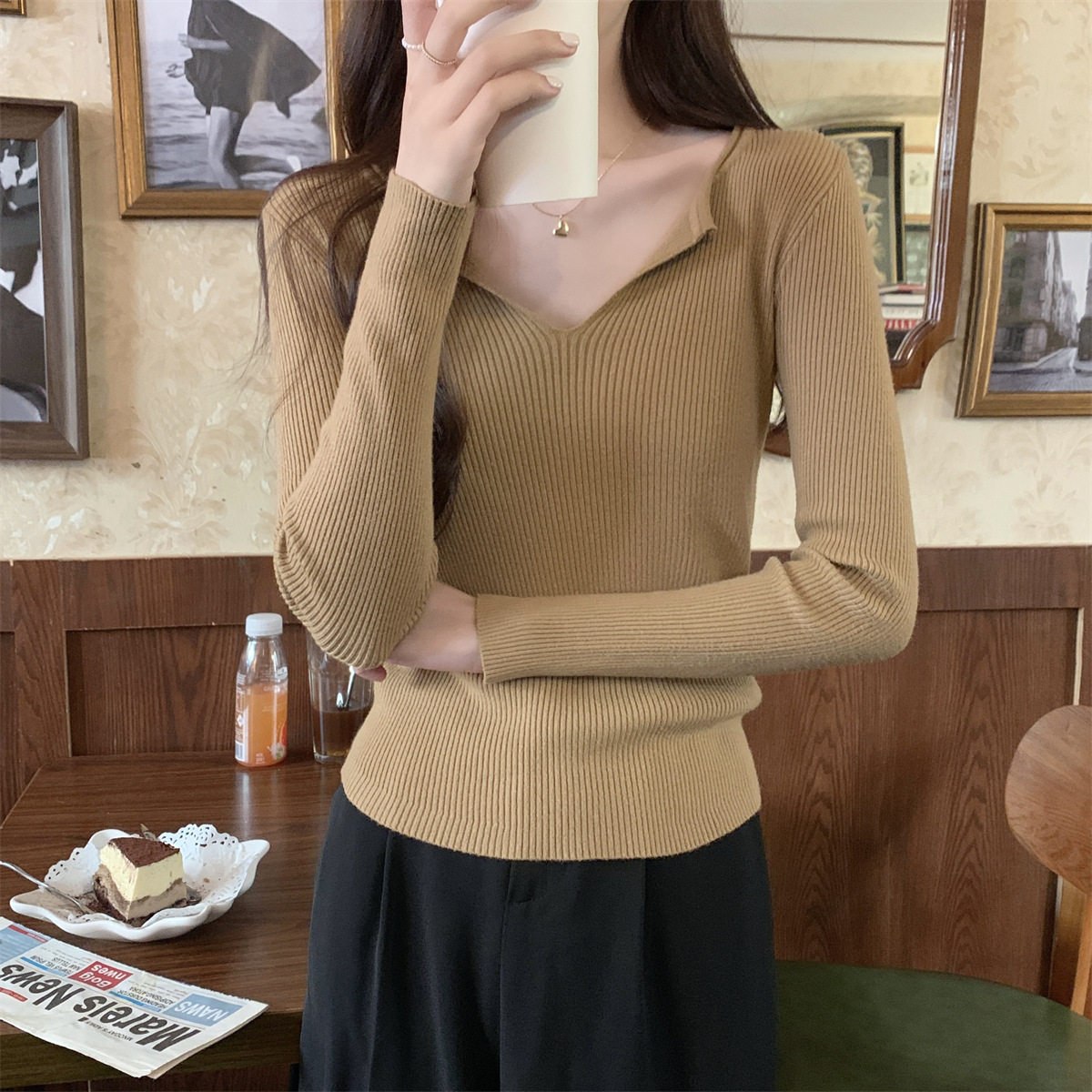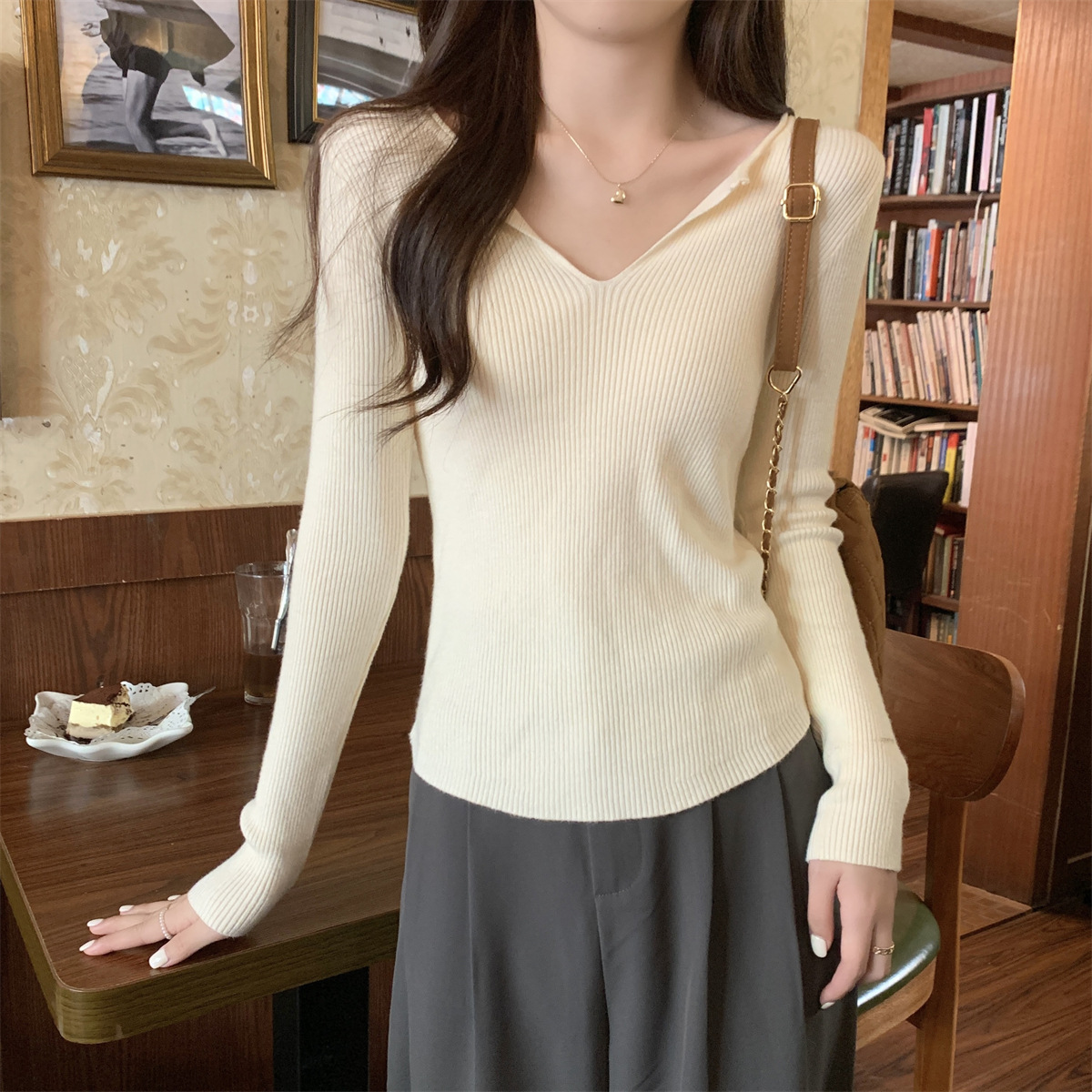 JMA-107 实拍 2023秋冬韩版修身纯色半开领气质设计感内搭针织衫毛衣上衣
