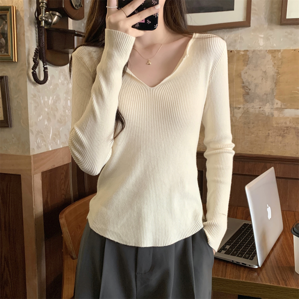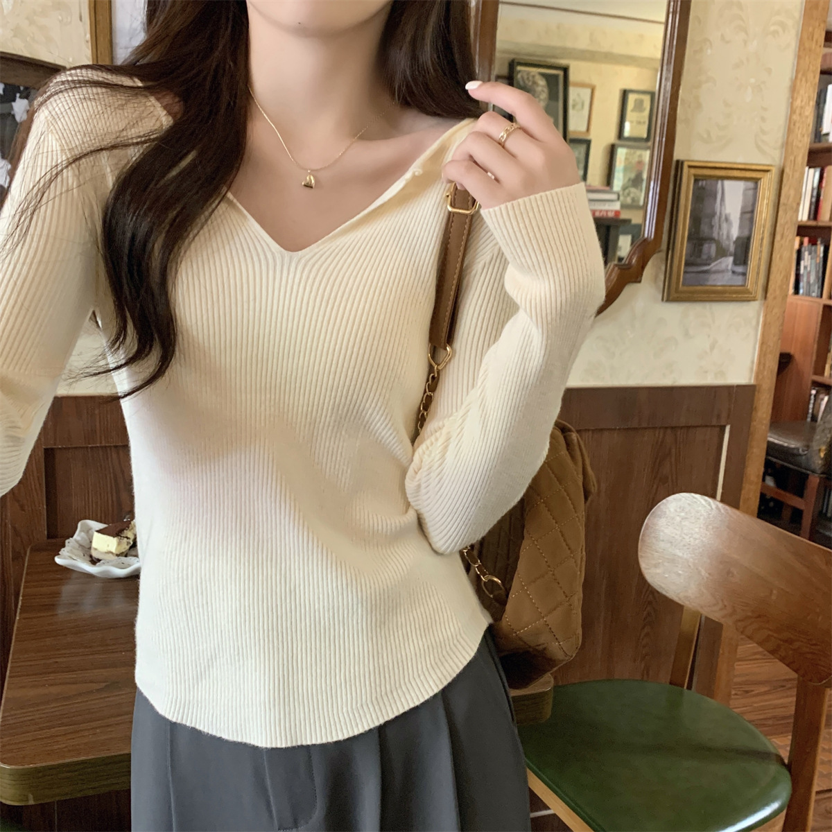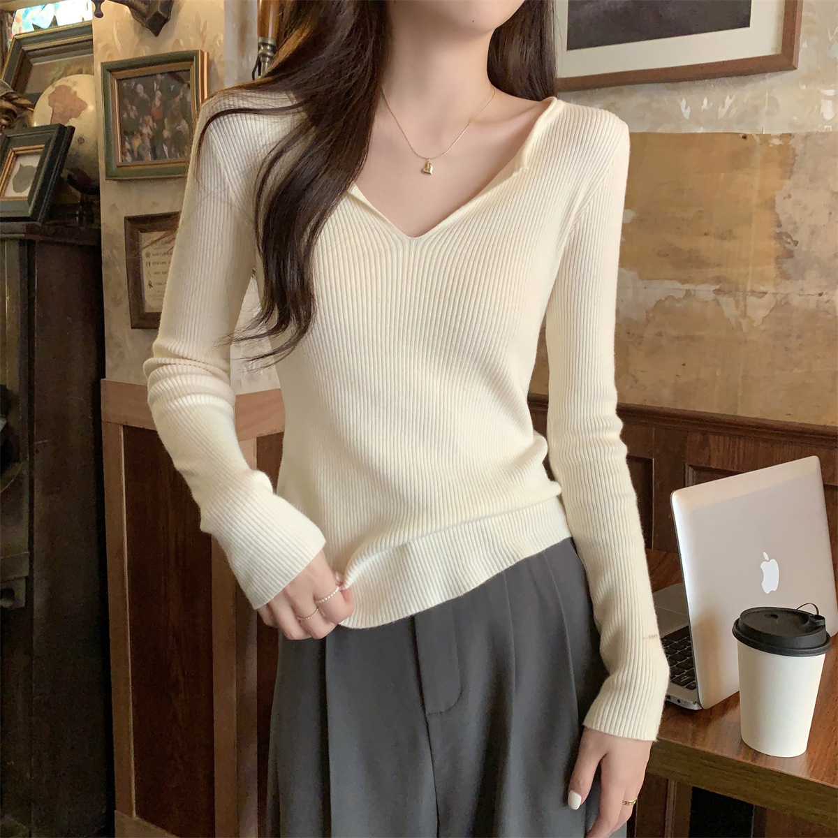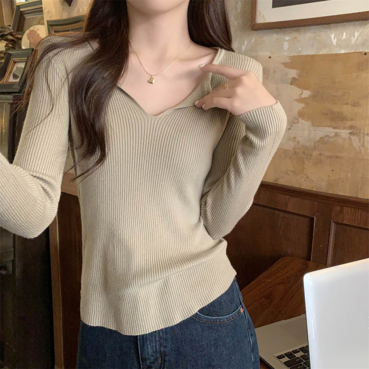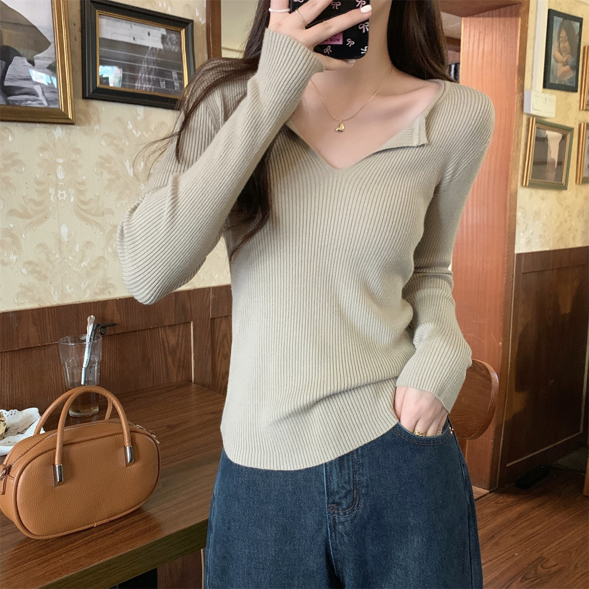 JMA-107 实拍 2023秋冬韩版修身纯色半开领气质设计感内搭针织衫毛衣上衣