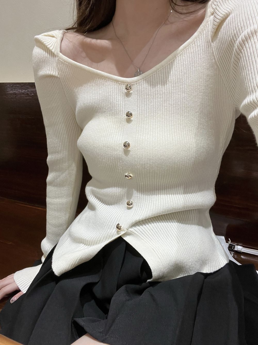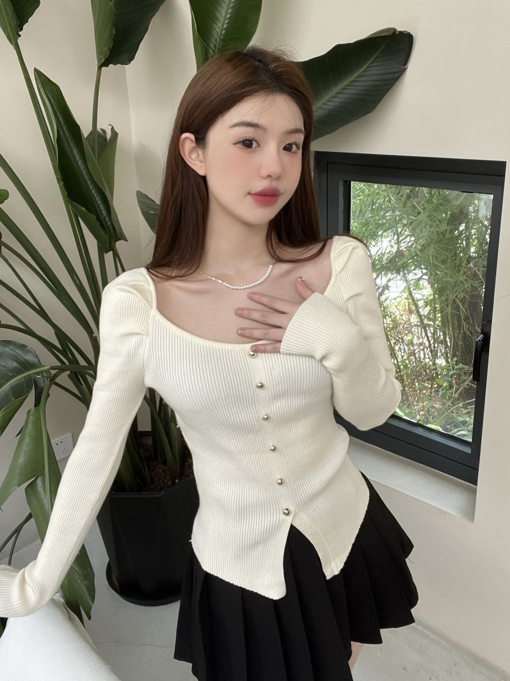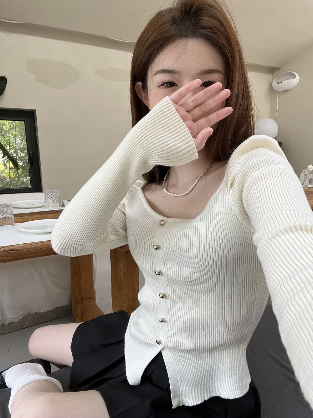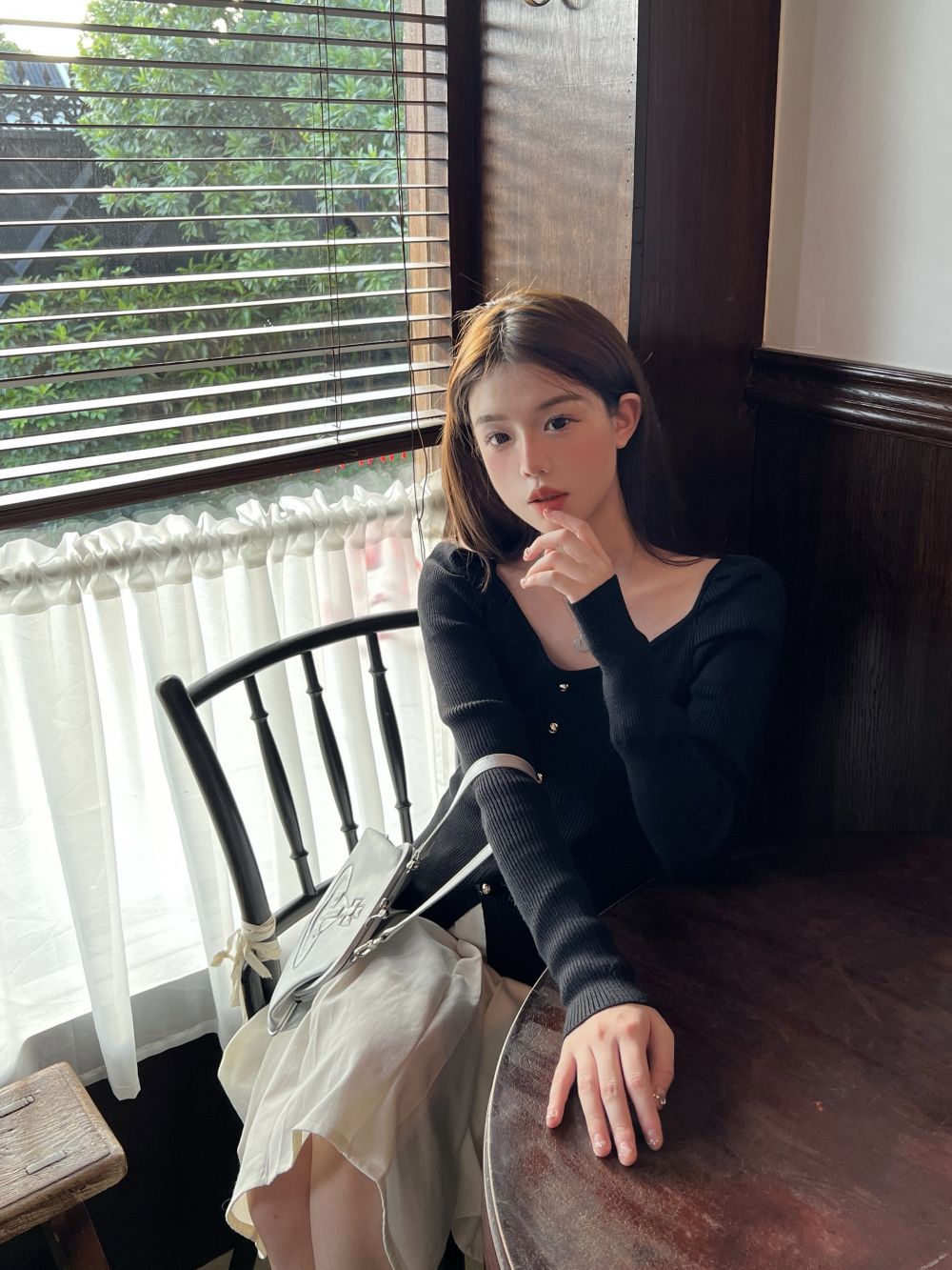 JMA-110 实拍 2023秋季韩版简约修身方领软糯针织衫上衣法式气质打底毛衣