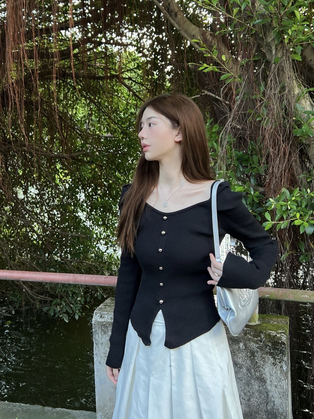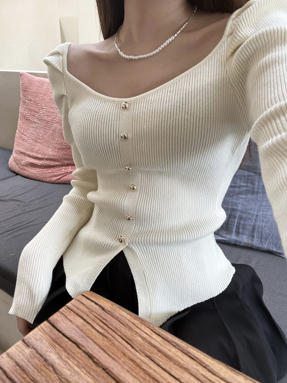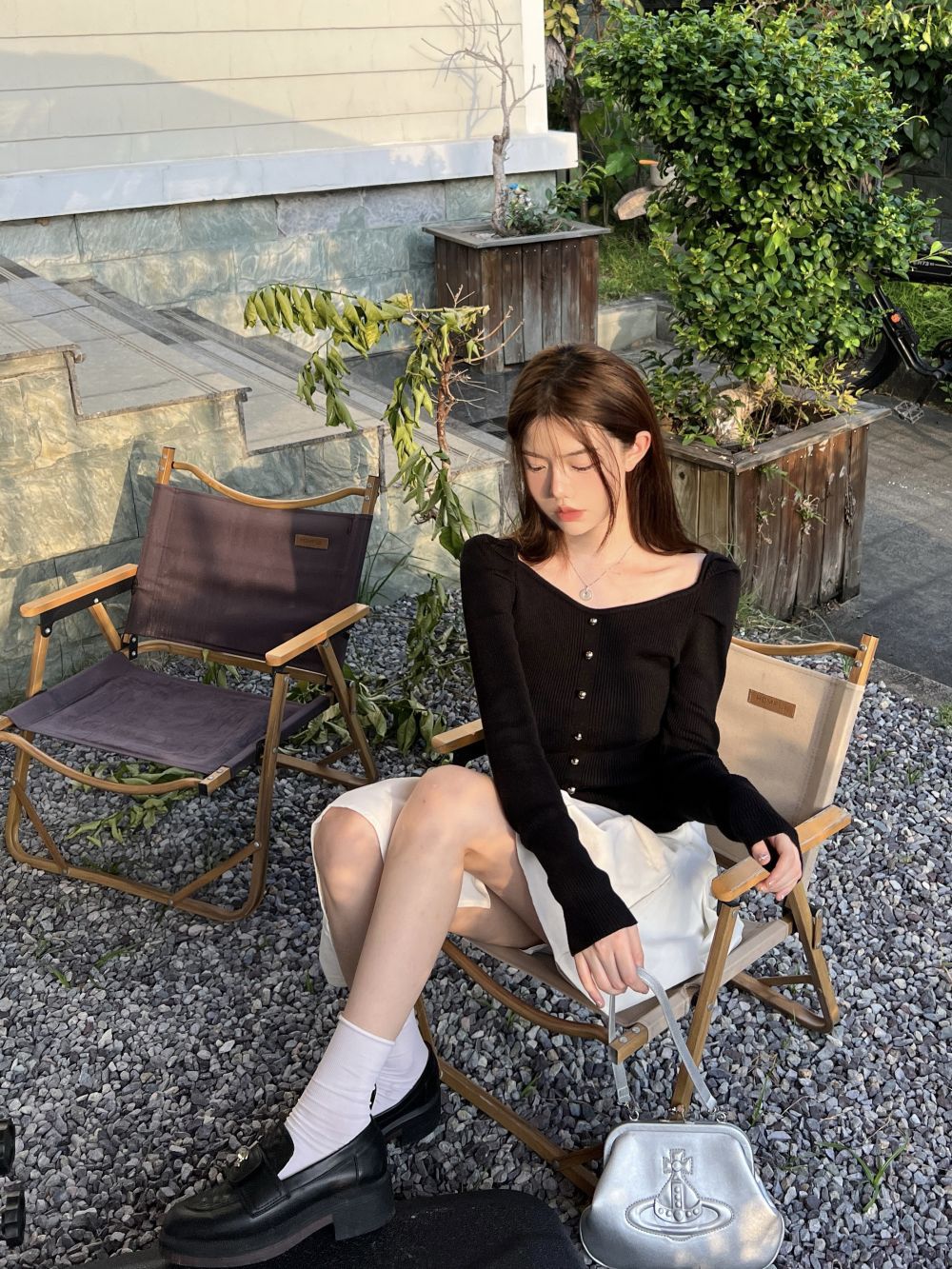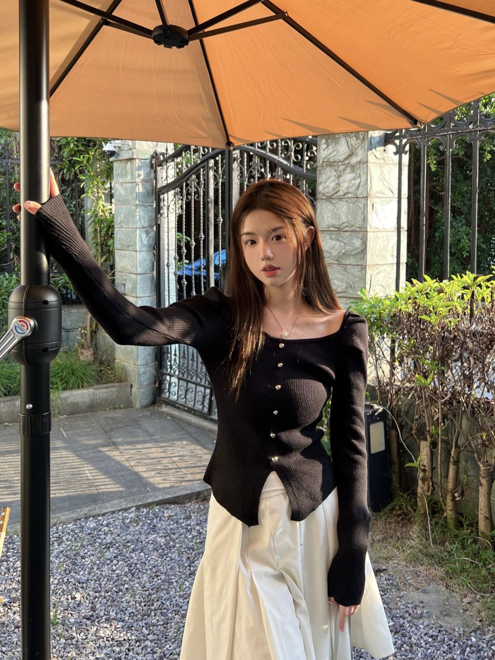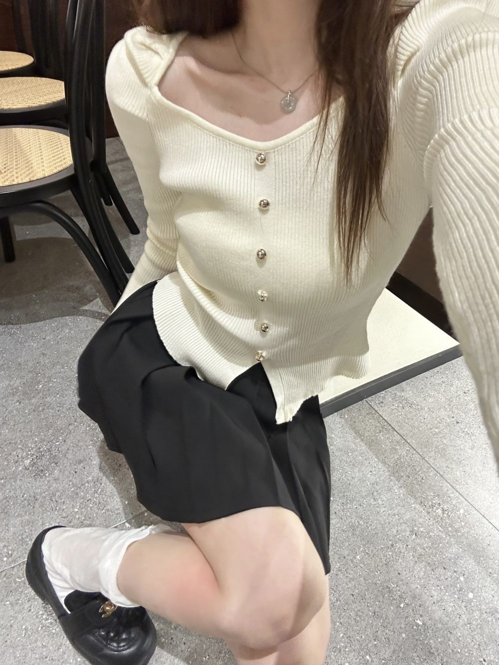 JMA-110 实拍 2023秋季韩版简约修身方领软糯针织衫上衣法式气质打底毛衣