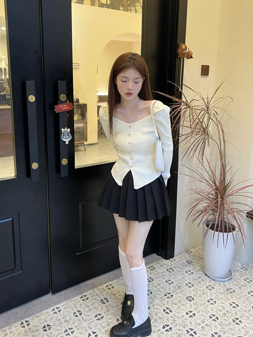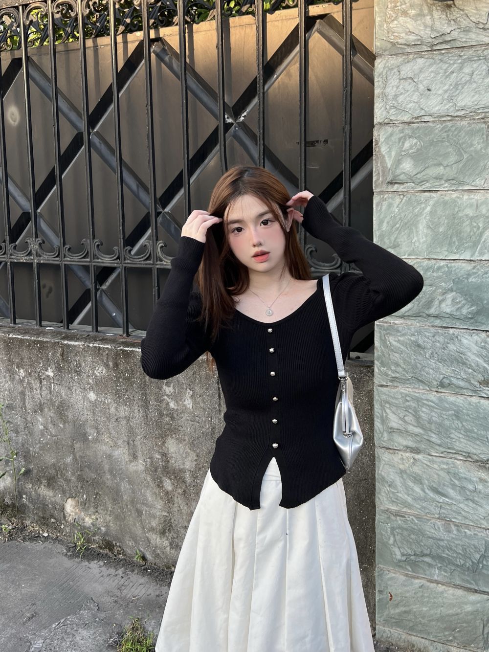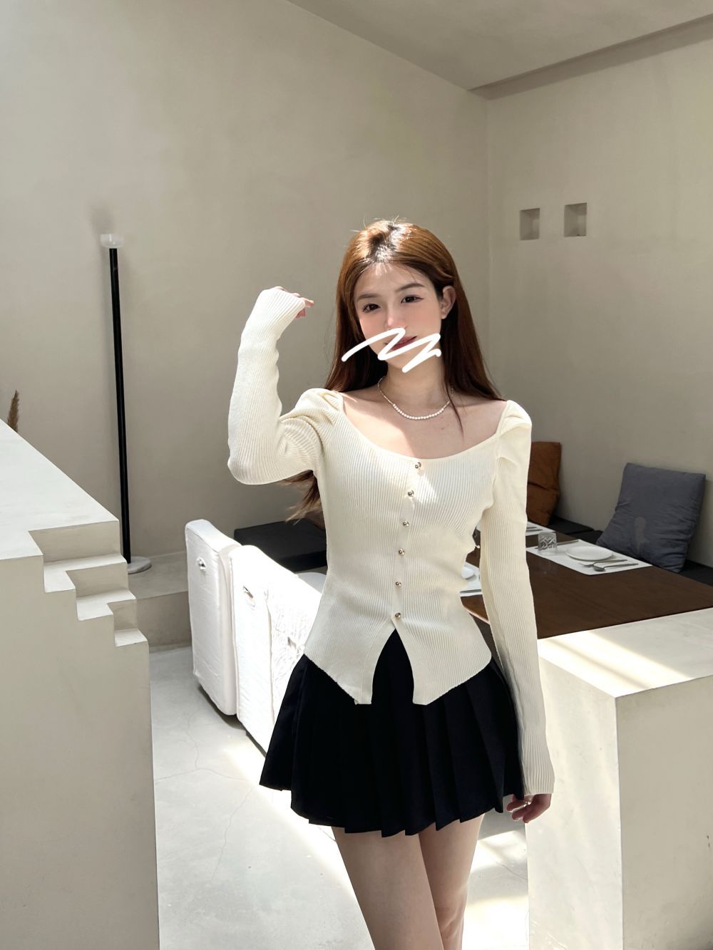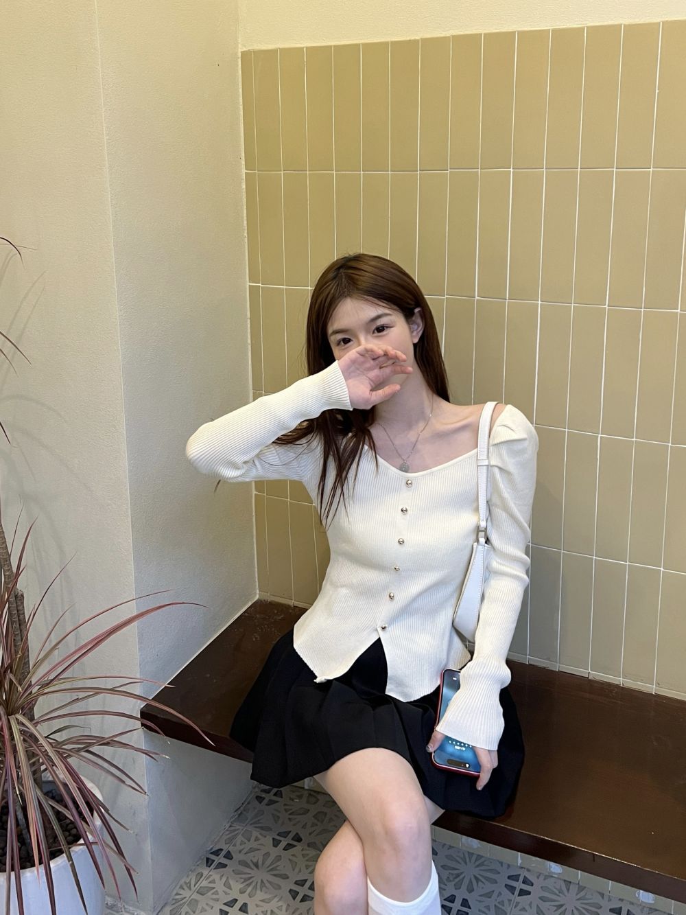 JMA-110 实拍 2023秋季韩版简约修身方领软糯针织衫上衣法式气质打底毛衣