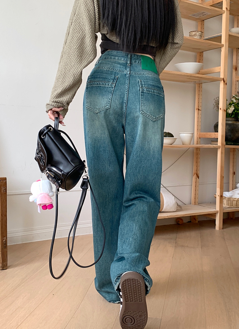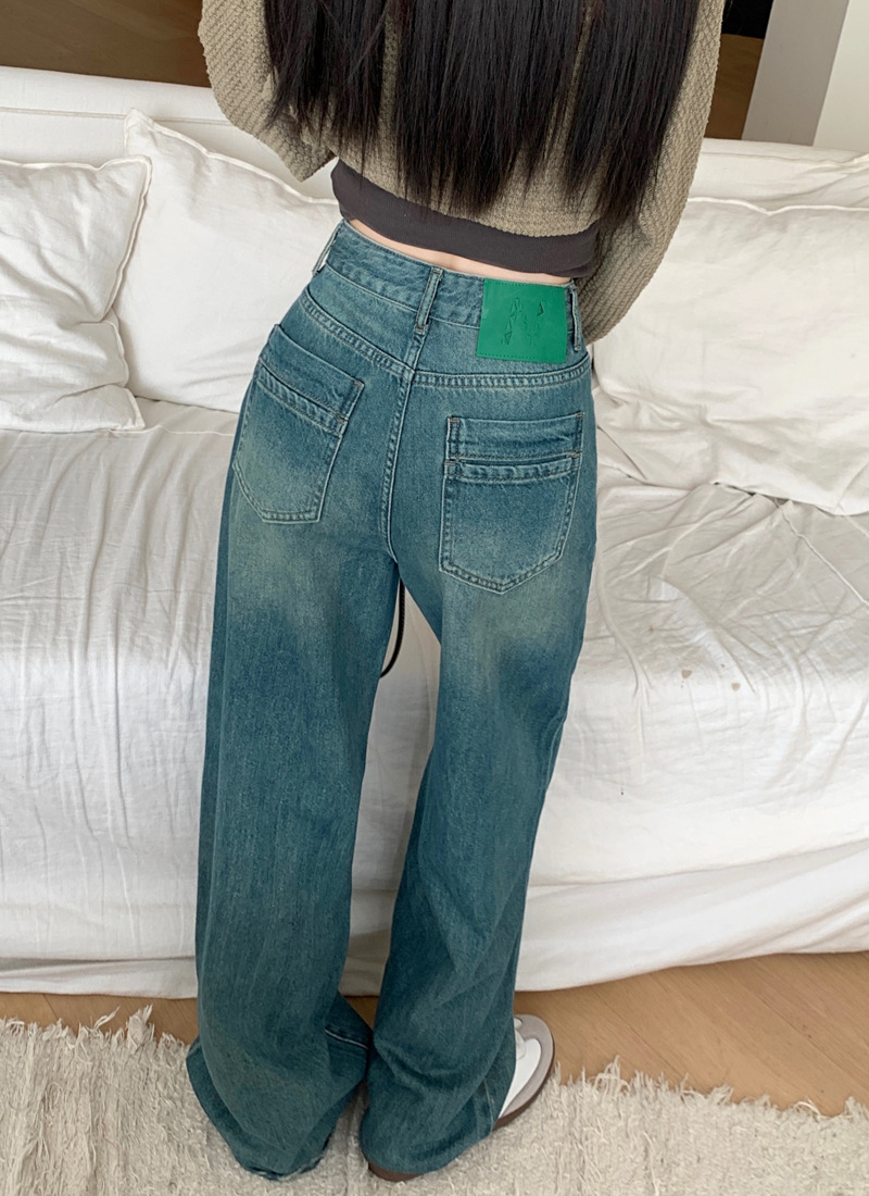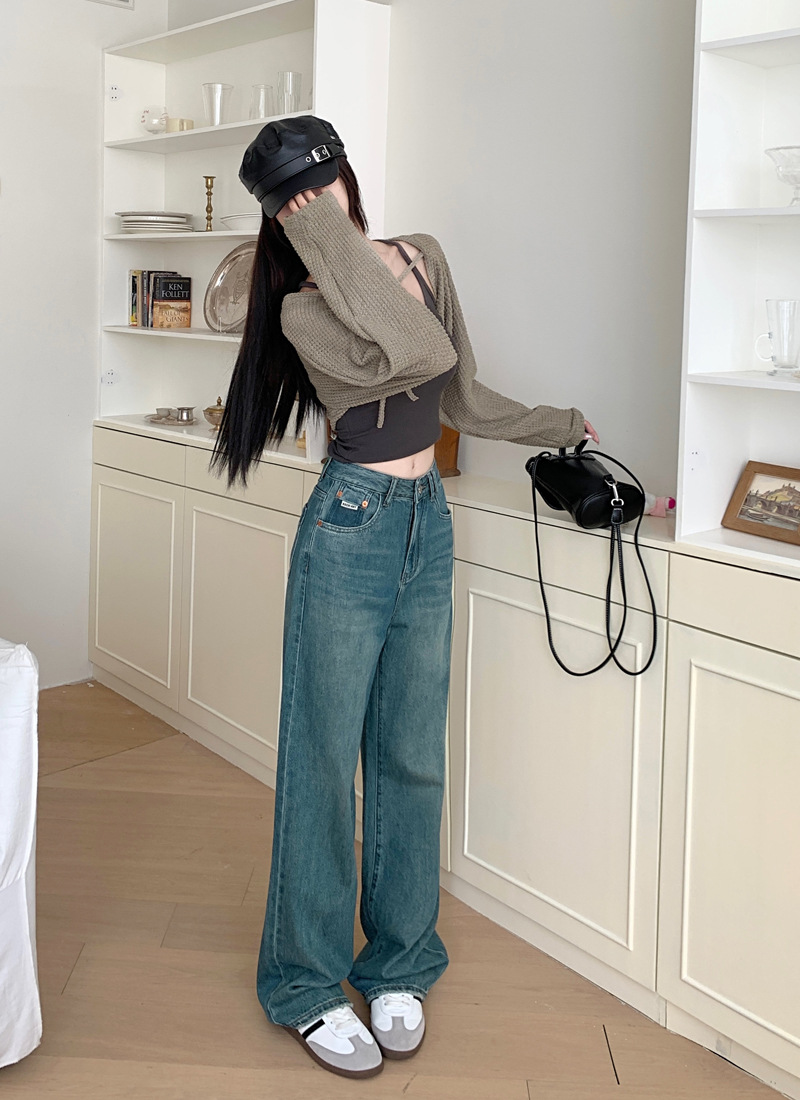 JMA-111 实拍加绒加厚高腰直筒牛仔裤2023秋季宽松垂感拖地直筒休闲阔腿裤