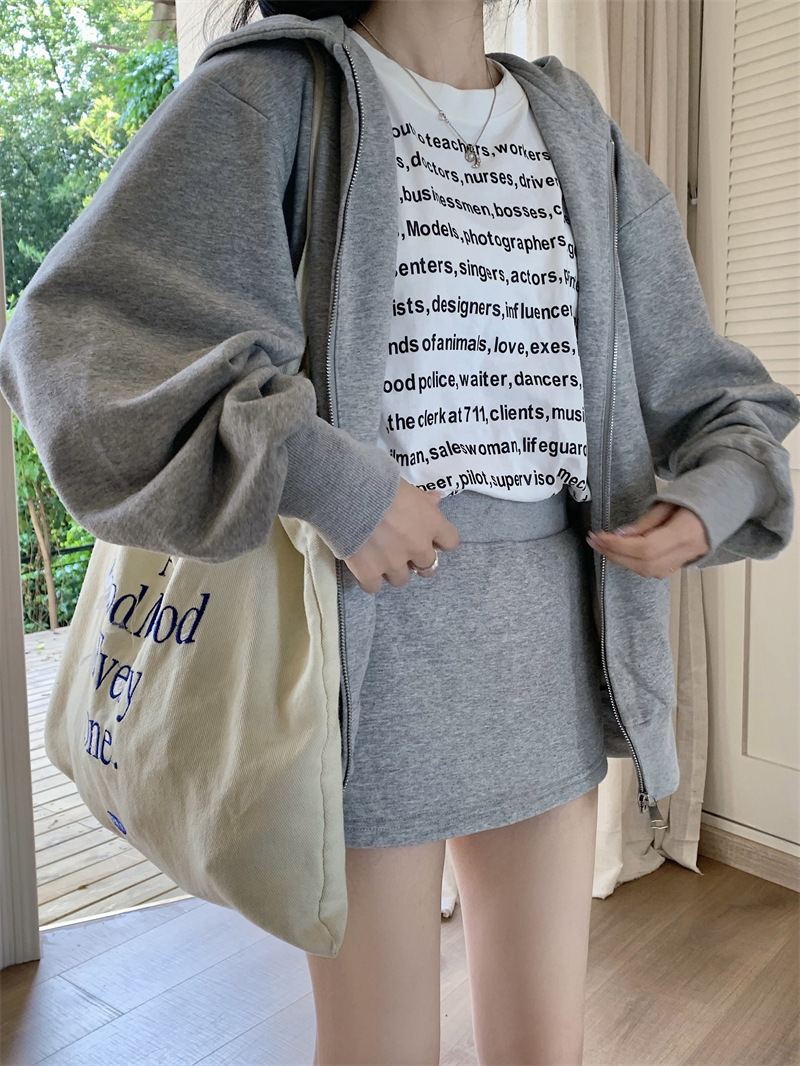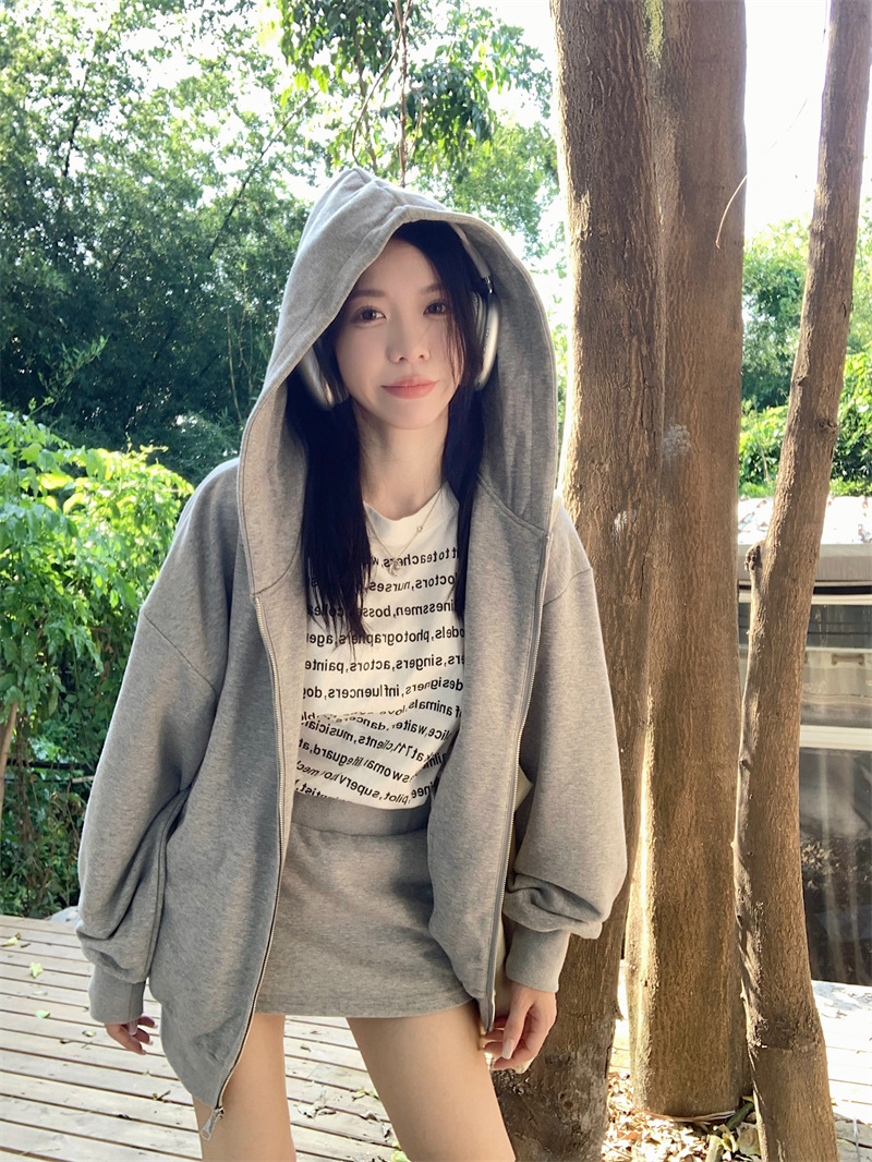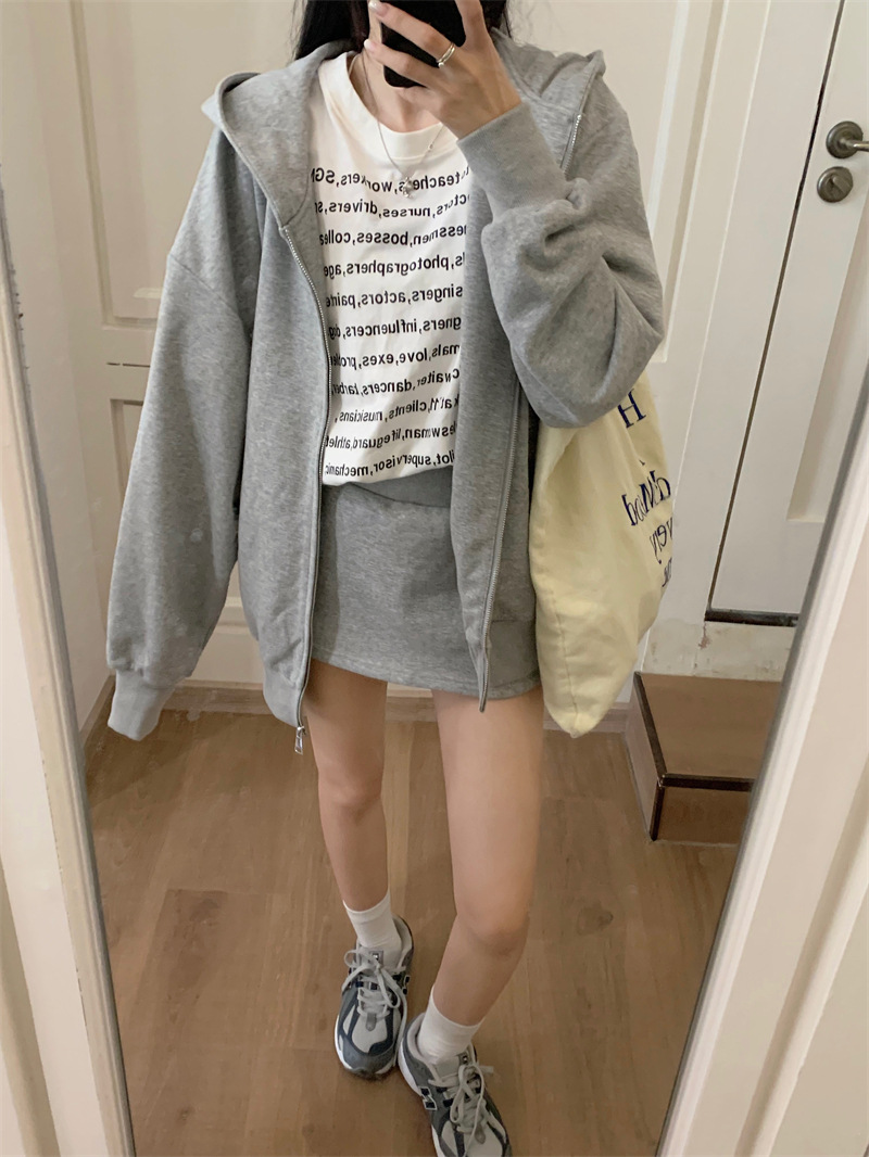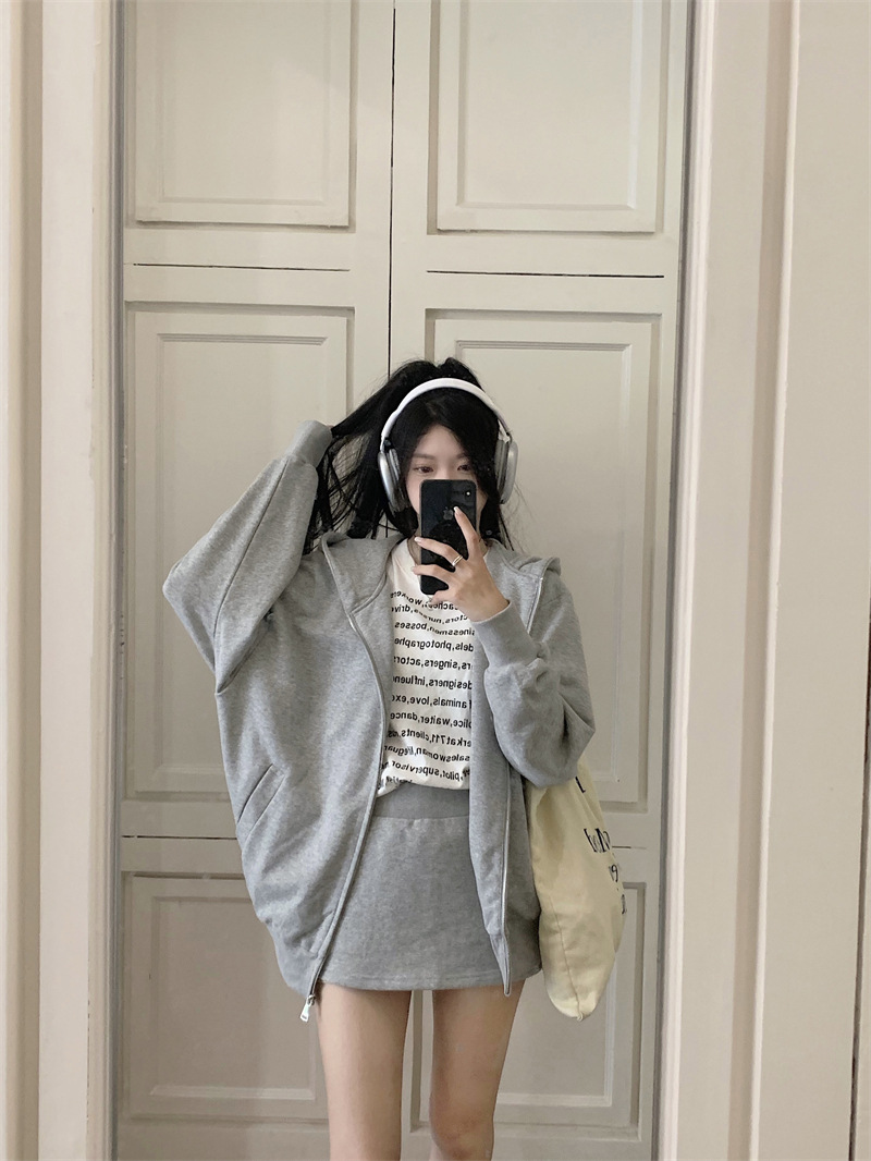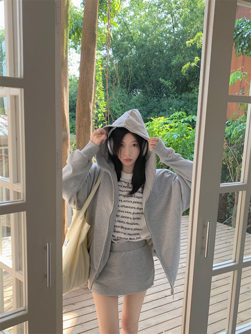 JMA-133 实拍 2023秋冬新款韩版百搭小香风宽松美式连帽休卫衣+短裙两件套