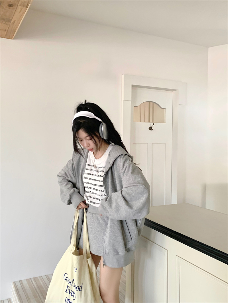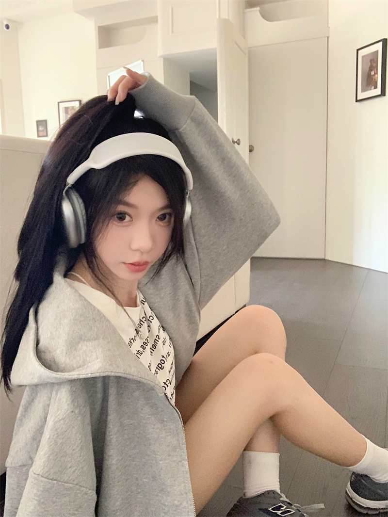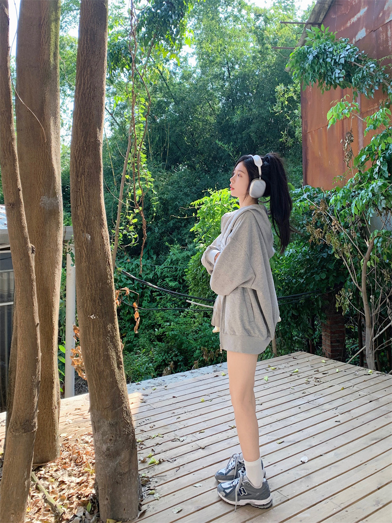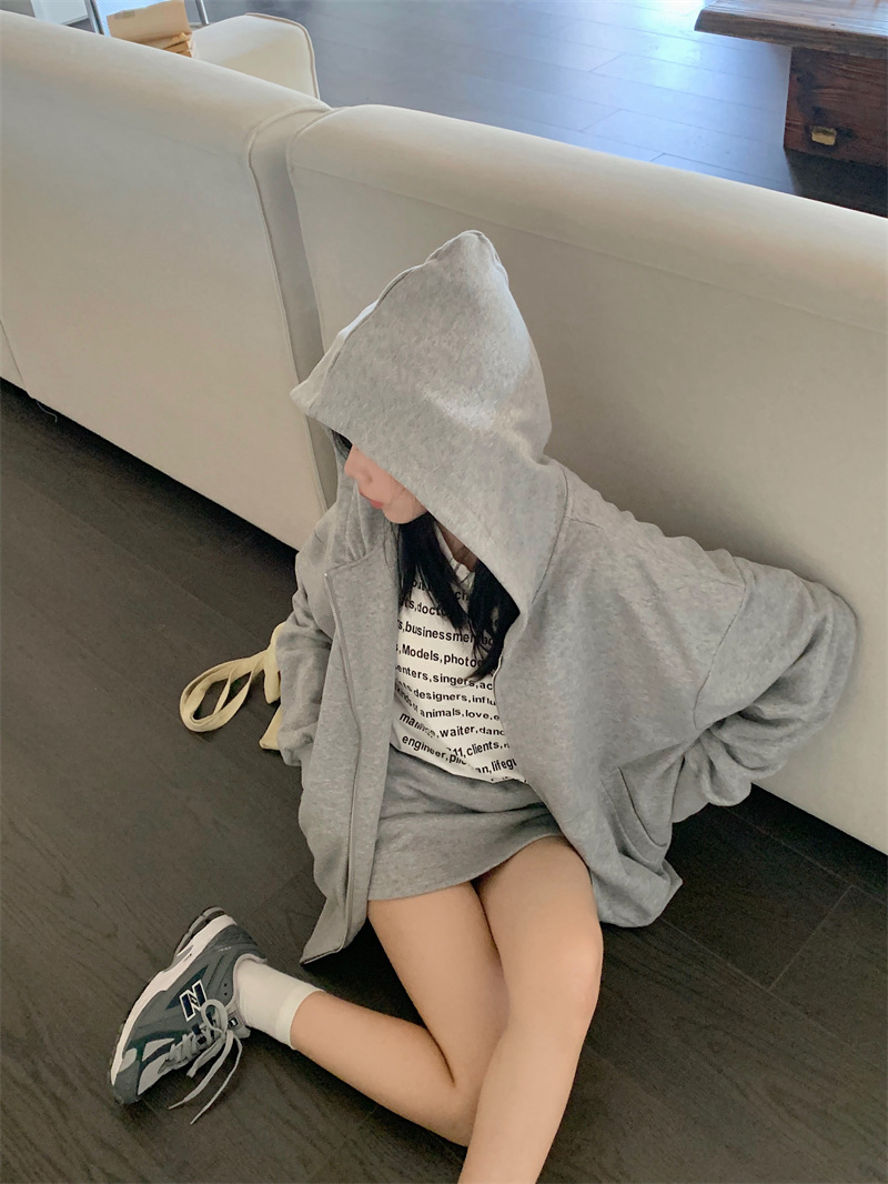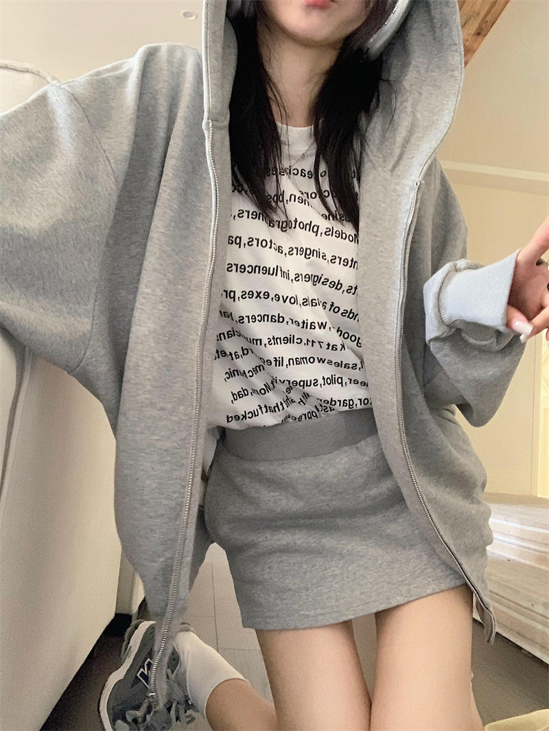 JMA-133 实拍 2023秋冬新款韩版百搭小香风宽松美式连帽休卫衣+短裙两件套