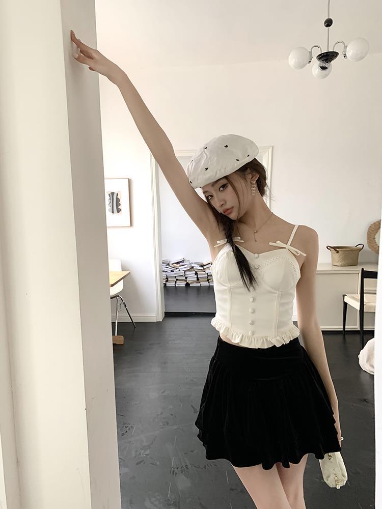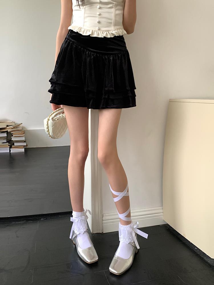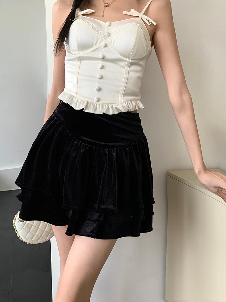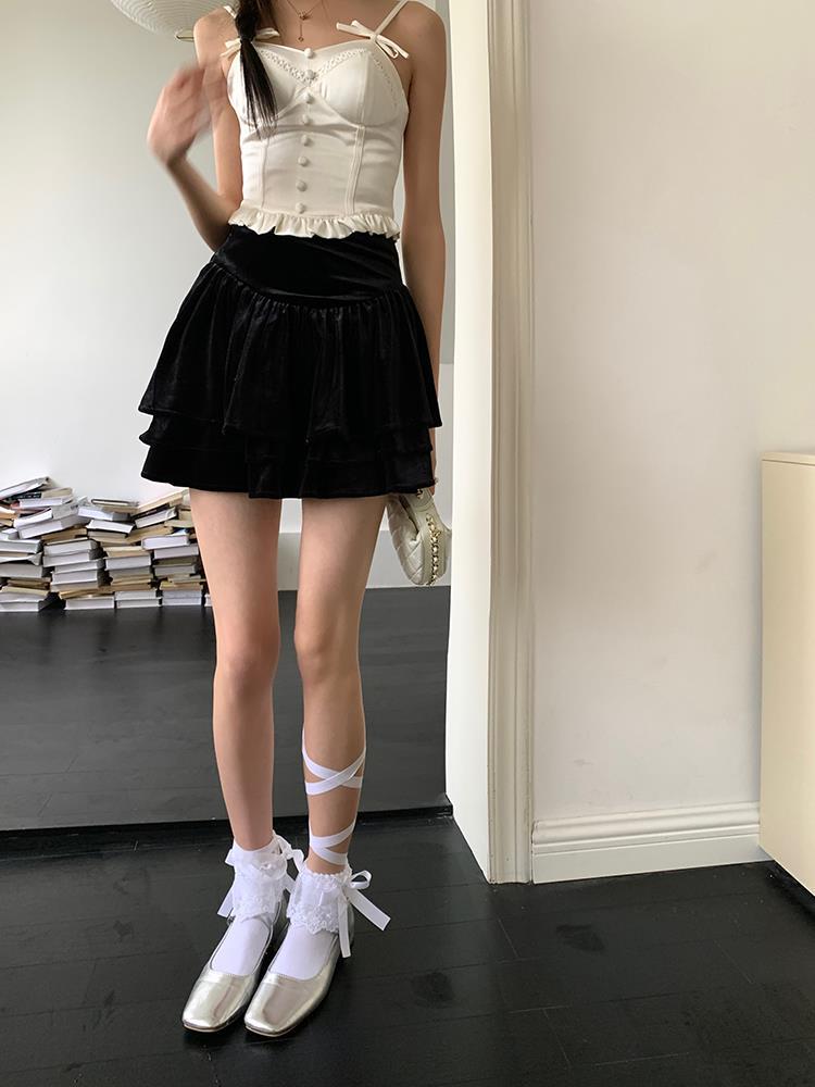 JMA-135 实拍 2023夏装美式芭蕾甜辣风jk制服裙女半身裙黑色丝绒蛋糕裙子