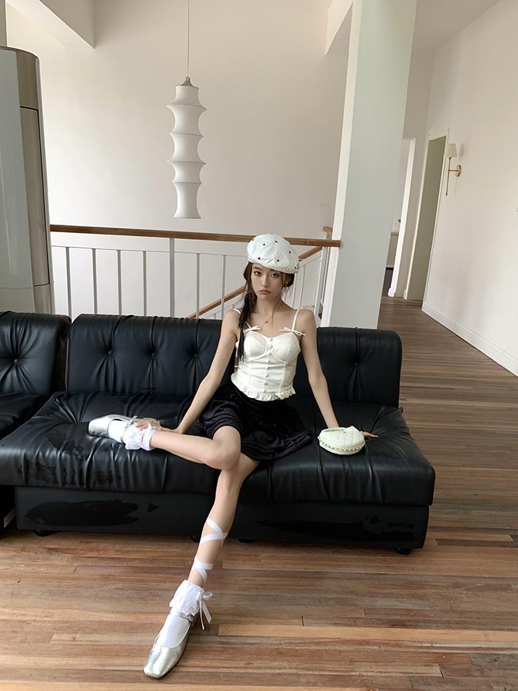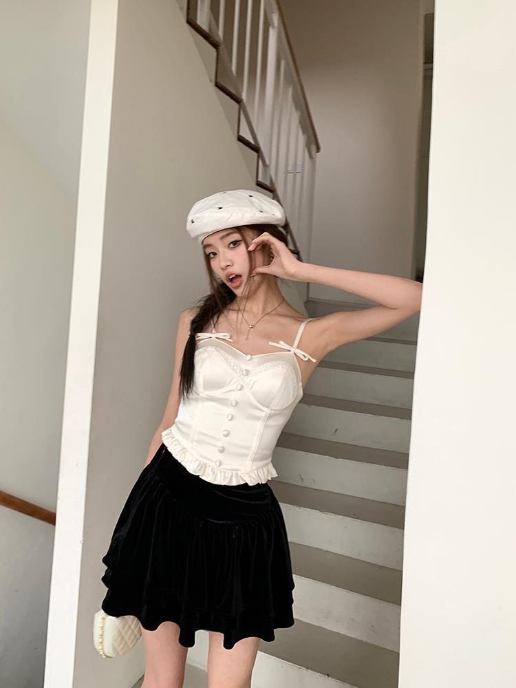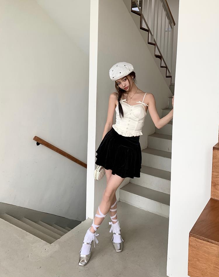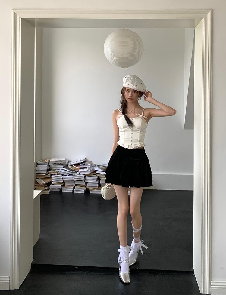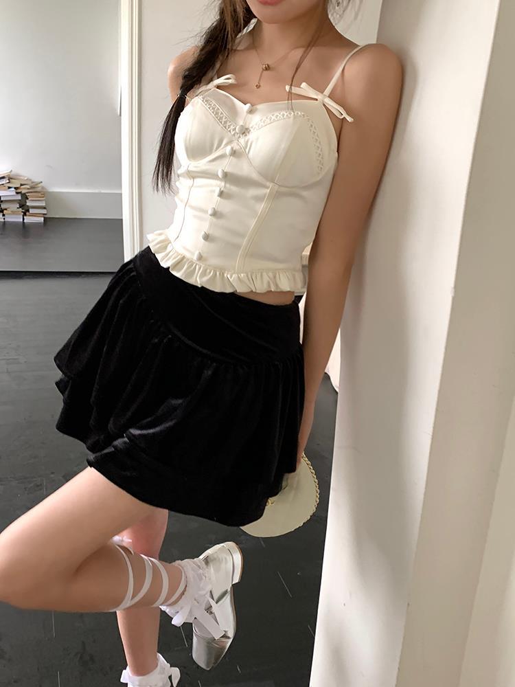 JMA-135 实拍 2023夏装美式芭蕾甜辣风jk制服裙女半身裙黑色丝绒蛋糕裙子