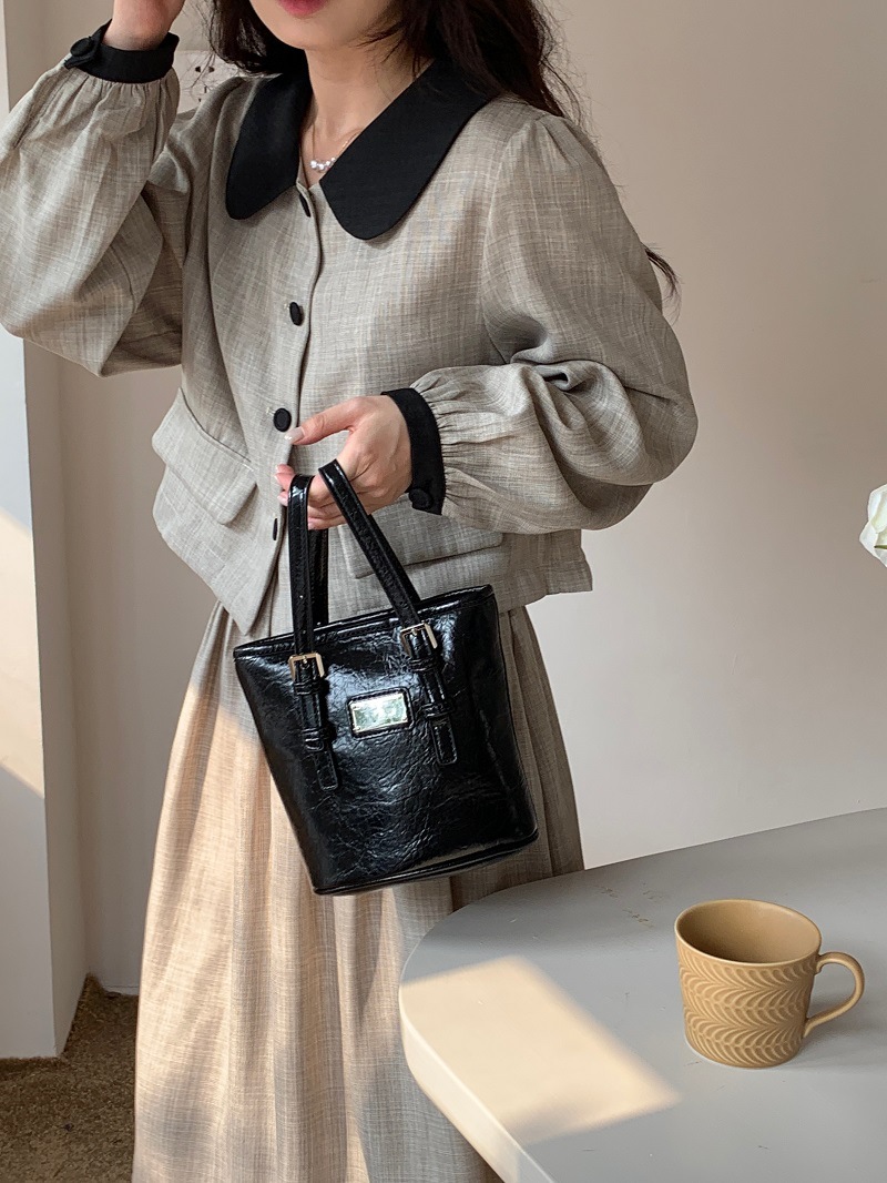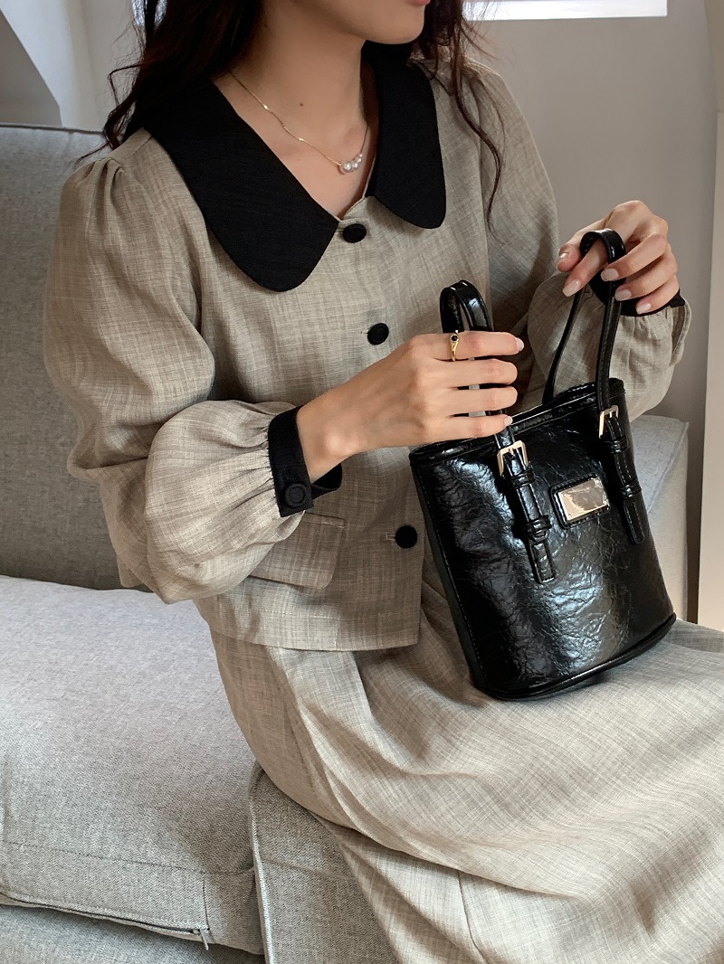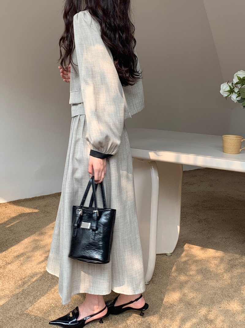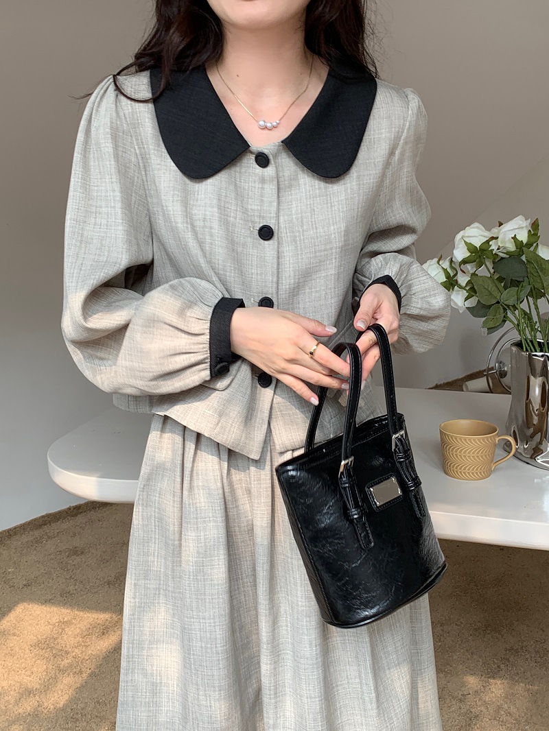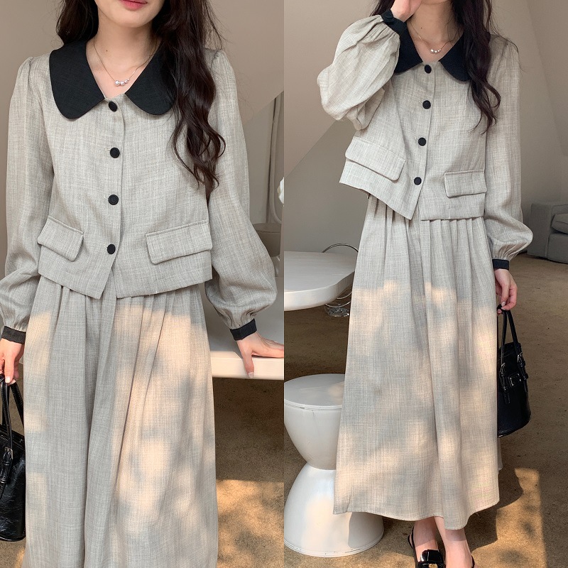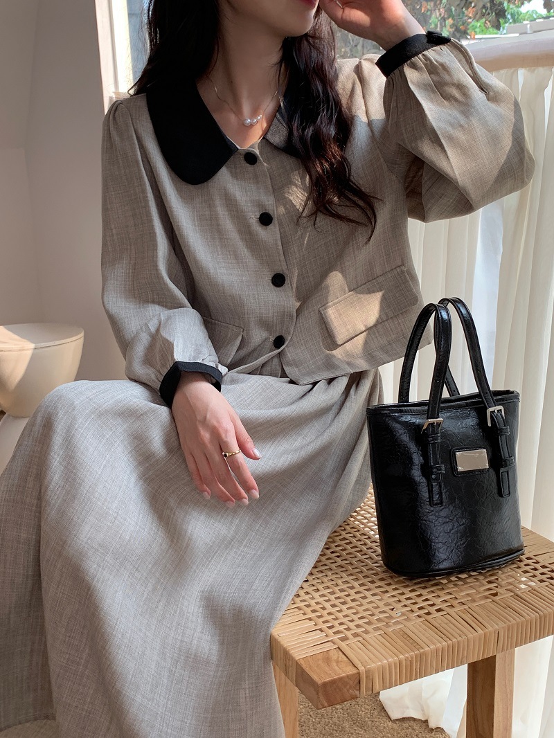 JMA-139 实拍 秋季韩版气质赫本风拼接撞色翻领短外套+高腰百褶半身裙套装